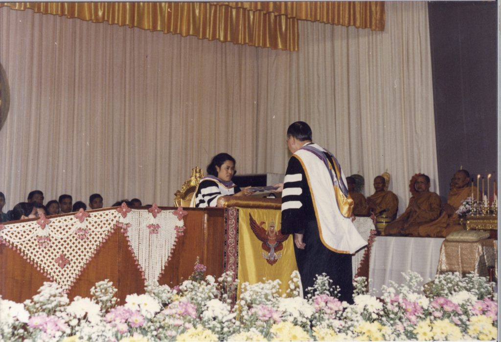 ภาพจาก: ข่าวมหาวิทยาลัยบูรพา ปีที่ ๑๔ ฉบับที่ ๖/๒๕๓๘ วันที่ ๑ มีนาคม ๒๕๓๘ ผู้บริหารมหาวิทยาลัยบูรพา เข้าเฝ้าฯ ทูลเกล้าฯ ถวายฉลองพระองค์ครุยปริญญาวิทยาศาสตรดุษฎีบัณฑิตกิตติมศักดิ์ สาขาวิทยาศาสตร์การกีฬาและการออกกำลังกาย ประจำปีการศึกษา ๒๕๓๖ แด่สมเด็จพระบรมโอรสาธิราช สยามมกุฏราชกุมาร เมื่อวันที่ ๑๗ มกราคม พ.ศ. ๒๕๓๘ ณ พระตำหนักนนทบุรี ภาพจาก: หนังสือครบรอบ ๔๐ ปี มหาวิทยาลัยบูรพา ภาพจาก: หนังสือครบรอบ ๕๐ ปี มหาวิทยาลัยบูรพา ข้อมูลจาก: ข่าวมหาวิทยาลัยบูรพา ปี่ที่ ๑๔ ฉบับที่ ๖/๒๕๓๘ วันที่ ๑ มีนาคม ๒๕๓๘