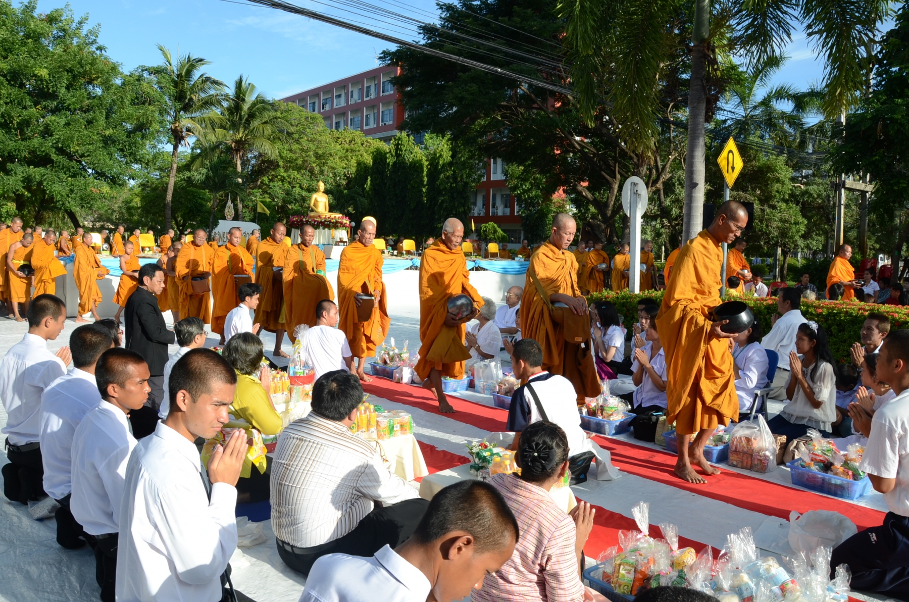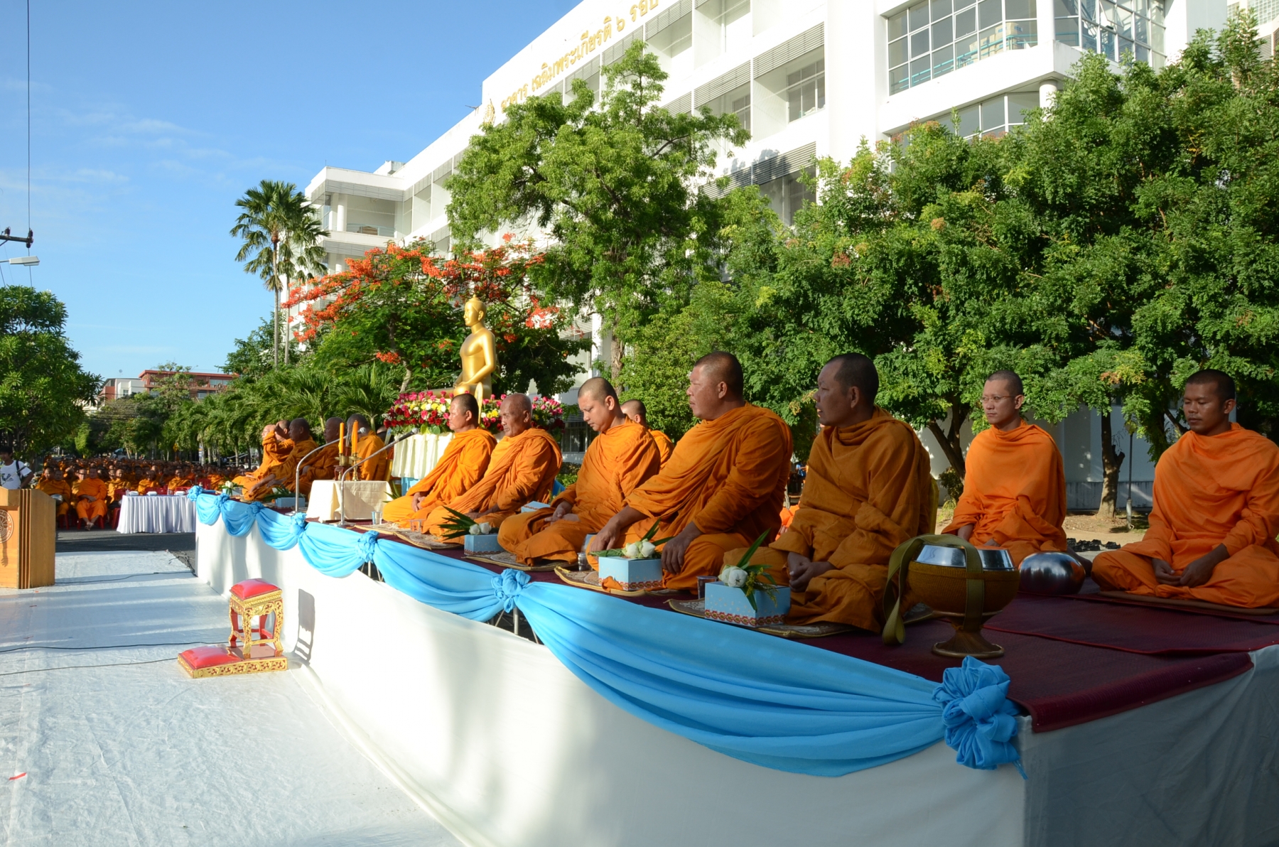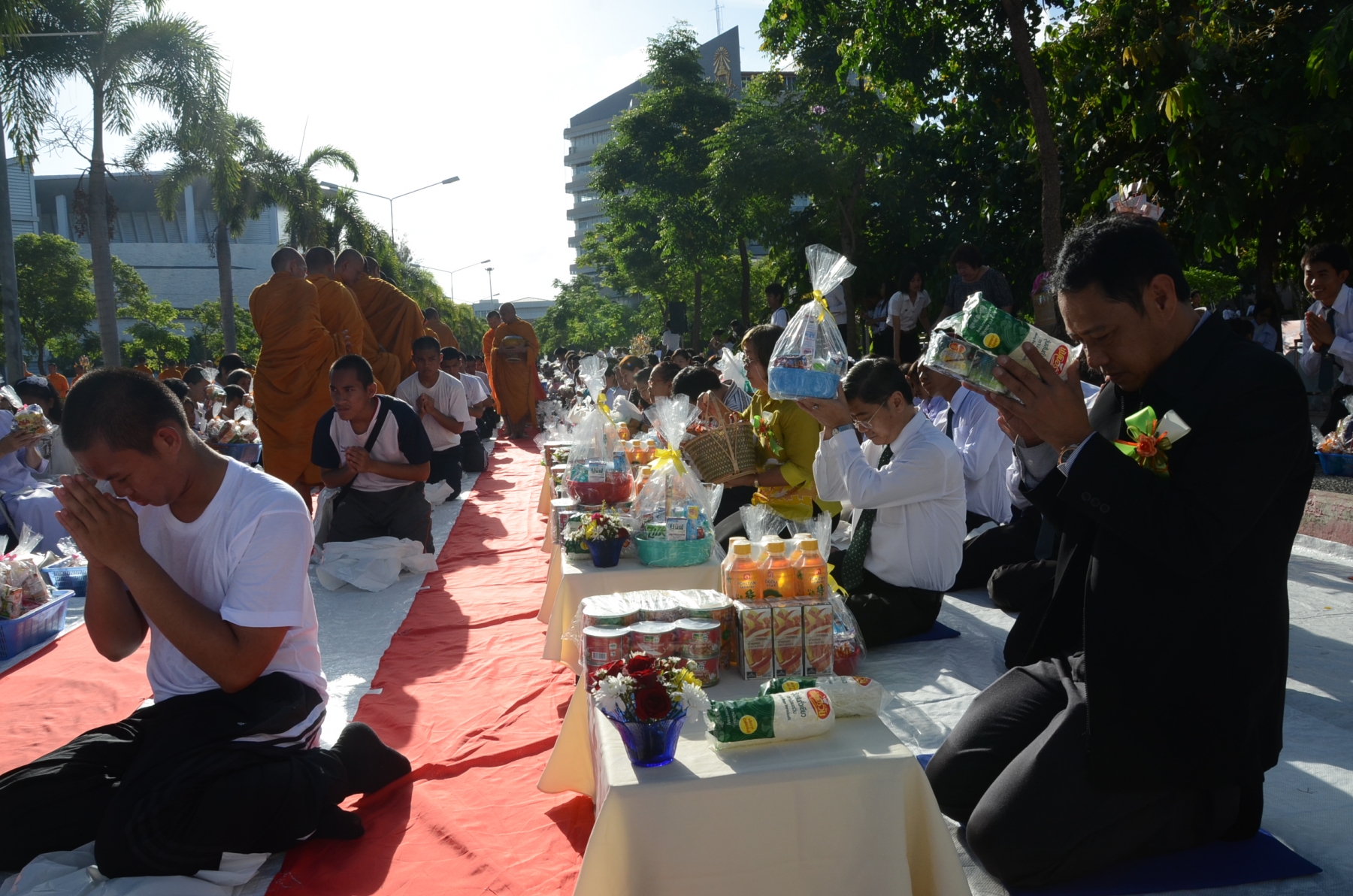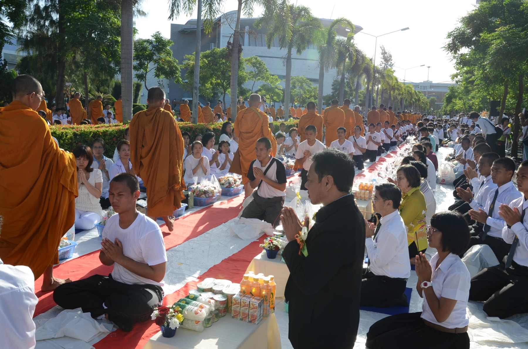 มหาวิทยาลัยบูรพา โดย กองกิจการนิสิต มหาวิทยาลัยบูรพา ร่วมกับ ชมรมพุทธศาสน์ มหาวิทยาลัยบูรพาในพระสังฆราชูปถัมภ์ จัดกิจกรรมกิจกรรมทำบุญตักบาตรพระ ๕๙๙ รูป