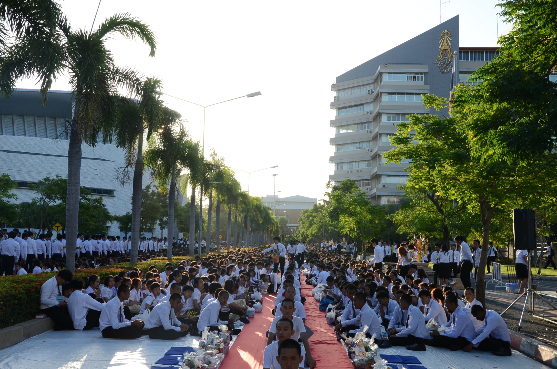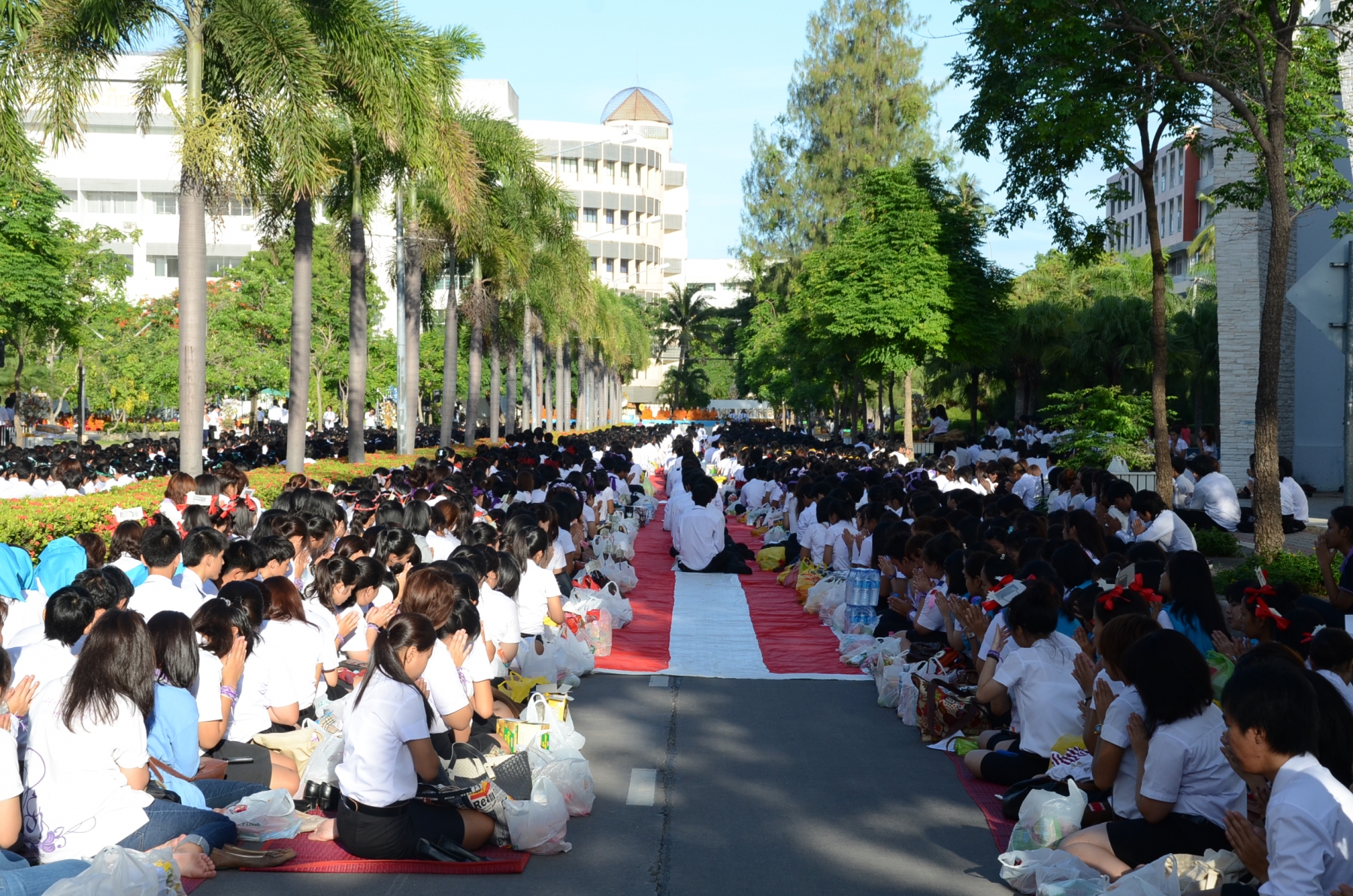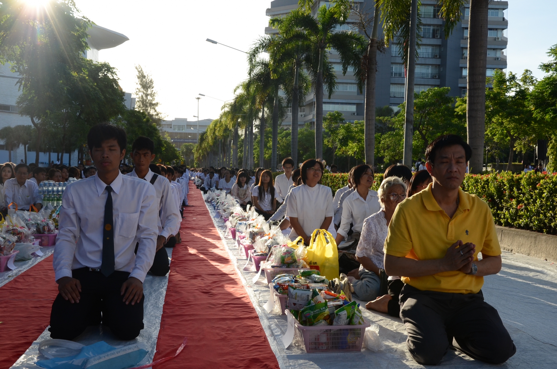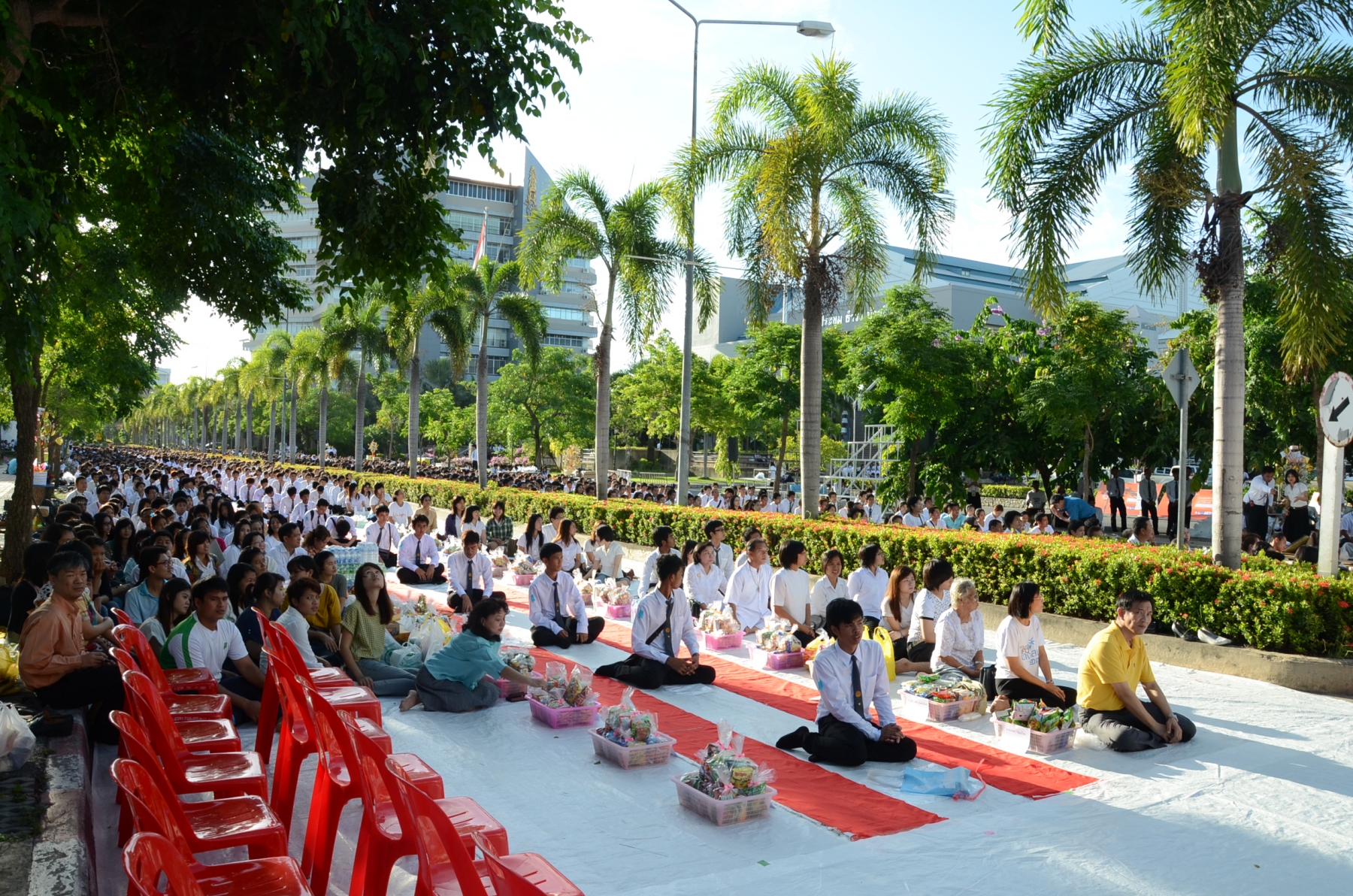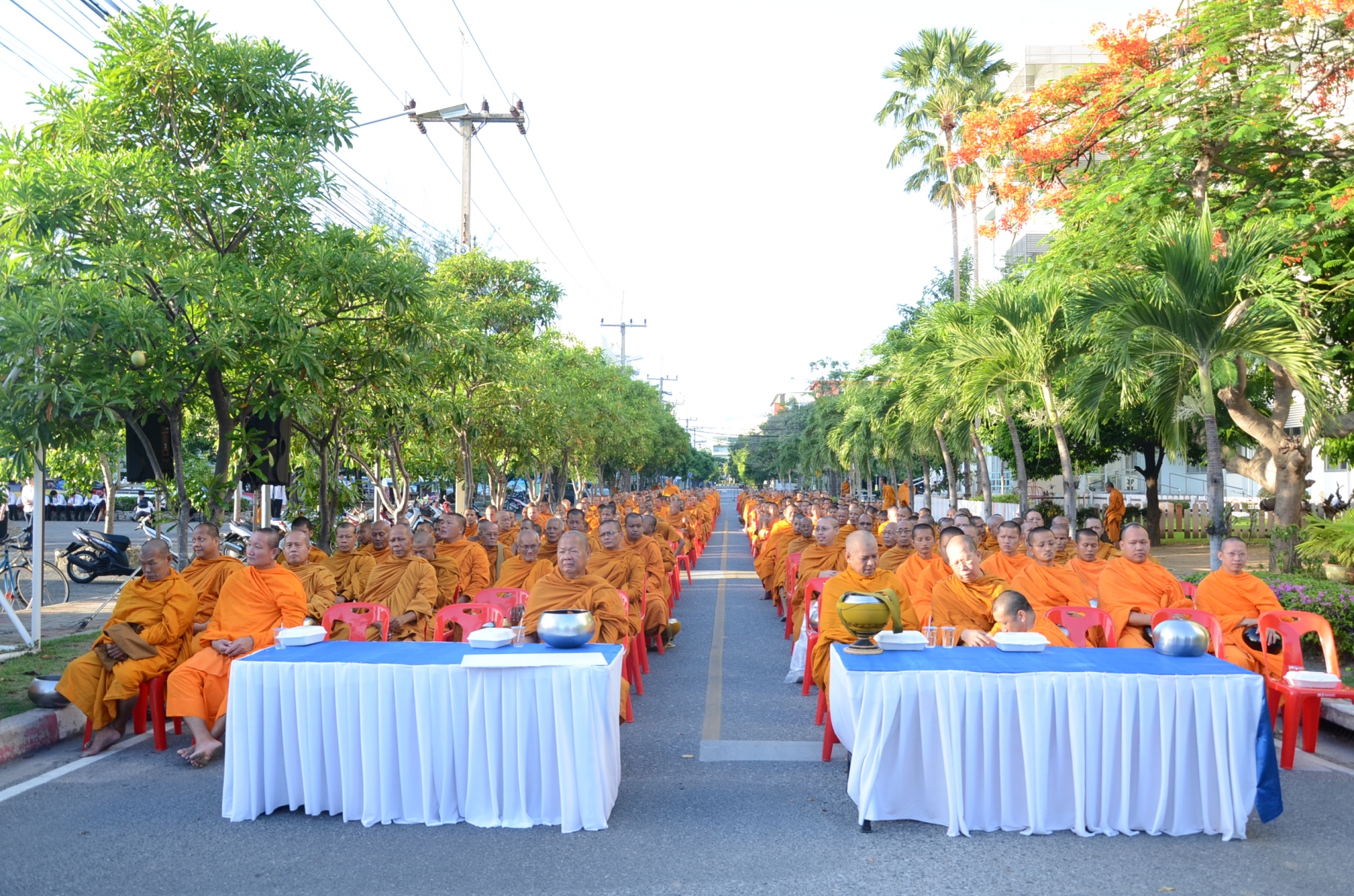 มหาวิทยาลัยบูรพา โดย กองกิจการนิสิต มหาวิทยาลัยบูรพา ร่วมกับ ชมรมพุทธศาสน์ มหาวิทยาลัยบูรพาในพระสังฆราชูปถัมภ์ จัดกิจกรรมกิจกรรมทำบุญตักบาตรพระ ๕๙๙ รูป