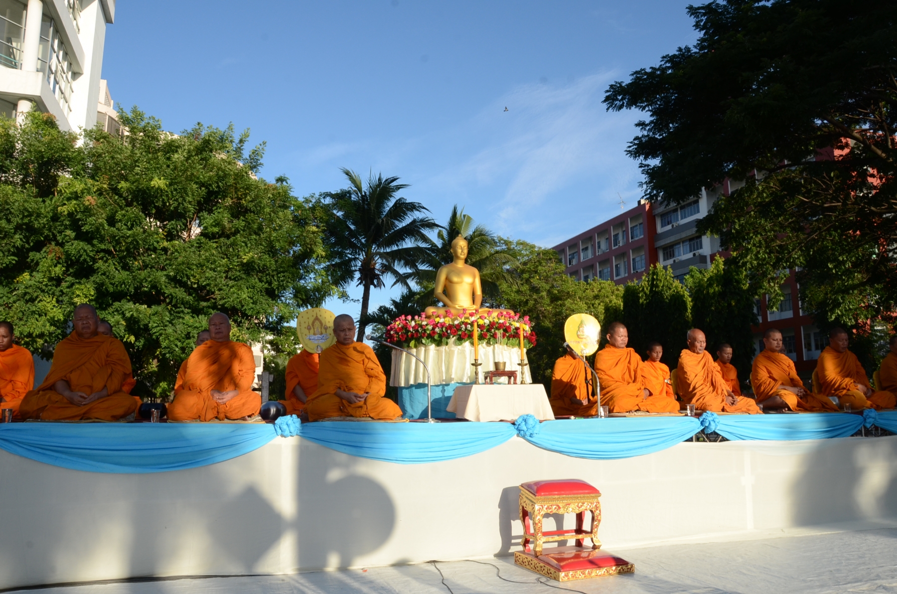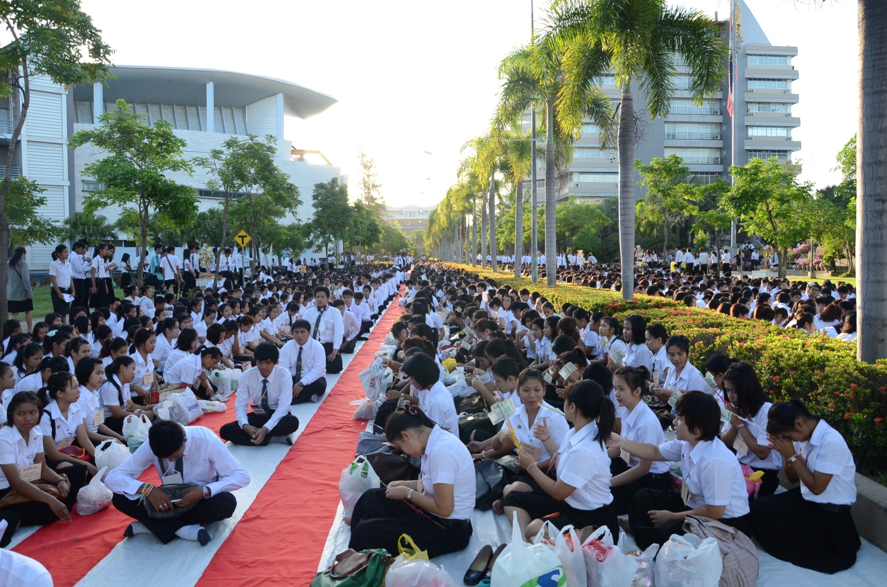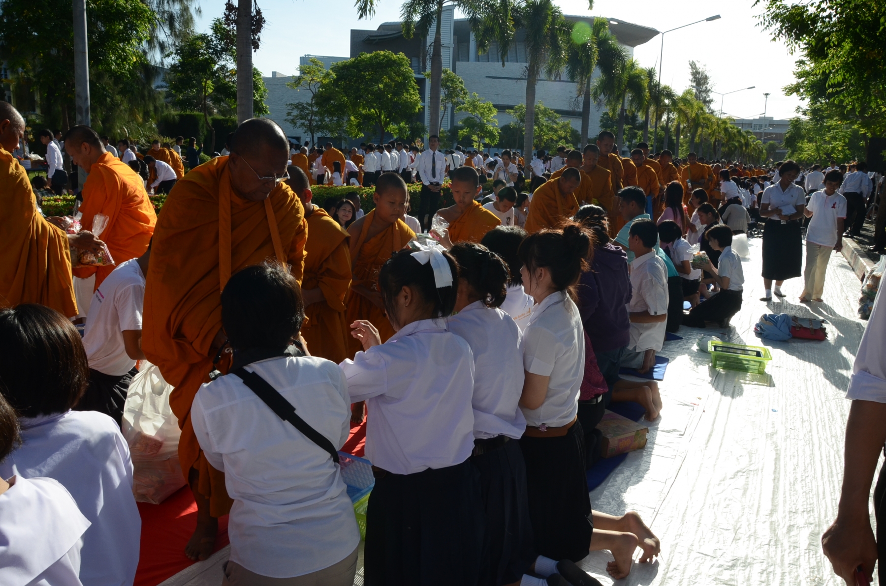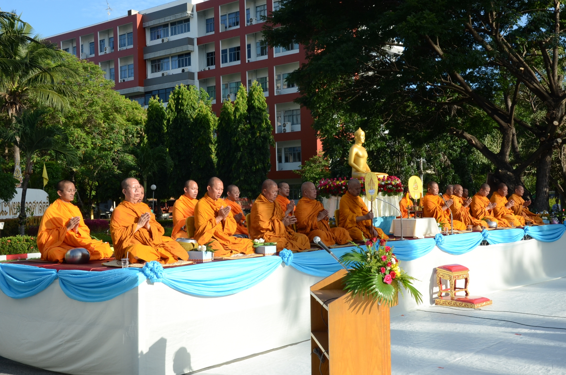 มหาวิทยาลัยบูรพา โดย กองกิจการนิสิต มหาวิทยาลัยบูรพา ร่วมกับ ชมรมพุทธศาสน์ มหาวิทยาลัยบูรพาในพระสังฆราชูปถัมภ์ จัดกิจกรรมกิจกรรมทำบุญตักบาตรพระ ๕๙๙ รูป
