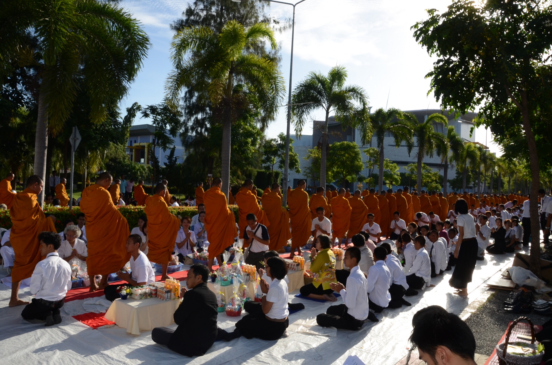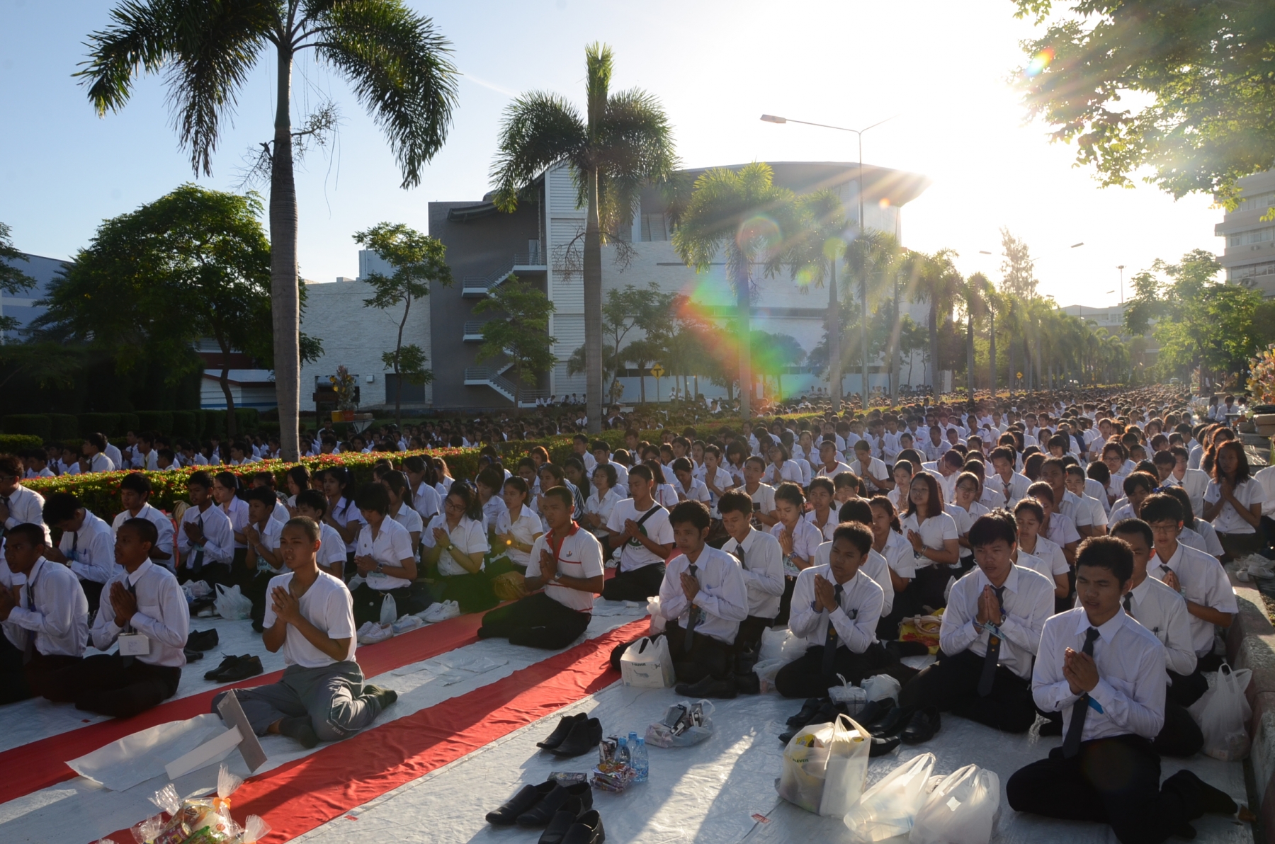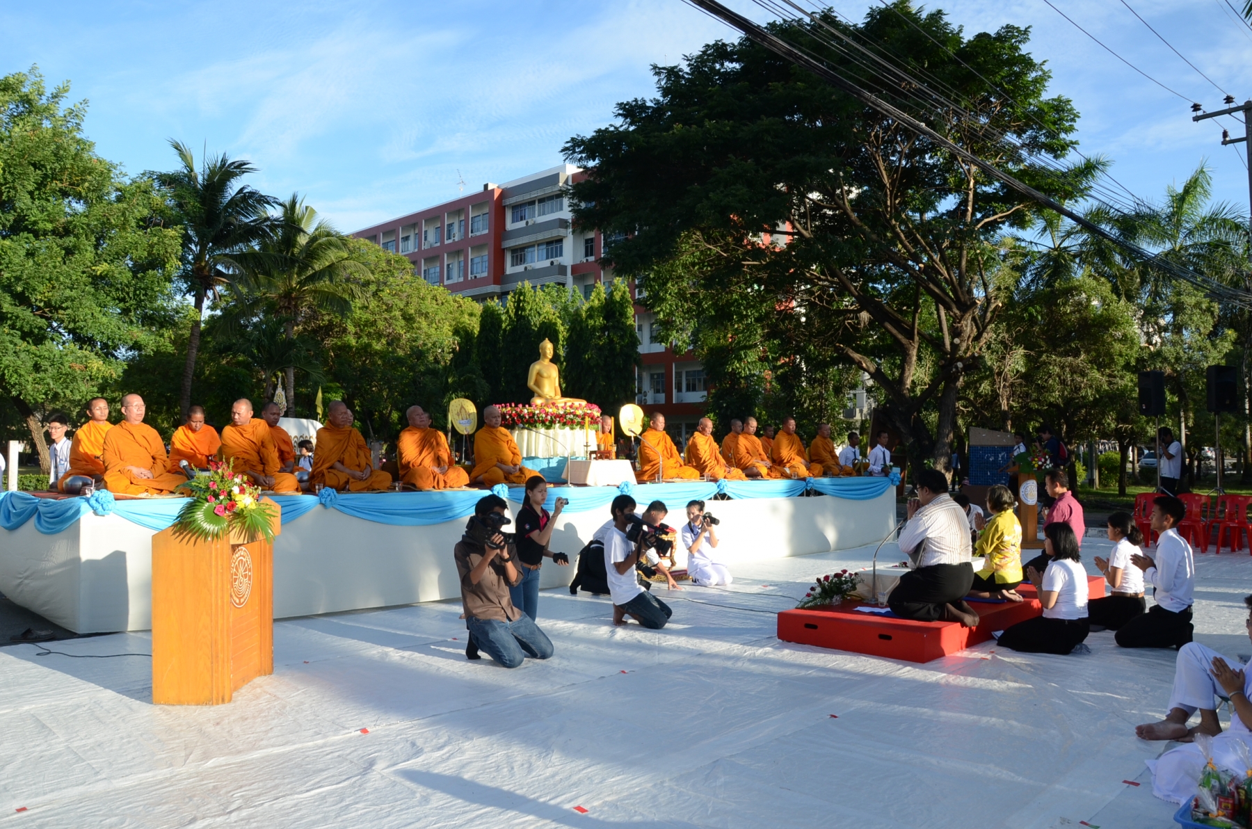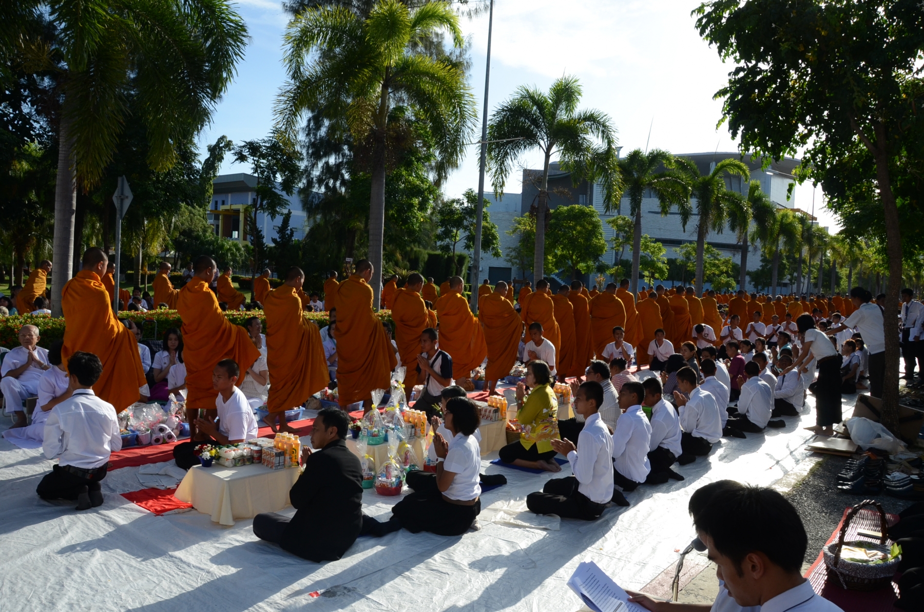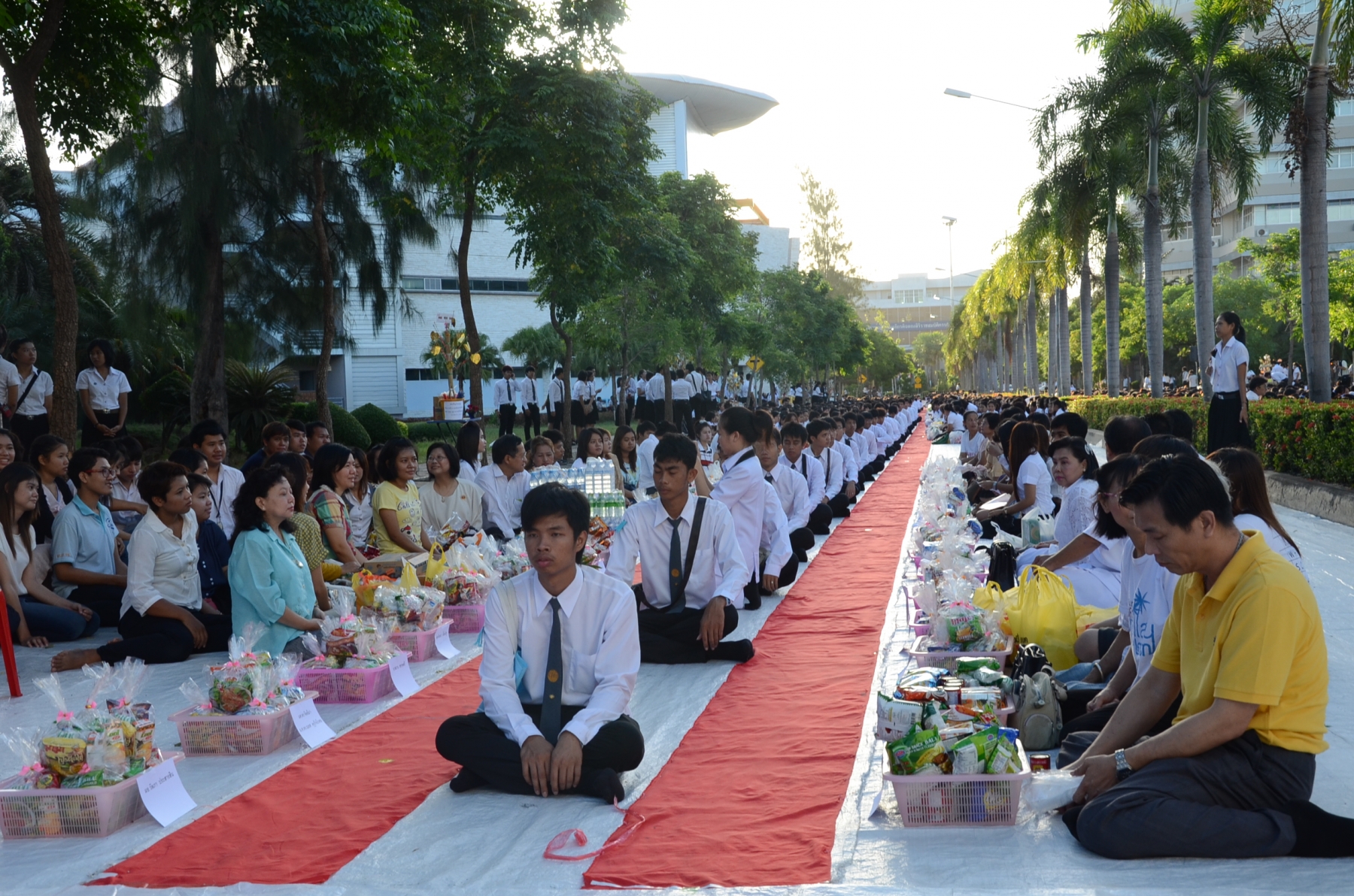 มหาวิทยาลัยบูรพา โดย กองกิจการนิสิต มหาวิทยาลัยบูรพา ร่วมกับ ชมรมพุทธศาสน์ มหาวิทยาลัยบูรพาในพระสังฆราชูปถัมภ์ จัดกิจกรรมกิจกรรมทำบุญตักบาตรพระ ๕๙๙ รูป