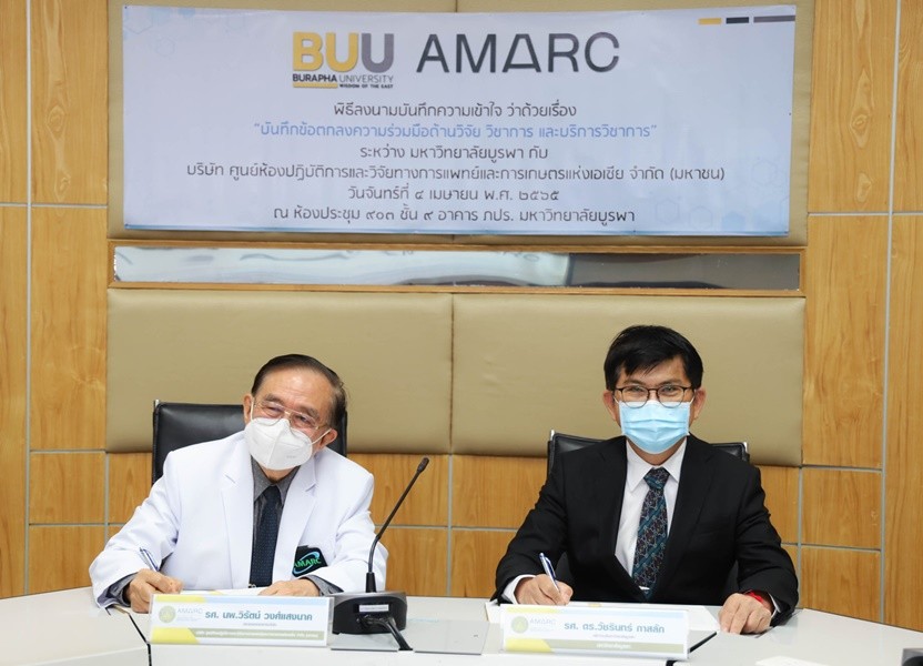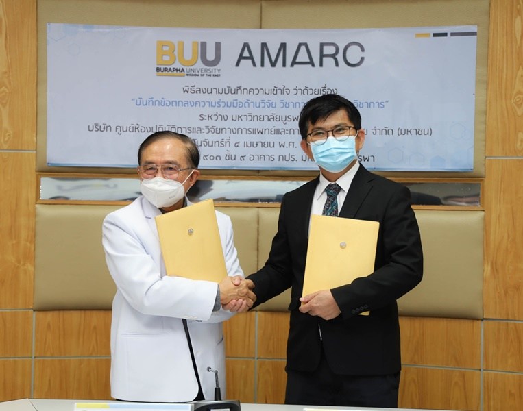 และบริการวิชาการ นำโดยรองศาสตราจารย์ ดร.วัชรินทร์ กาสลัก อธิการบดีมหาวิทยาลัยบูรพา และรองศาสตราจารย์ นพ.วิรัตน์ วงศ์แสงนาค ประธานกรรมการบริษัทศูนย์ห้องปฏิบัติการและวิจัยทางการแพทย์ และการเกษตร แห่งเอเชีย จำกัด (มหาชน) เป็นประธานลงนามข้อตกลงความร่วมมือฯของแต่ละฝ่าย พร้อมด้วย