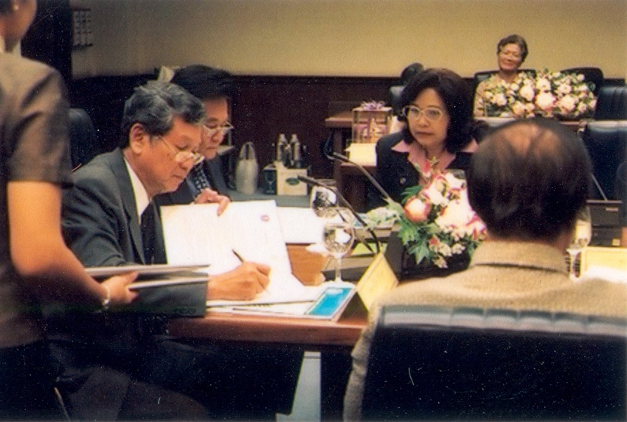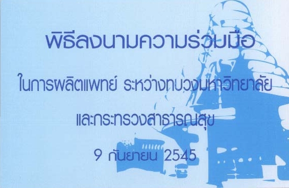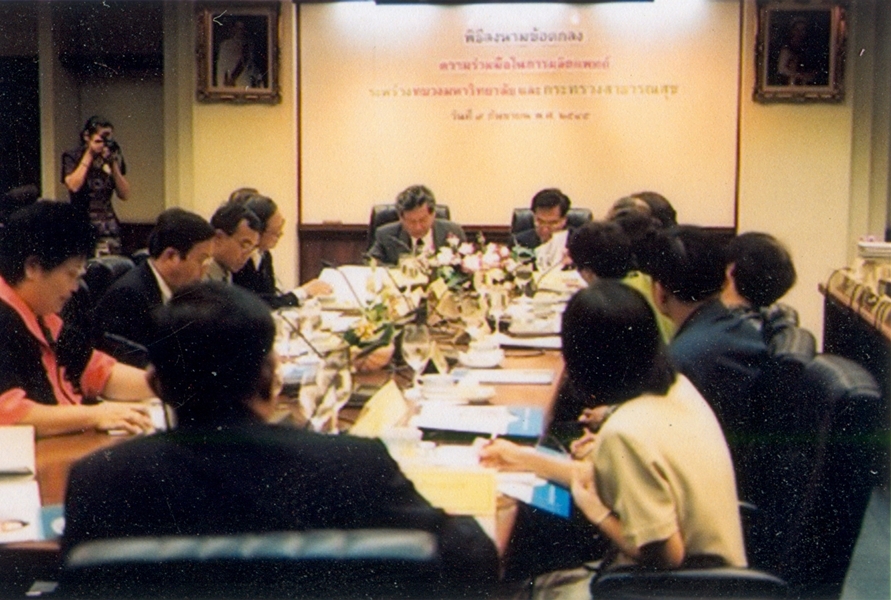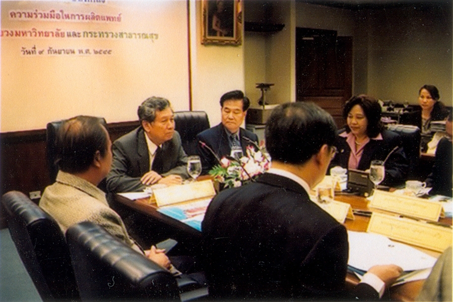 พิธีลงนามบันทึกข้อตกลงความร่วมมือทางวิชาการในการผลิตแพทย์ ระหว่าง ทบวงมหาวิทยาลัย กับ กระทรวงสาธารณสุข เมื่อวันที่ ๙ กันยายน พ.ศ. ๒๕๔๕