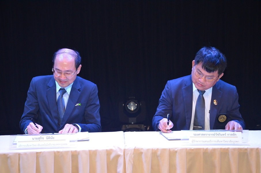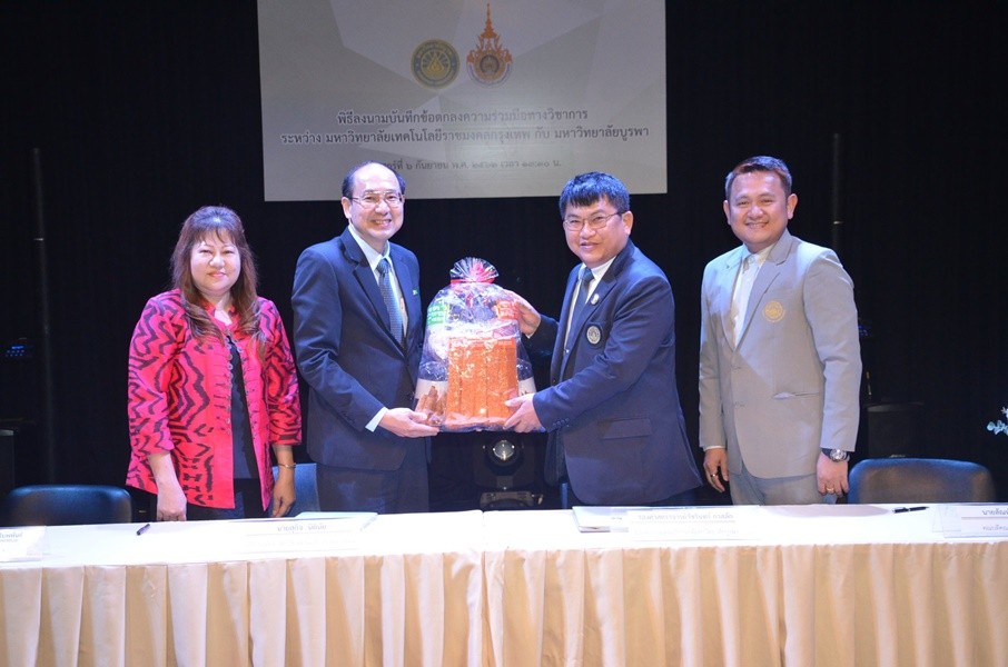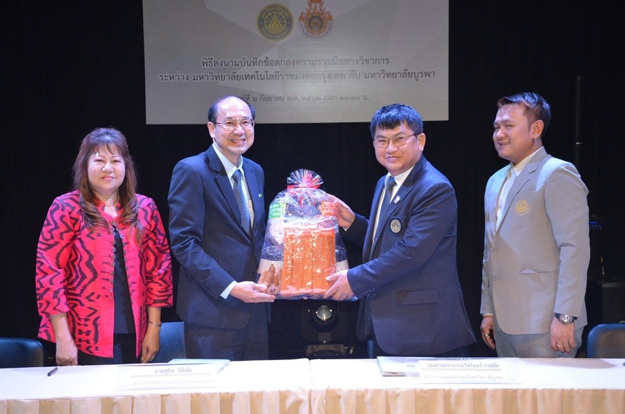 พิธีลงนามบันทึกข้อตกลงความร่วมมือทางวิชาการ ระหว่าง มหาวิทยาลัยเทคโนโลยีราชมงคลกรุงเทพ กับ มหาวิทยาลัยบูรพา เมื่อวันที่ ๖ กันยายน พ.ศ. ๒๕๖๒