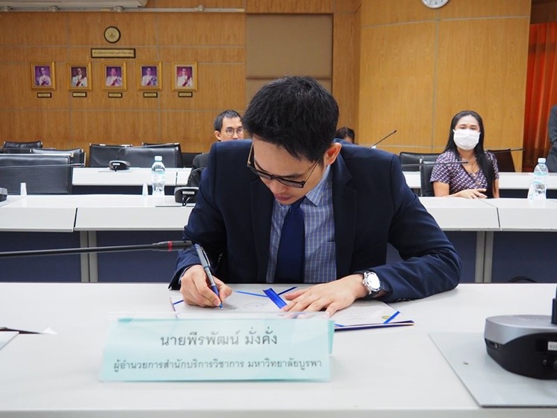 และสักขีพยานในการลงนามความร่วมมือในครั้งนี้ ซึ่งมี รศ.ดร.วัชรินทร์ กาสลัก อธิการบดีมหาวิทยาลัยบูรพา และ นายกนิษฐ์พงษ์ บุษบงค์ กรรมการ