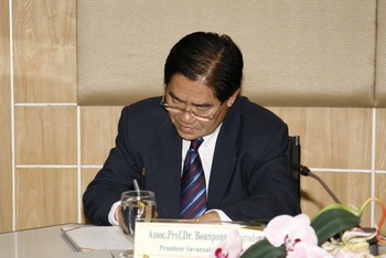 ๓. อาจารย์แสงจัน หอมสมบัด หัวหน้าห้องการสังคมและร่วมมือ เป็นพยานจากความร่วมมือของทั้งสองหน่วยงาน จะนำมาซึ่งกิจกรรมการพัฒนาทางด้านวิชาการต่าง ๆ มากมาย อาทิ การแลกเปลี่ยนนิสิต, การแลกเปลี่ยนคณาจารย์ ผู้เชี่ยวชาญ, การพัฒนาหลักสูตรร่วมกัน, การถ่ายทอดเทคโนลียีต่าง ๆ, การพัฒนางานวิจัย, การแลกเปลี่ยนทางด้านข่าวสารทางวิชาการ ฯลฯ เพื่อรองรับการขยายตัวทางด้านการศึกษาในภูมิภาคอาเซี่ยน