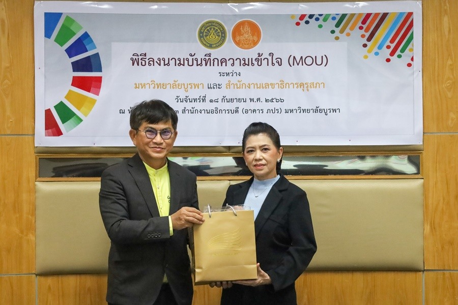 พิธีลงนามบันทึกความเข้าใจ (MOU) ระหว่าง มหาวิทยาลัยบูรพา กับ สำนักงานเลขาธิการคุรุสภา เมื่อวันที่ 18 กันยายน พ.ศ. 2566 ณ ห้องประชุม 903 สำนักงานอธิการบดี (อาคาร ภปร.) มหาวิทยาลัยบูรพา