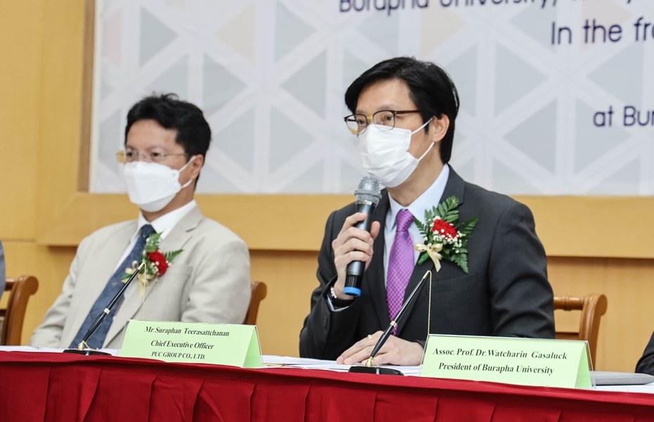 มหาวิทยาลัยบูรพา ร่วมเป็นสักขีพยาน คุณสุรพันธ์ ธีรสัจจานันท์ ประธานเจ้าหน้าที่บริหารบริษัท พียูซี กรุ๊ป จำกัด ซึ่งทำหน้าที่หลักในการวางแผน