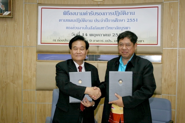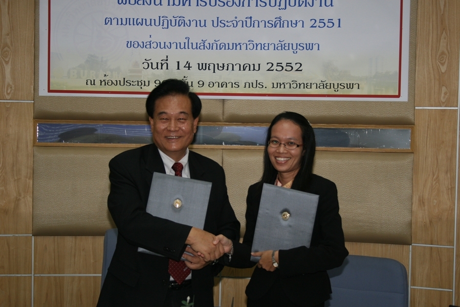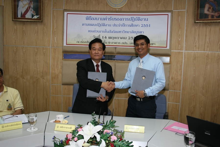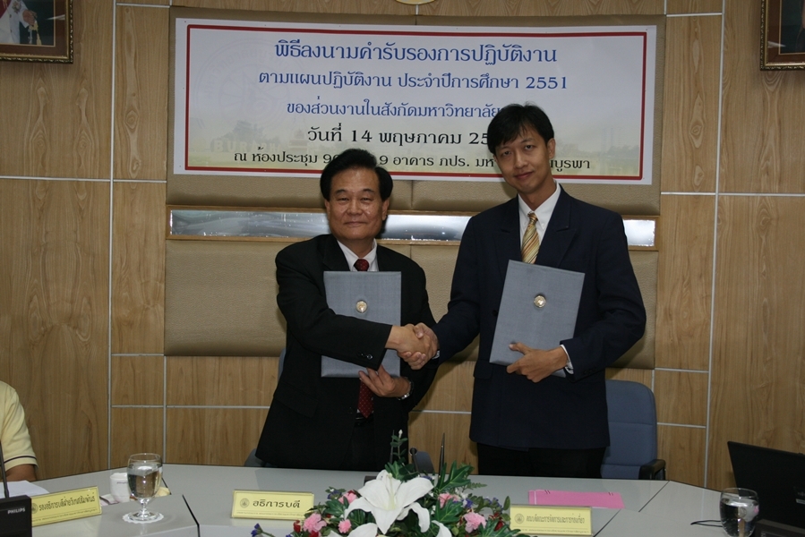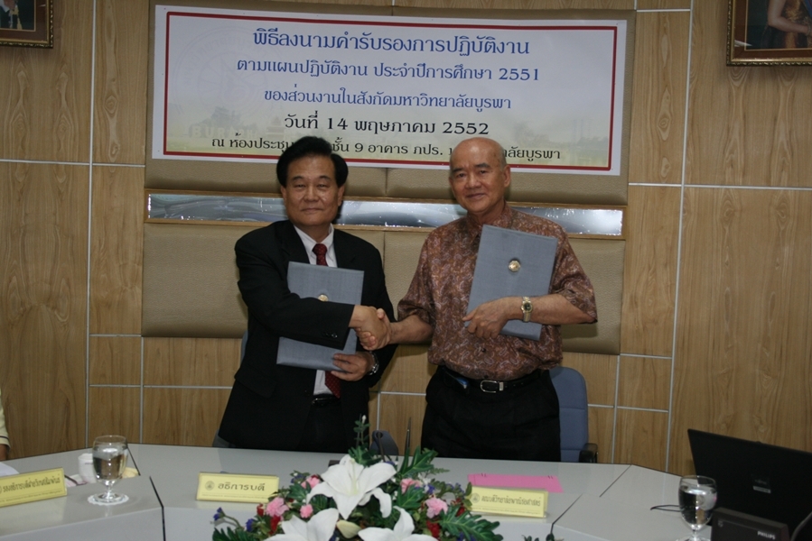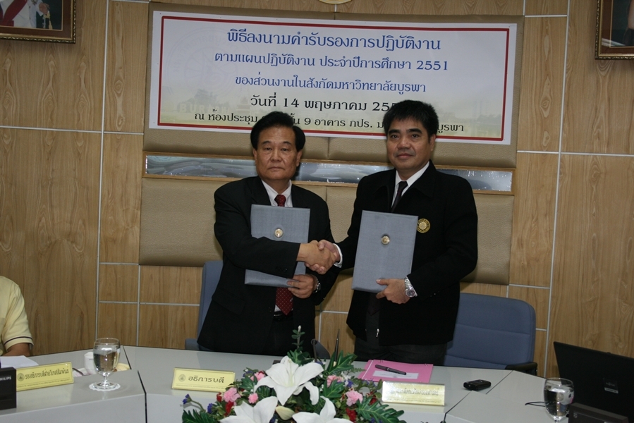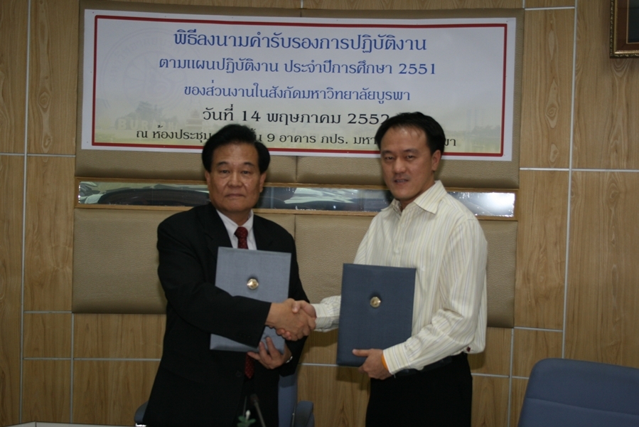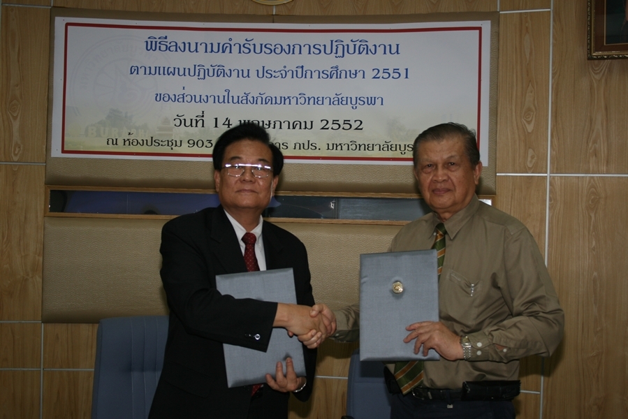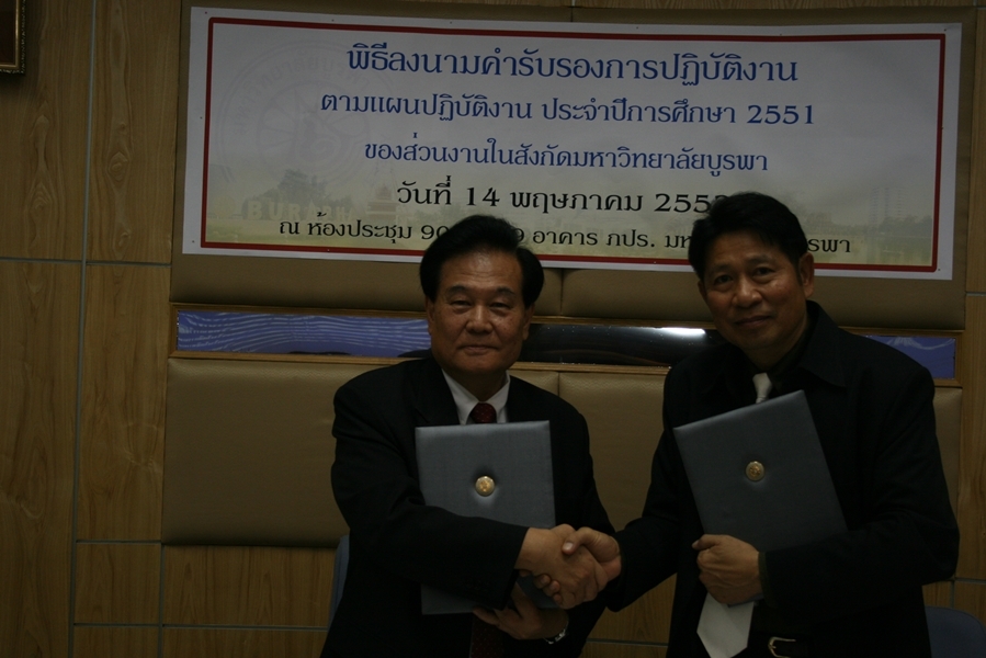 พิธีลงนามคำรับรองการปฏิบัติงานตามแผนปฏิบัติงาน ประจำปีการศึกษา ๒๕๕๑ ของส่วนงานในสังกัดมหาวิทยาลัยบูรพา เพื่อจัดทำคำรับรองการปฏิบัติงาน