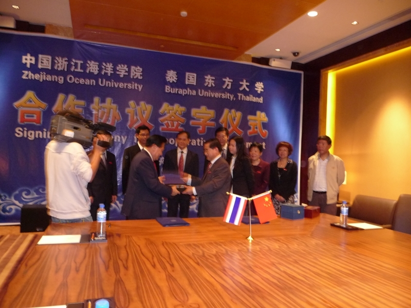 พิธีลงนามบันทึกข้อตกลงความร่วมมือทางวิชาการ ระหว่าง มหาวิทยาลัยบูรพา กับ Zhejiang Ocean Universityณ ประเทศสาธารณรัฐประชาชนจีน นำโดยศาสตราจารย์ ดร.สุชาติ อุปถัมภ์ อธิการบดี มหาวิทยาลัยบูรพา พร้อมด้วยผู้บริหาร เดินทางสู่ Zhejiang Ocean University ประเทศสาธารณรัฐประชาชนจีน