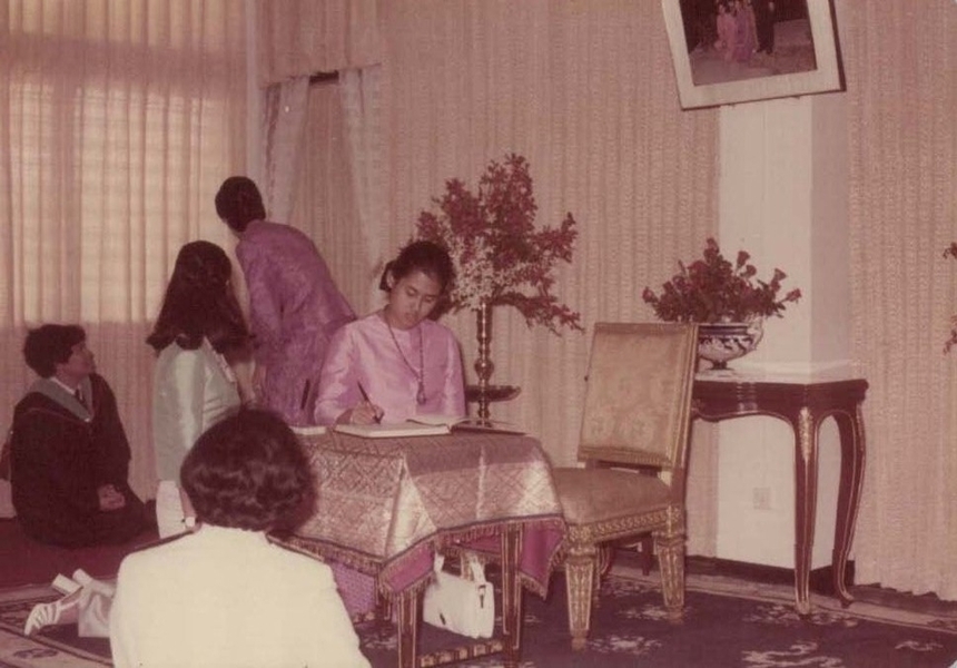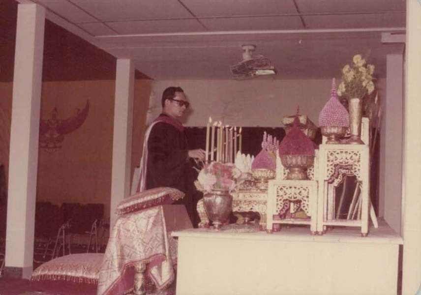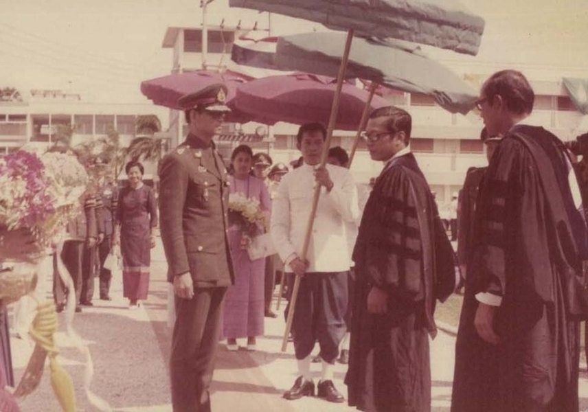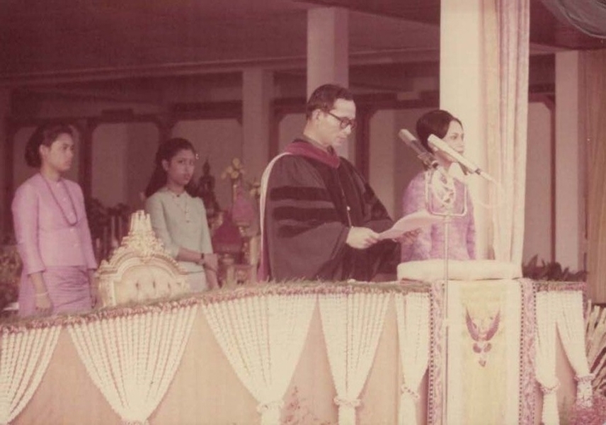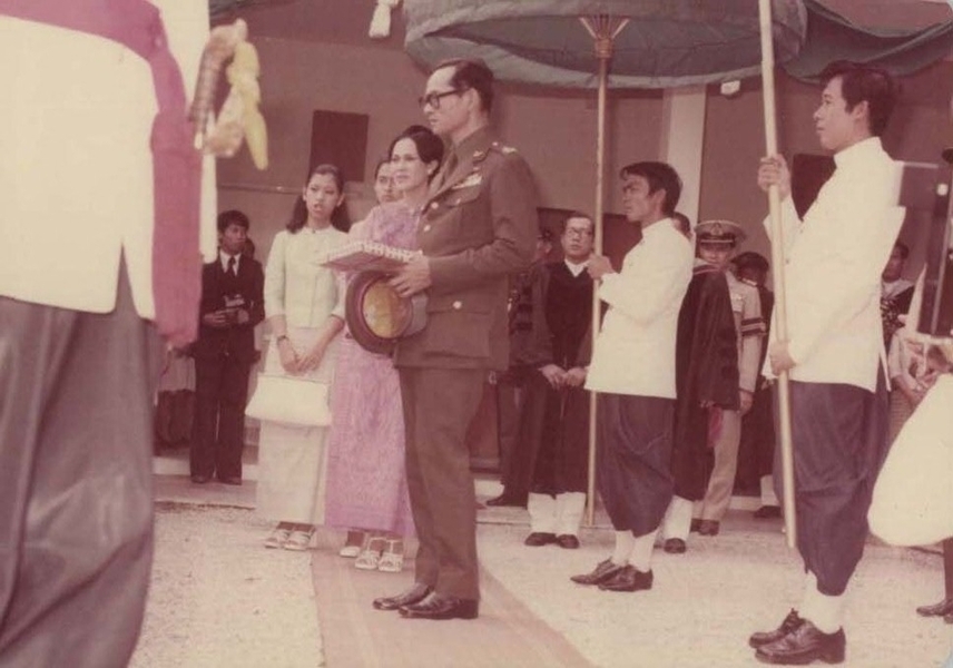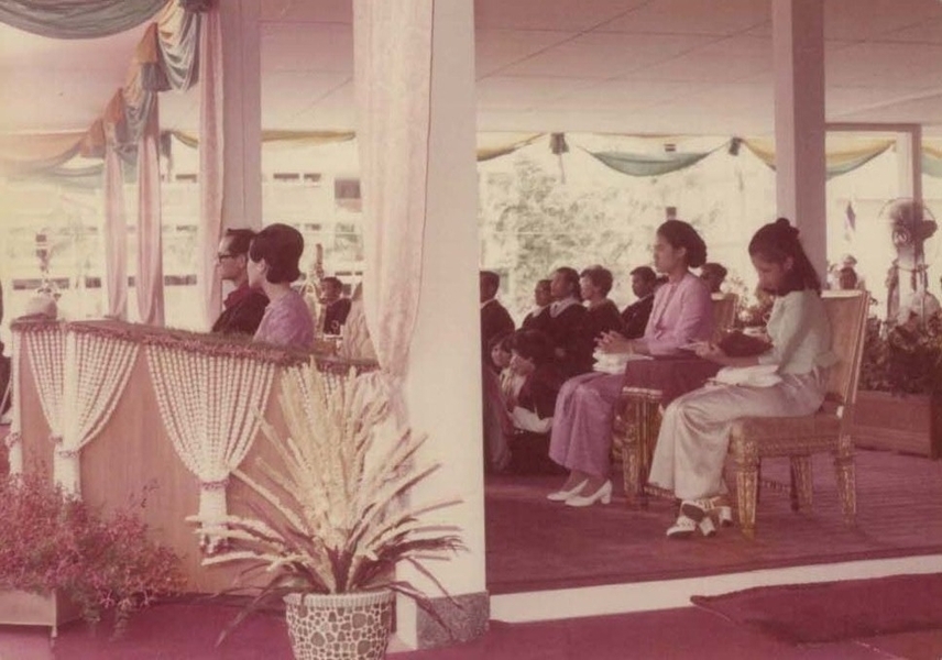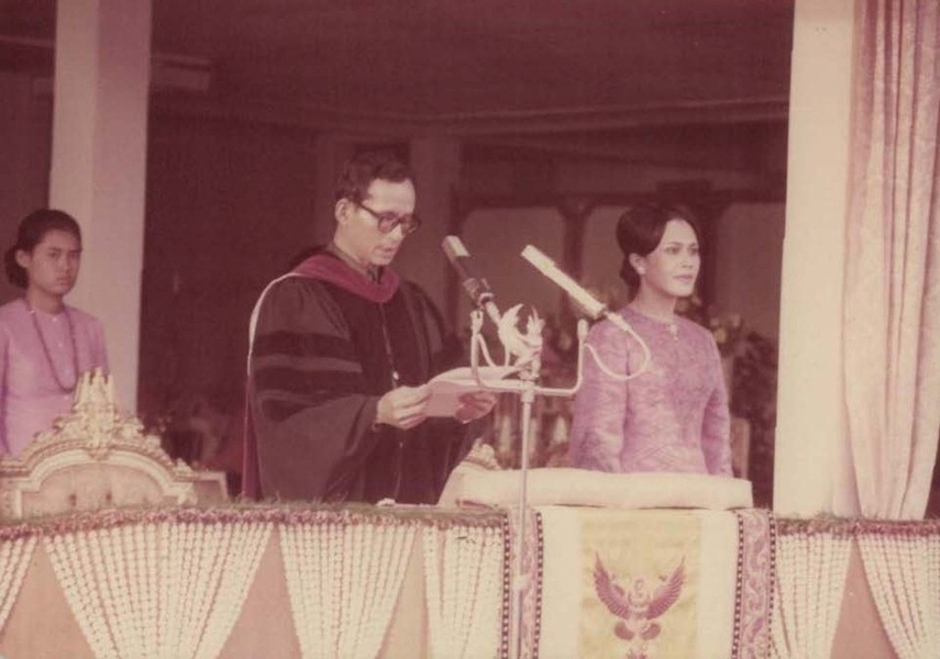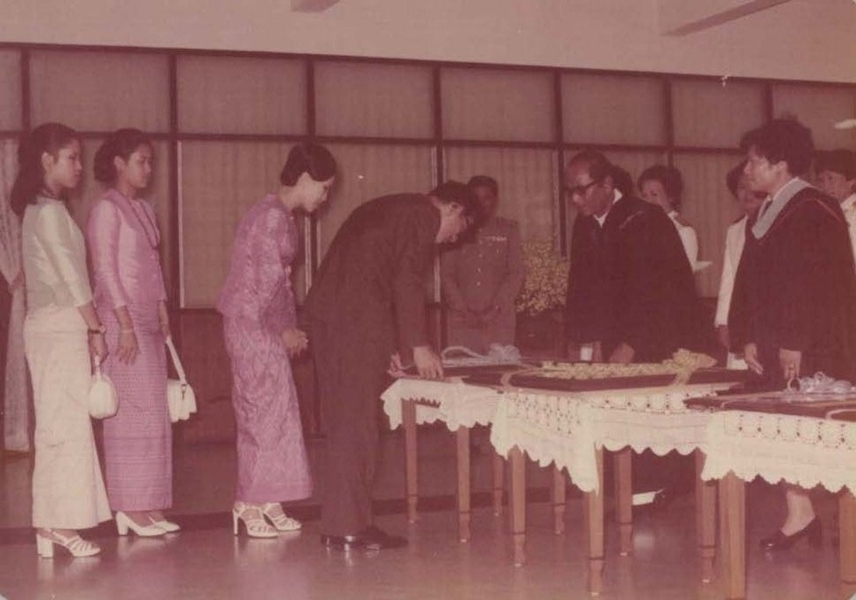 พระบาทสมเด็จพระเจ้าอยู่หัว เสด็จพระราชดำเนินพร้อมด้วย สมเด็จพระนางเจ้าพระบรมราชินีนาถ สมเด็จพระเทพรัตนราชสุดา สยามบรมราชกุมารี และสมเด็จพระเจ้าลูกเธอเจ้าฟ้าจุฬาภรณ์วลัยลักษณ์ เพื่อพระราชทานปริญญาบัตรแก่บัณฑิต ประจำปีการศึกษา ๒๕๑๗-๒๕๑๘ เมื่อวันที่ ๓๐ มิถุนายน พ.ศ. ๒๕๑๙ ณ มหาวิทยาลัยศรีนครินทรวิโรฒ บางแสน