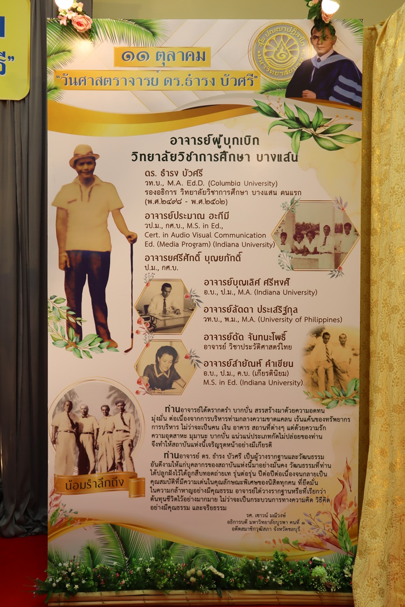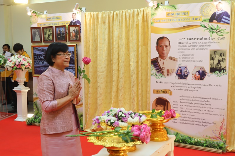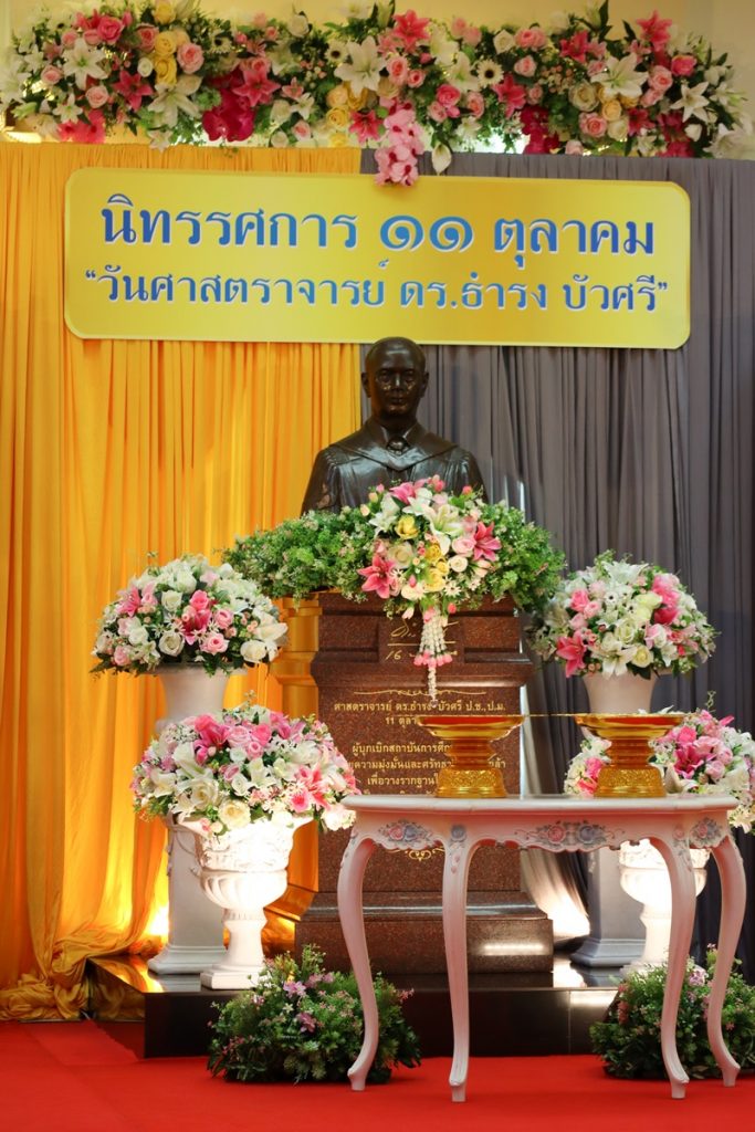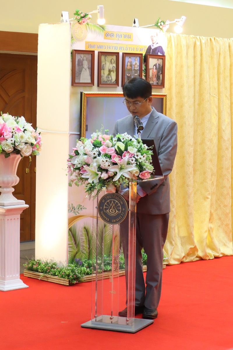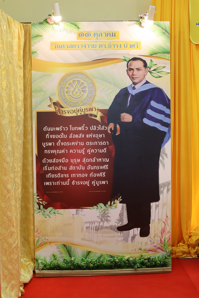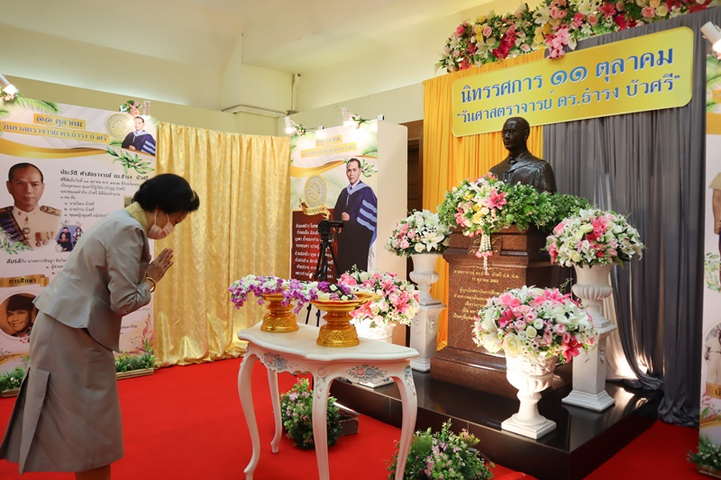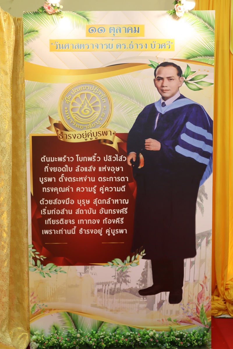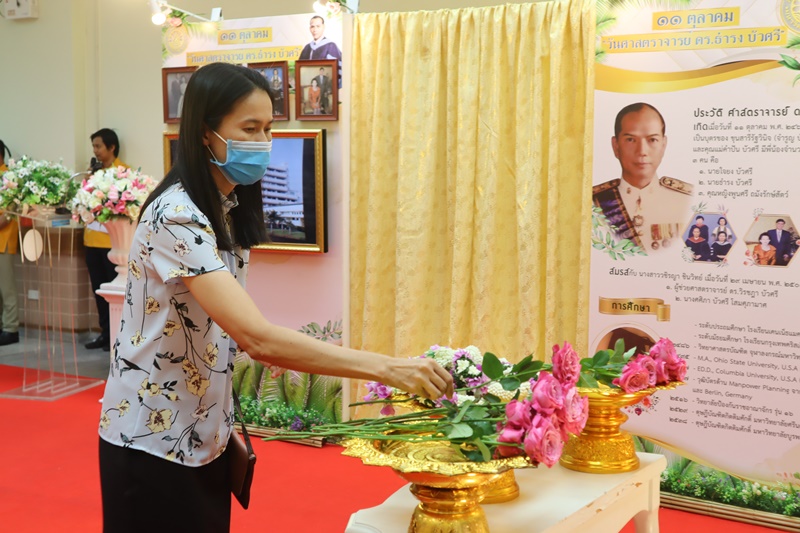 BUU Library administrators and staff attended “Professor Dr.Thamrong Buasri Day” on Sunday, 11 October 2020 at the hall on the first floor of Thamrong Buasri Auditorium, Burapha University. It was held to commemorate Prof. Dr. Thamrong Buasri who is a pioneer on the establishment of Bangsaen Academic College which is currently Burapha University. Assoc. Prof. Dr. Watcharin Gasaluck, President of Burapha University, presided over the ceremony along with Asst. Prof. Dr. Wirachada Buasri, Representative of the President of Prof. Dr. Thamrong Buasri Foundation in order to give the offerings and essentials to the monks. Moreover, BUU Library was assigned to hold a commemoration exhibition of Prof. Dr. Thamrong Buasri at this time.