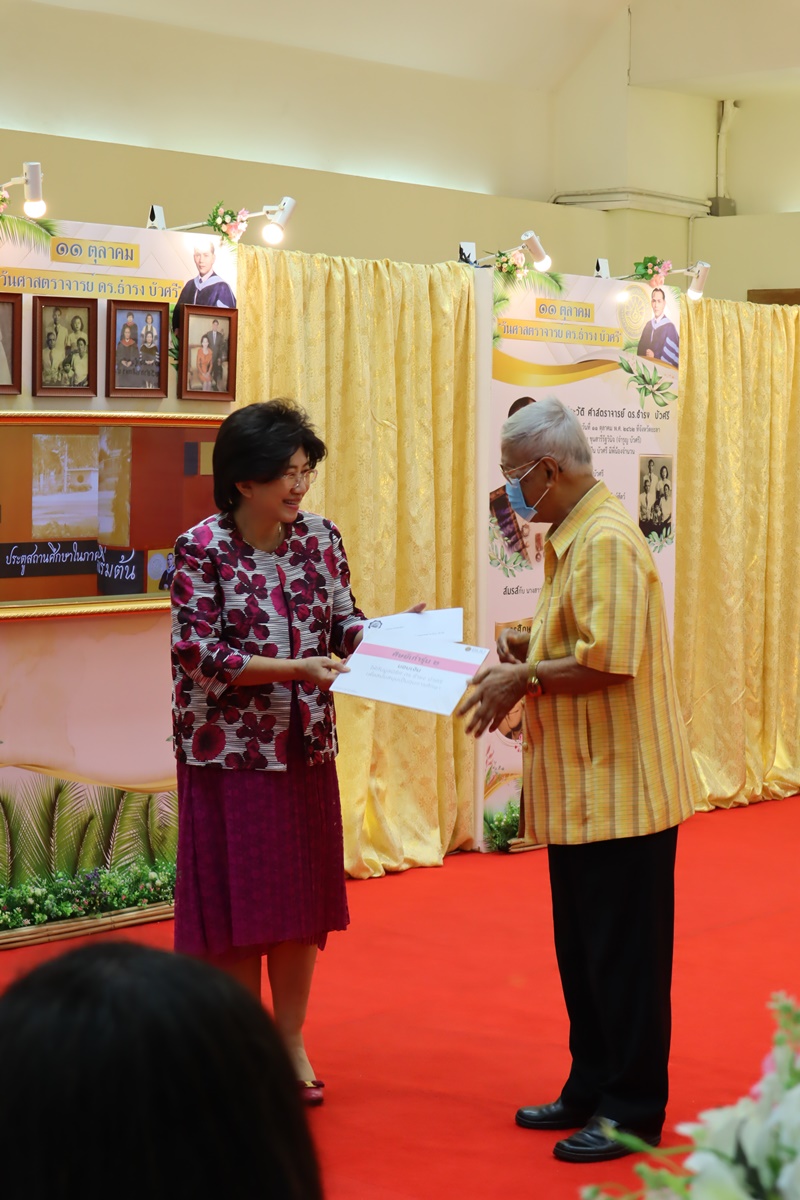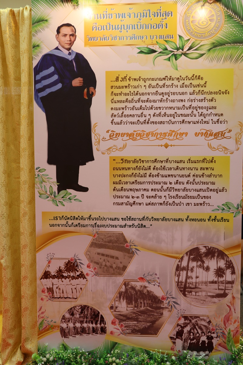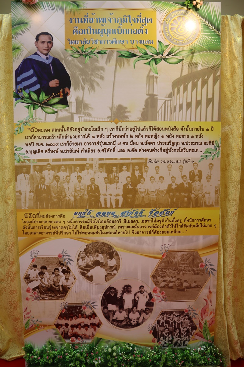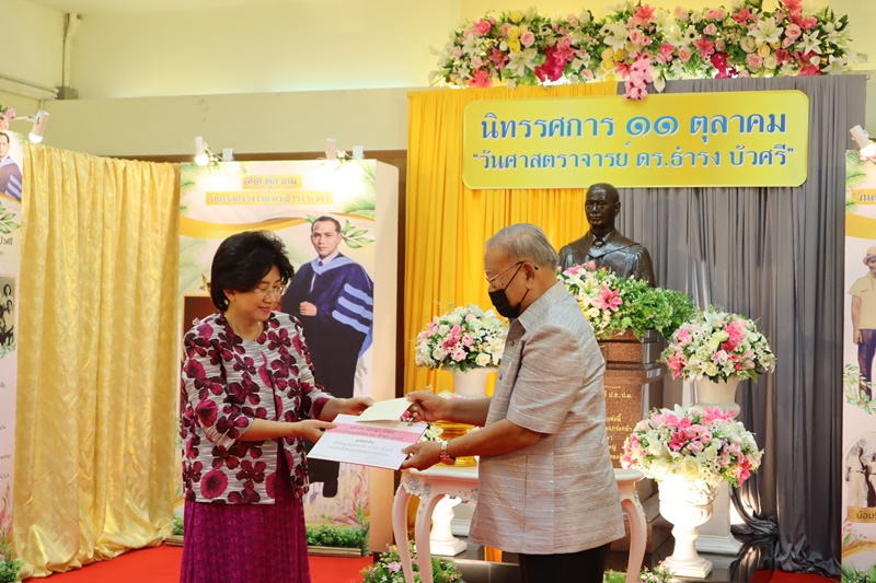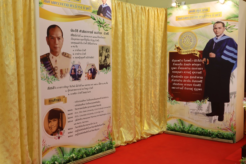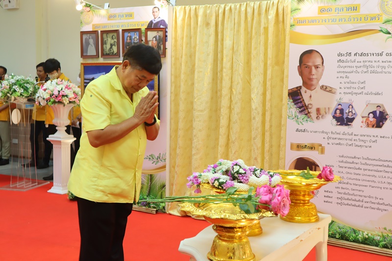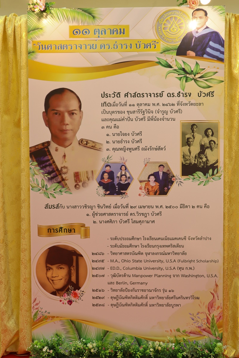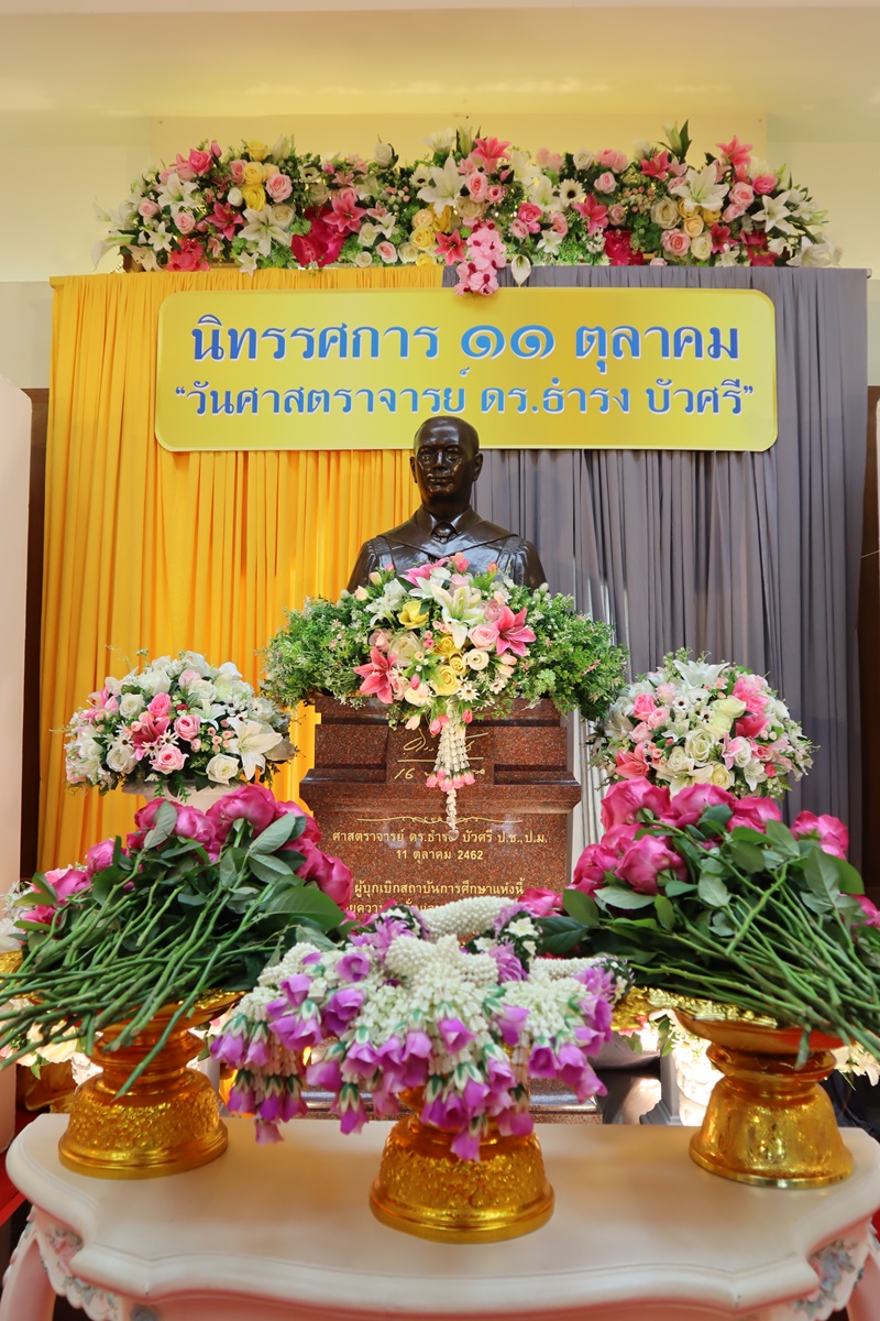 BUU Library administrators and staff attended “Professor Dr.Thamrong Buasri Day” on Sunday, 11 October 2020 at the hall on the first floor of Thamrong Buasri Auditorium, Burapha University. It was held to commemorate Prof. Dr. Thamrong Buasri who is a pioneer on the establishment of Bangsaen Academic College which is currently Burapha University. Assoc. Prof. Dr. Watcharin Gasaluck, President of Burapha University, presided over the ceremony along with Asst. Prof. Dr. Wirachada Buasri, Representative of the President of Prof. Dr. Thamrong Buasri Foundation in order to give the offerings and essentials to the monks. Moreover, BUU Library was assigned to hold a commemoration exhibition of Prof. Dr. Thamrong Buasri at this time.