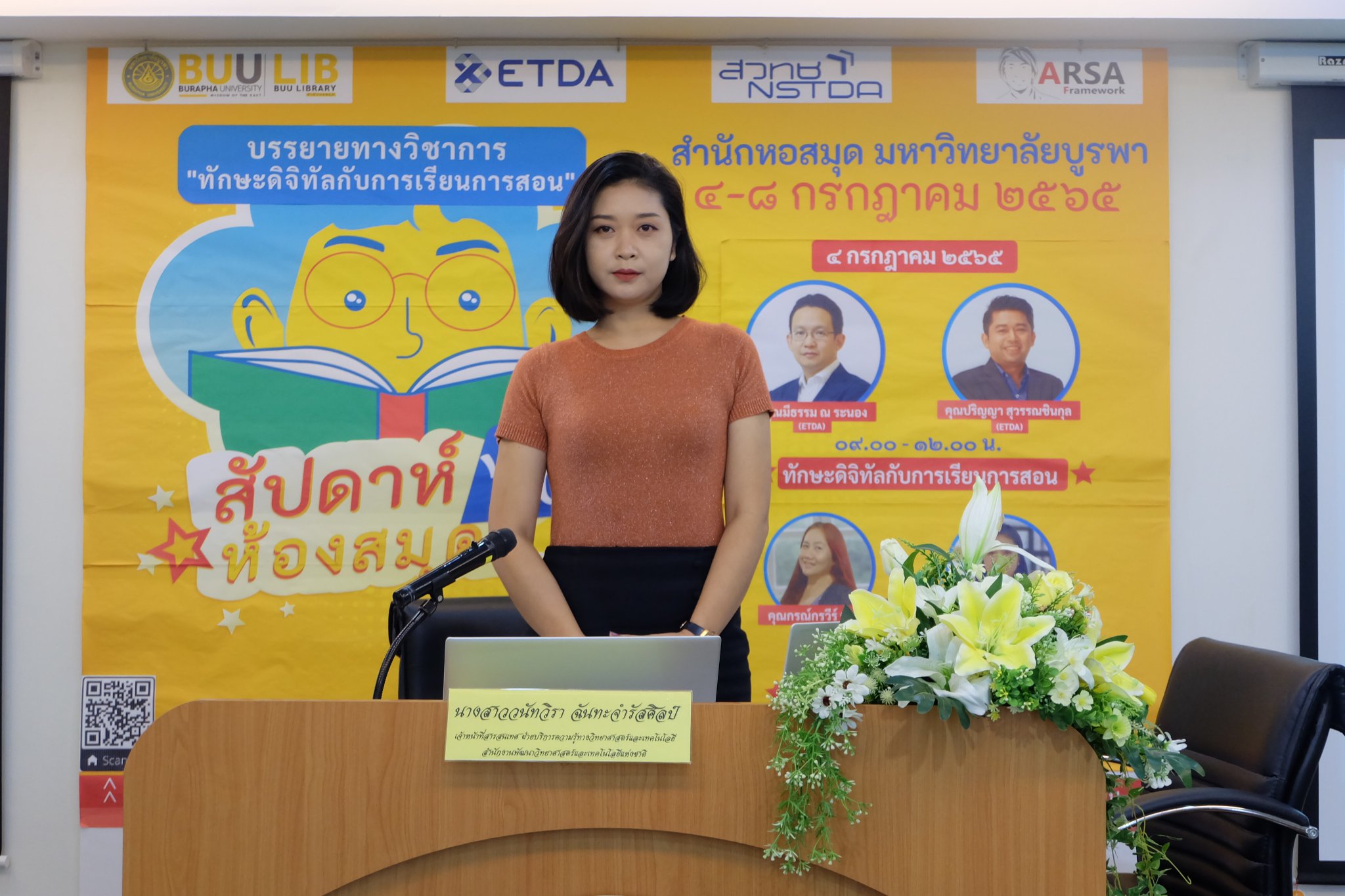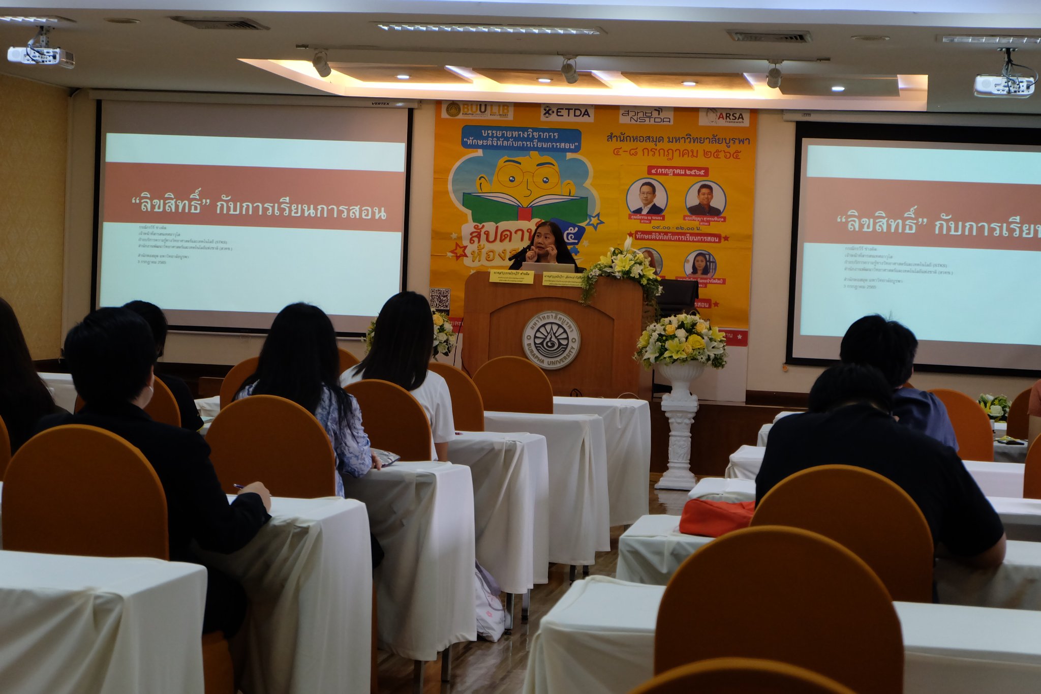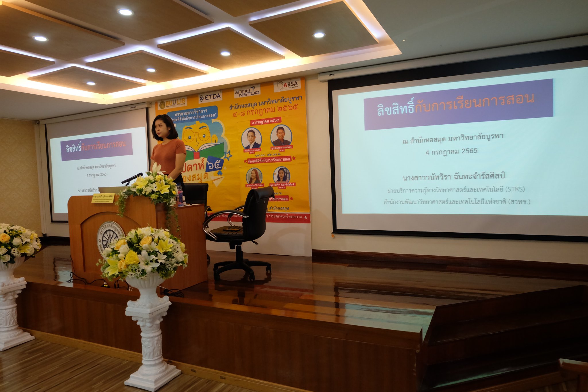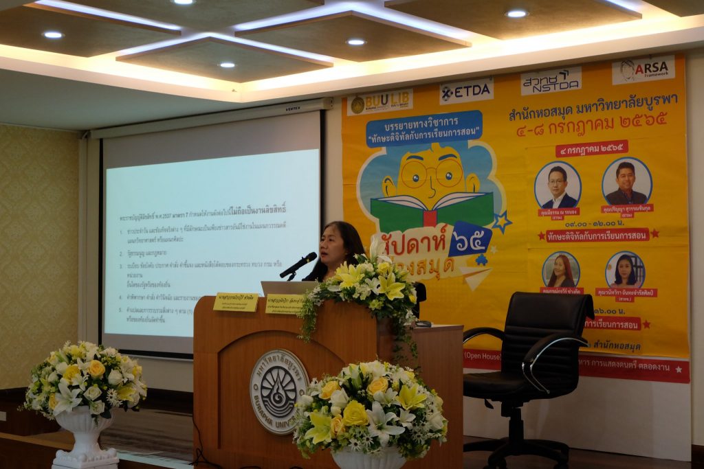 Burapha University Library held the academic lecture on “Licensing and Teaching” together with the speakers, Ms. Kornkorawee Changkid and Ms. Natwira Chantachumrussin, Science and Technology Knowledge Services: STKS, Science and Technology Development Agency (NSTDA) on 4 July 2022 from 1.00-4.00 pm.