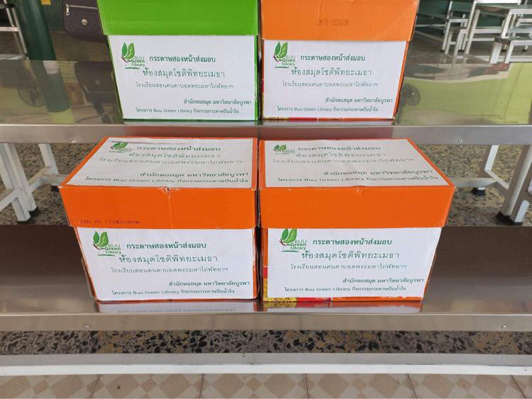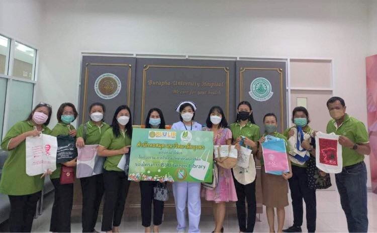 “Using Cloth Bags Instead of Plastic Bags” by donating 100 cloth bags to Burapha University Hospital and also participated in “Paper Sharing Kindness” activity by donating 4 boxes of A4 double-sided reuse paper for the visually impaired people in the school for the blind, the redemptorist vocational for the disabled in pattaya, Chonburi Province, which both activities are part of BUU Green Library project. These activities were held on 27 December 2022.