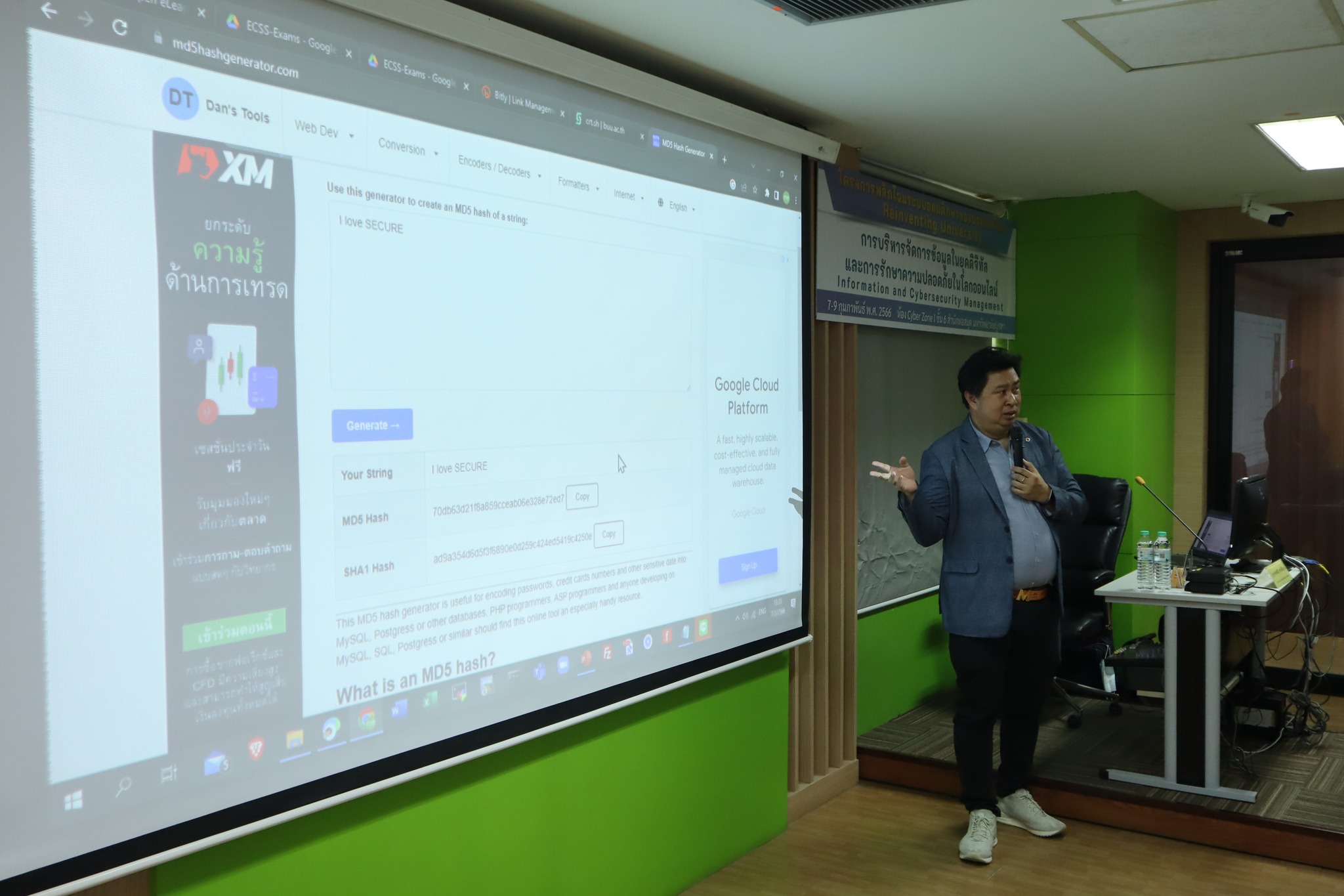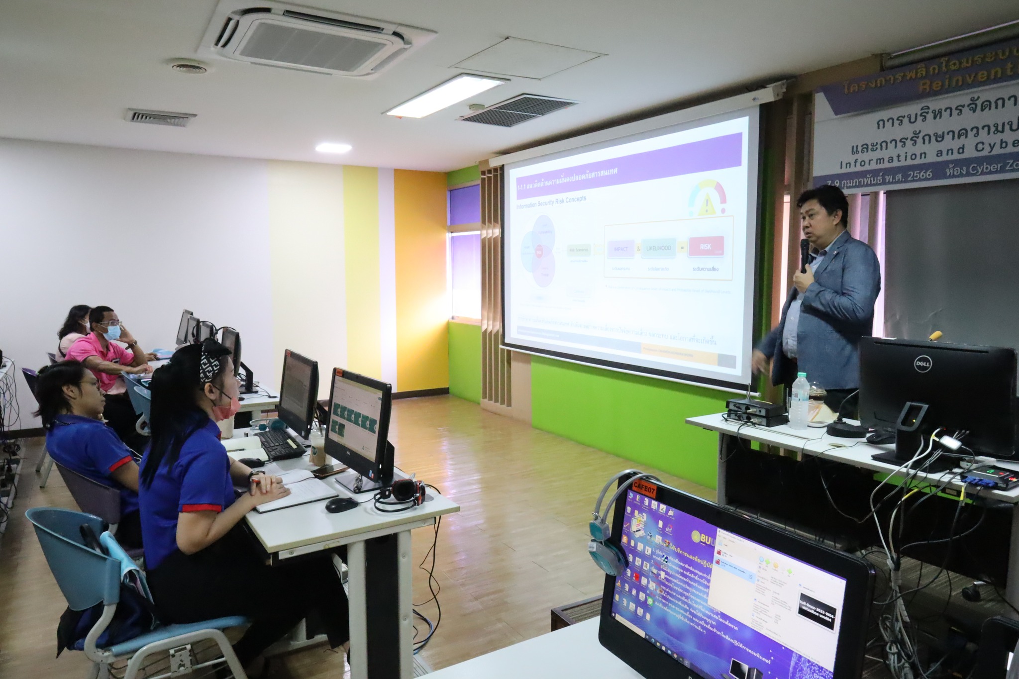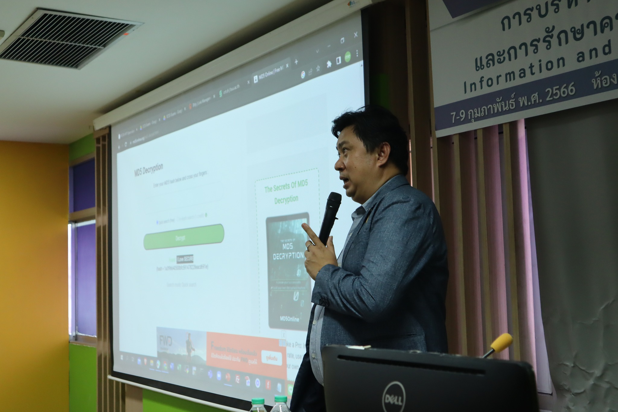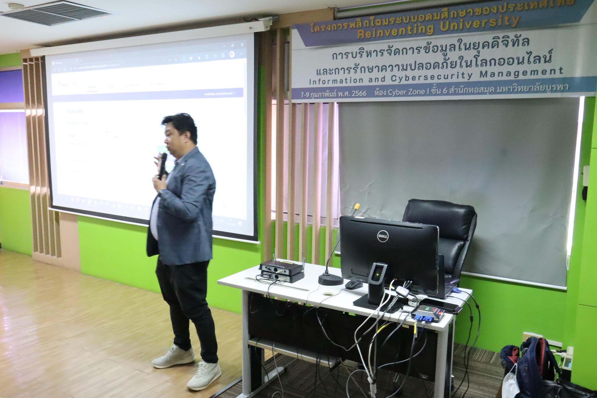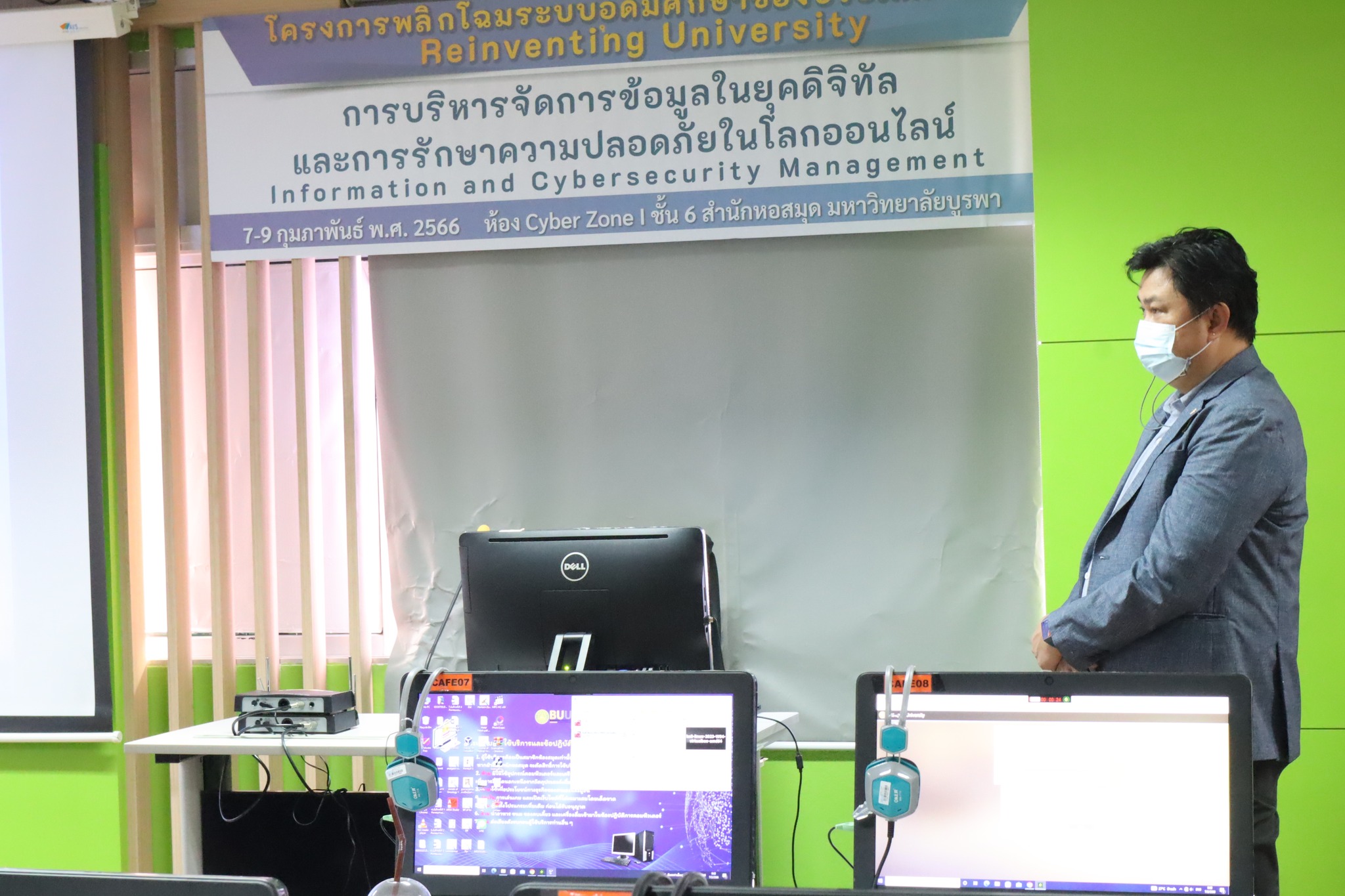 Burapha University Library held the training on the topic of “Fundamentals of Information Security, Threats and Attacks in Information Security, Social Engineering and Coding System Science, and Information Concealment Science, Ethics and Related Laws” lectured by Ajarn Pongsanun Chanchaihinnaworn, the lecturer at the Faculty of Science and Social Sciences, Burapha University, Sa Kaeo Campus in the short training course project “Data Management in the Digital Age and Online Security” which the director of the library presided over the opening speech of the project on 7 February 2023 from 9:00 a.m. – 4:00 p.m. at Cyber Zone I on the 6th floor of the library.
