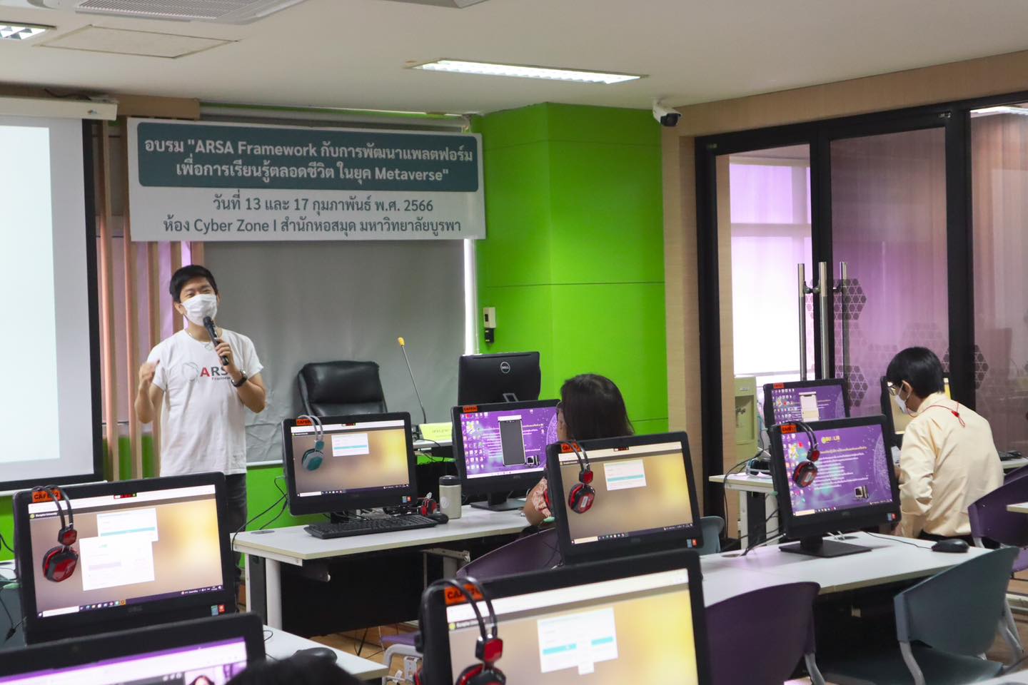 Burapha University Library held the training on the topic of “ARSA Framework and Platform Development for Lifelong Learning in the Metaverse Era” by the guest speaker, Assoc. Prof. Dr. Arsa Tangjitsomkid, the Chairman of the Board of Directors, ARSA Production Company Limited on 17 February 2023 from          9:00 a.m. – 4:30 p.m. at Cyber Zone I Room on the 6th floor of the library.