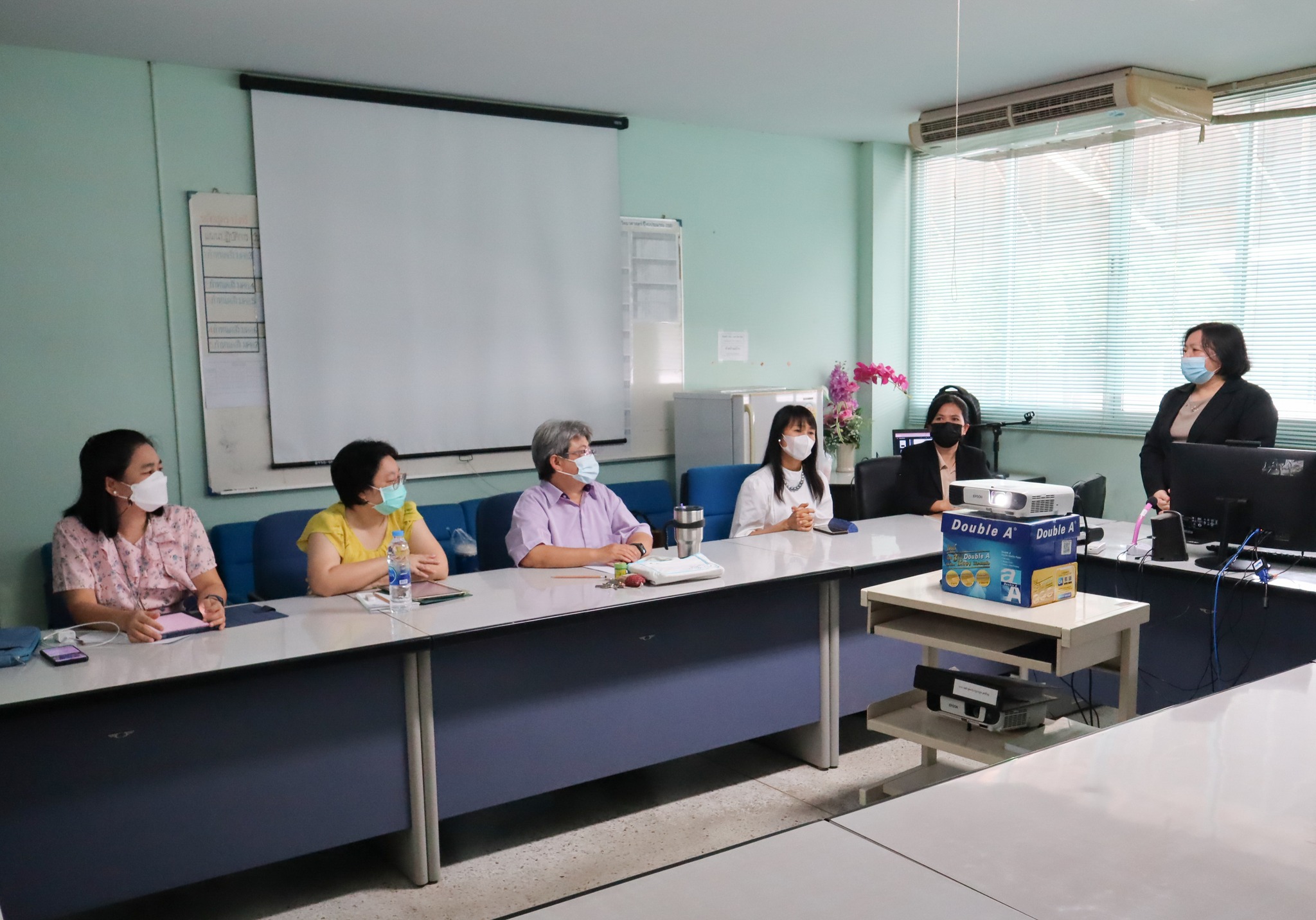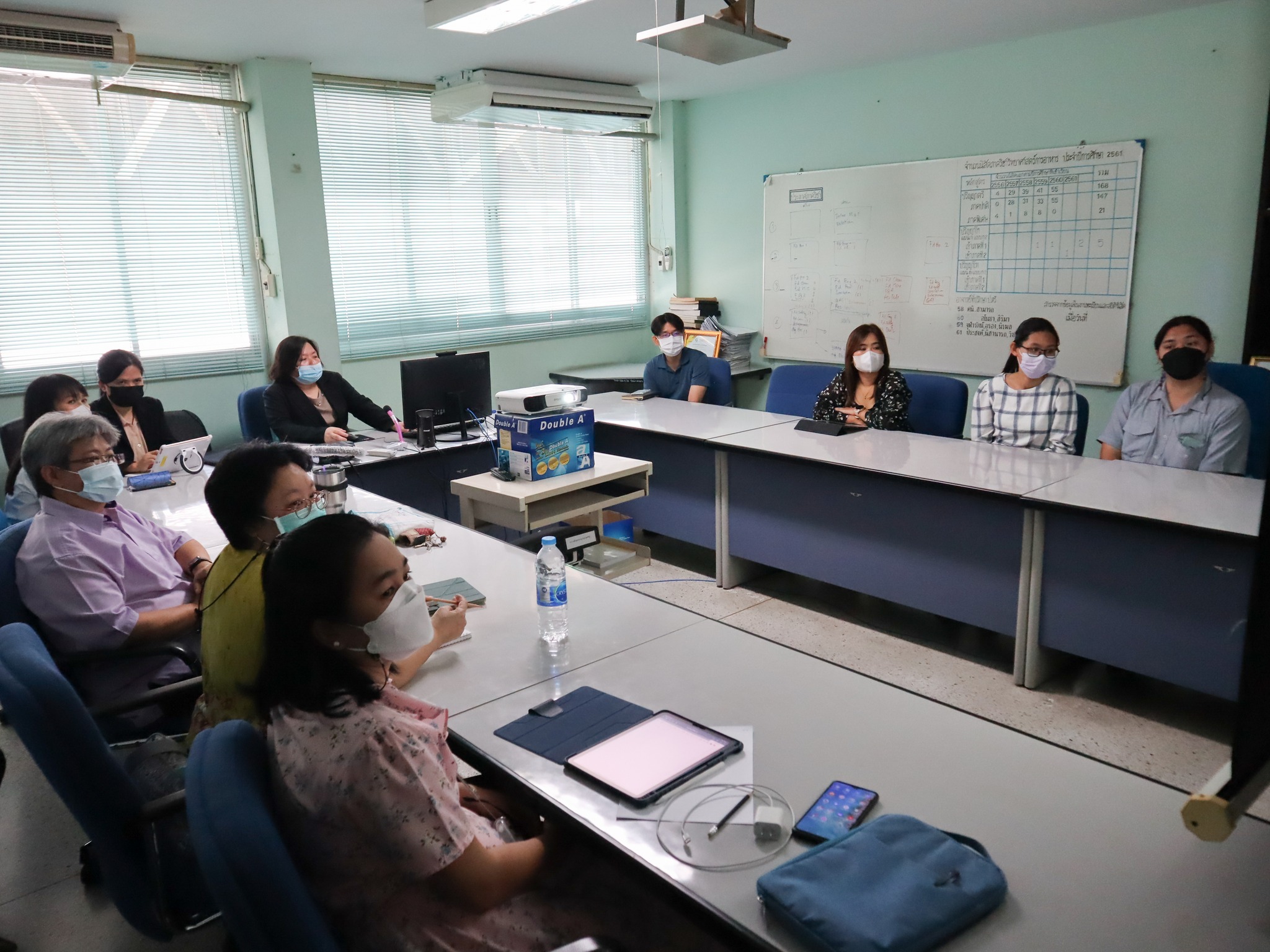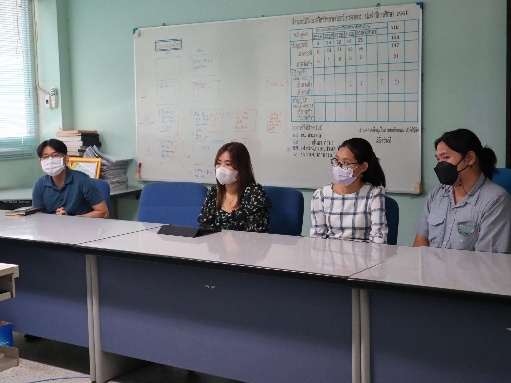 Information Services and Learning Innovation Department, BUU Library led by Ms. Nisachon Kanchanapichit, Ms. Supawadee Petchchuensakul and Ms. Wongduen Charoen, met professors, personnel and graduate students from Department of Food Science, Faculty of Science, in order to introduce how to access to information resources, use of various library services and supporting tools for research including contact channels for service in BUU Library Research Support Project on 3 April 2023 at the Department of Food Science, Faculty of Science, Burapha University.
