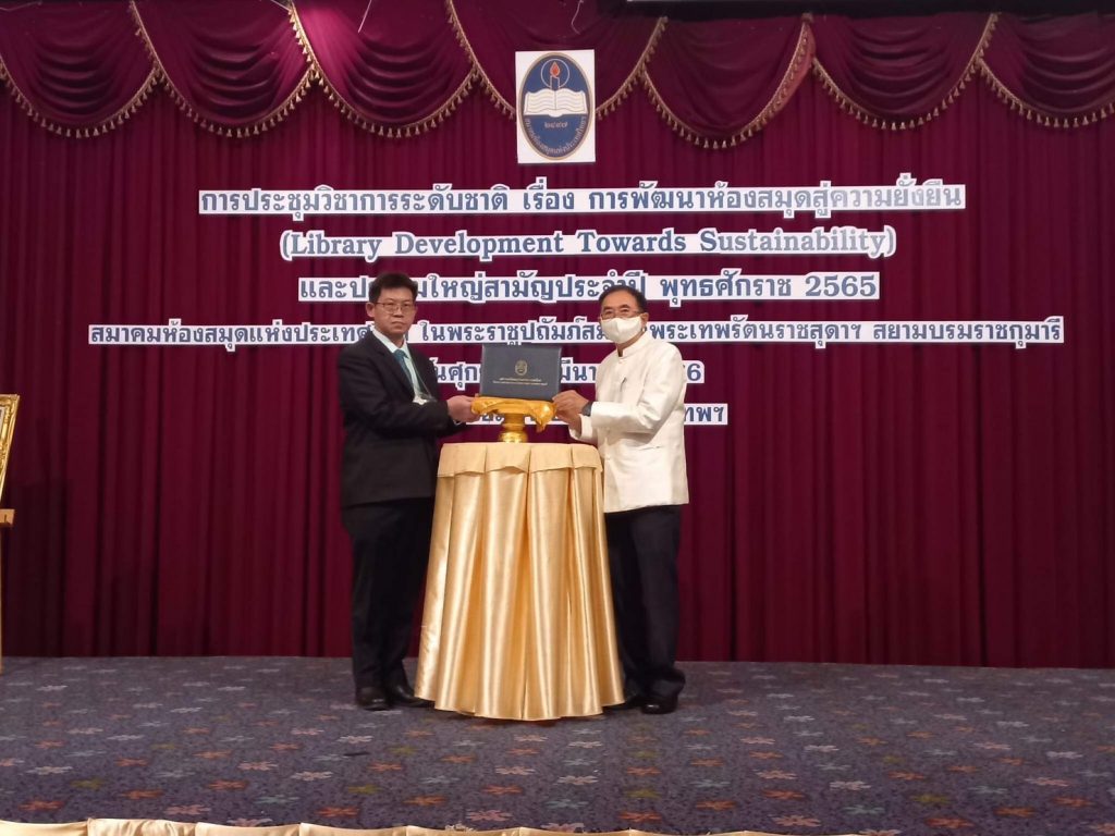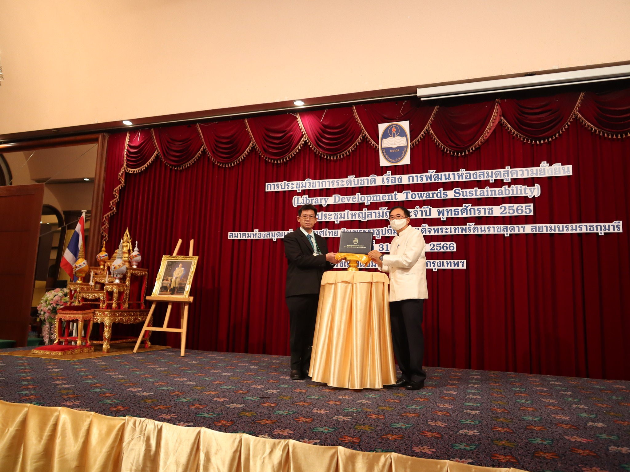 Mr. Hemmarat Wachirahattapong, the Director of BUU Library, participated to recieve Green Library Certificate of the Year 2022 from Mr. Weera Rojpojchanarat, the Former Minister of Culture at the opening ceremony of the National Academic Conference and the 2022 Annual General Meeting of the Library Association of Thailand under the patronage of HRH Princess Maha Chakri Sirindhorn at the Ambassador Hotel, Sukhumvit 11 Road, Bangkok which the library personnel also joined in the event to congratulate for receiving the certificate on 31 March 2023.