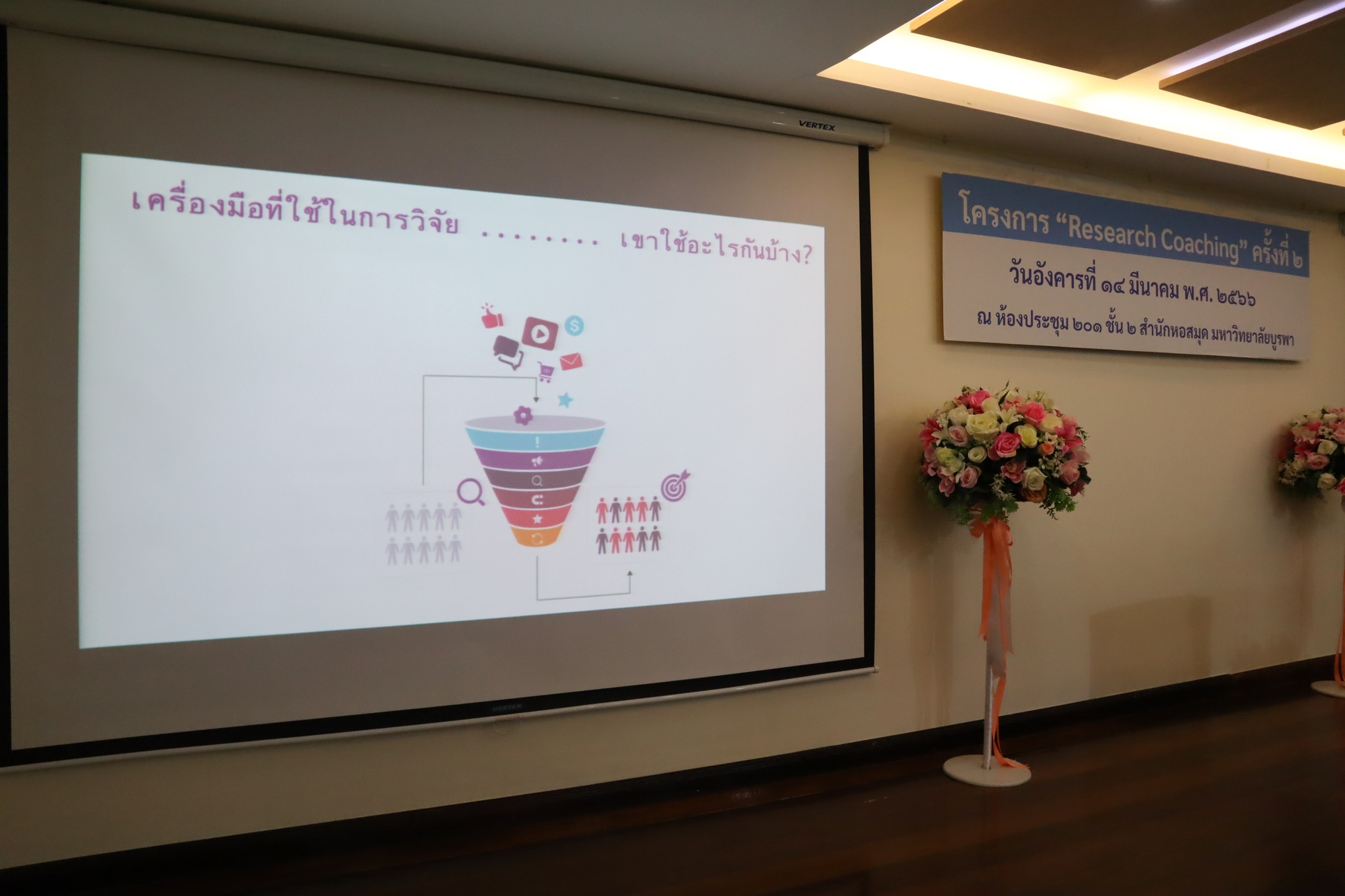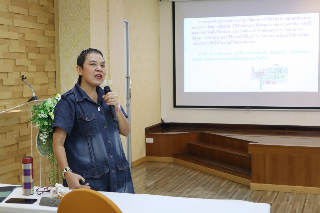 Burapha University Library held the training on the topic of “Research Coaching 2” by the guest speaker, Asst. Prof. Dr. Srihathai Wells, the Head of the Department of Information Studies, Faculty of Humanities and Social Sciences, Burapha University in order to develop the potential of library personnel to become researchers. This project was held on 14 March 2023 from 8:30 a.m. – 12:00 p.m. at the meeting room 201 of the library.