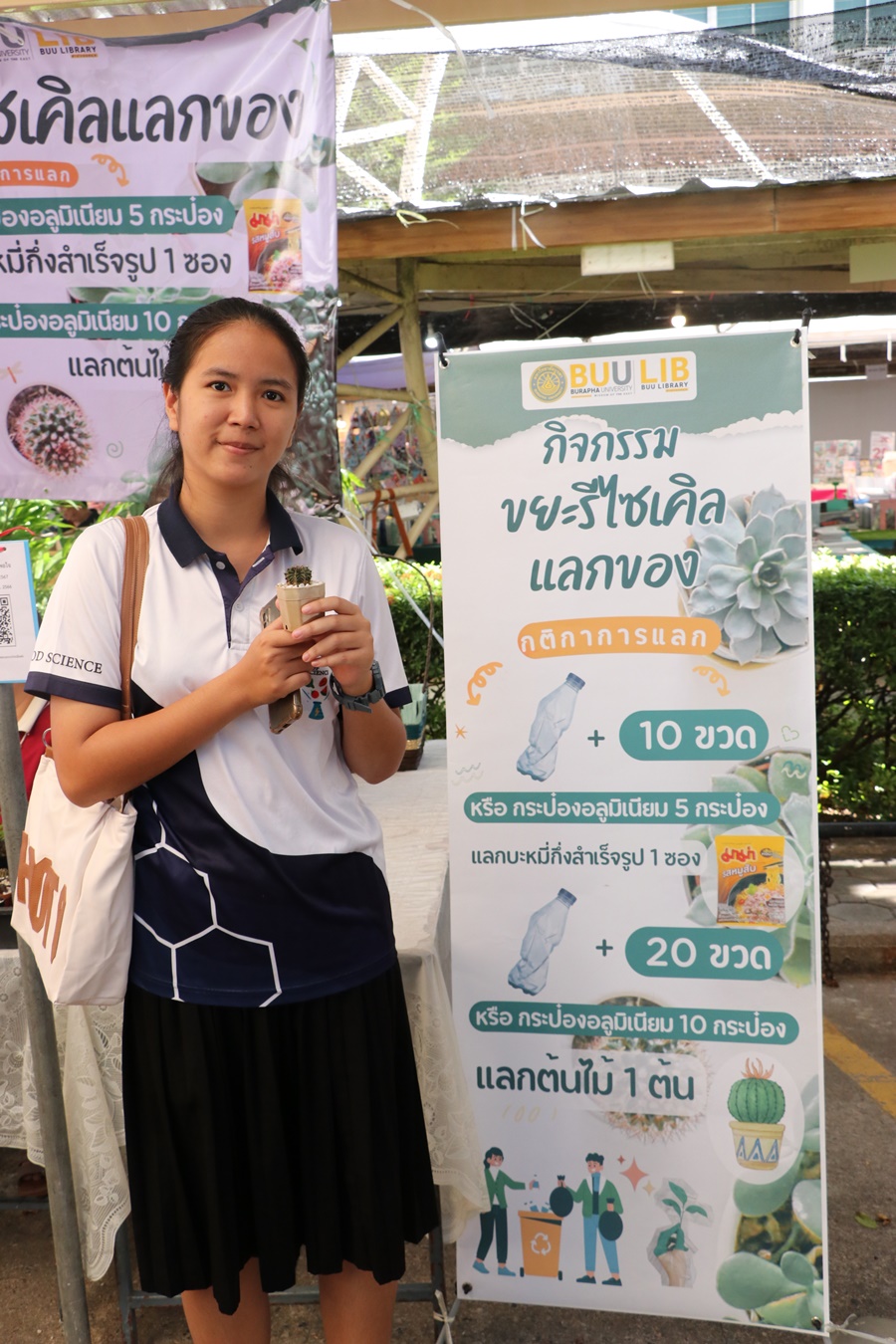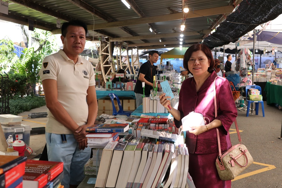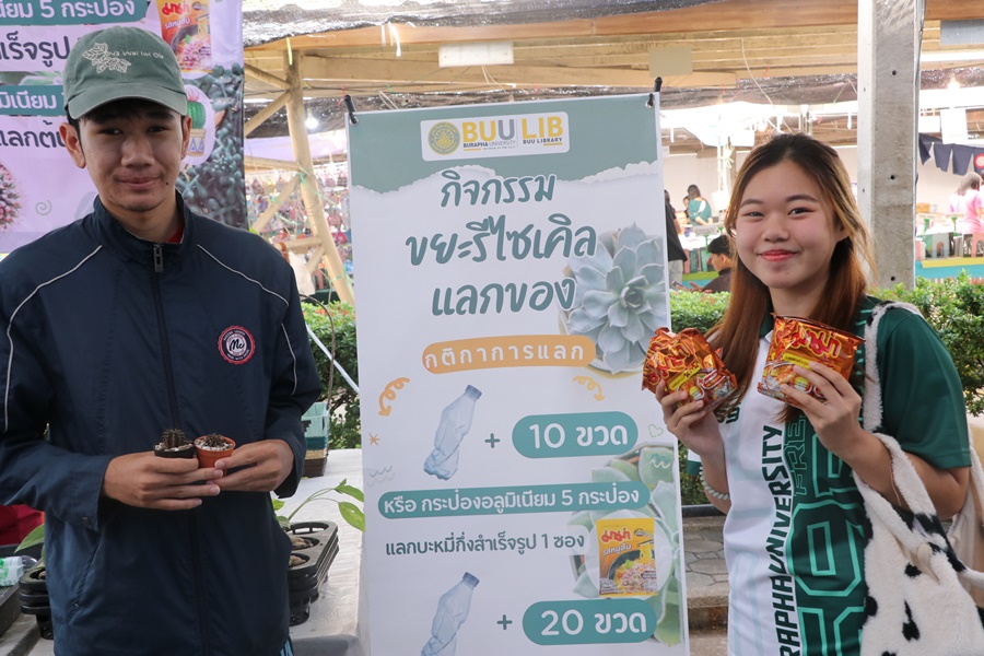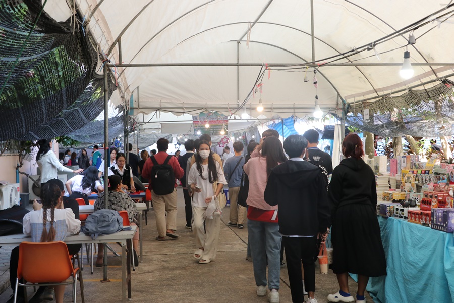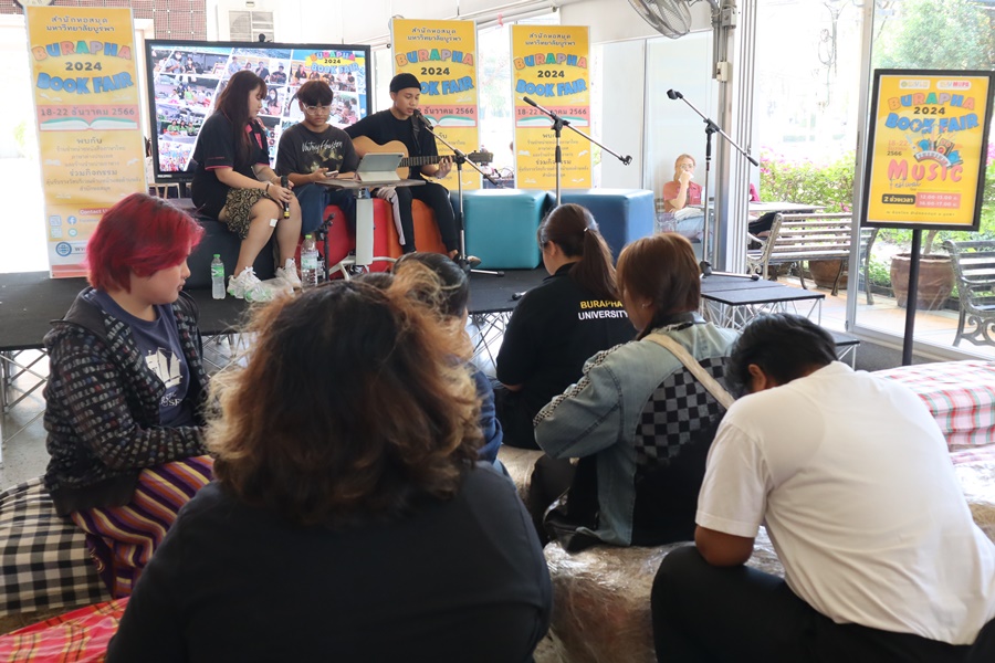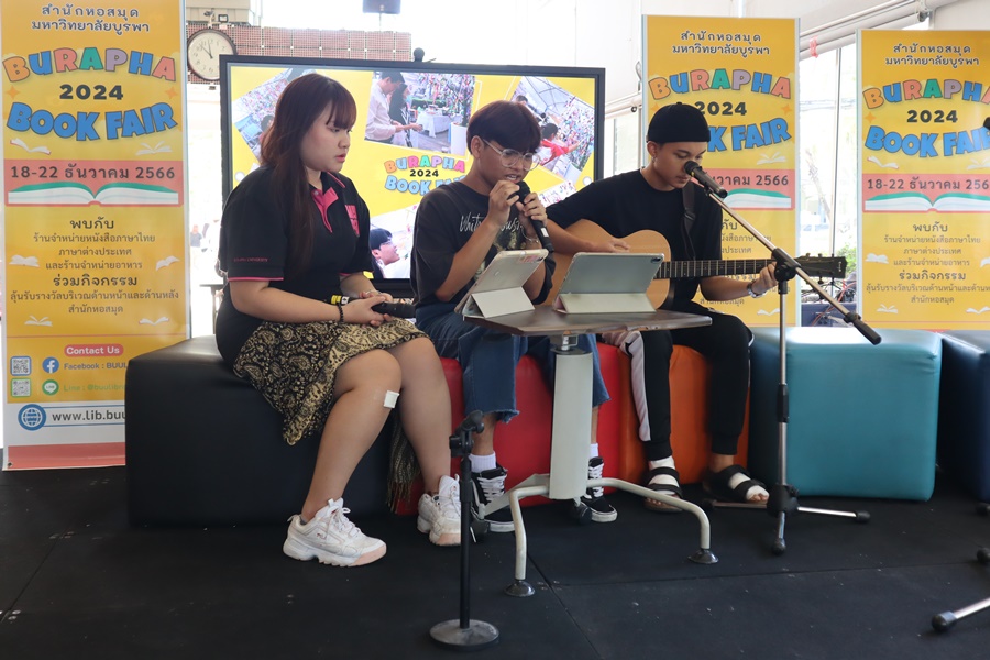 Burapha University Library held Burapha Book Fair for the annual year 2024 which included many bookstores for instructors, staff, students, and general public so that they could buy books at the fair. In addition, there were various activities at the event such as student’s musical performances from Faculty of Music and Performing Art, Phanat Nikhom Joke Guessing Game, recycled waste exchanging activity by bringing the receipt to participate in prize drawing activity and food selling, etc. between 18-21 December 2023 at Burapha University Library.