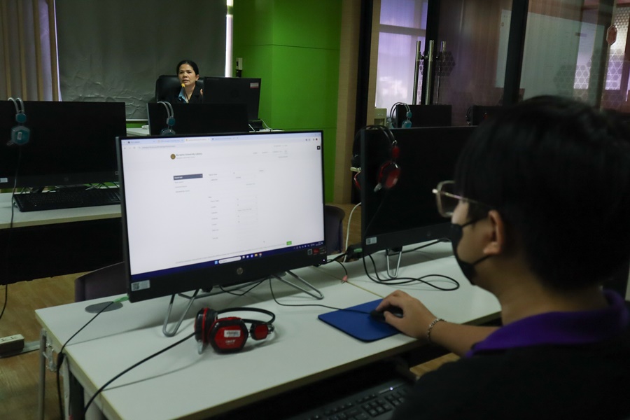 Burapha University Library held the training on using databases to search for relevant research in both Thai and foreign languages for 36 third-year undergraduate students majoring in Industrial Engineering and took over the library’s service areas on 25 December 2023 from 9:00 a.m. – 12:00 p.m. at Cyber Zone I room on the 6th floor of the library.