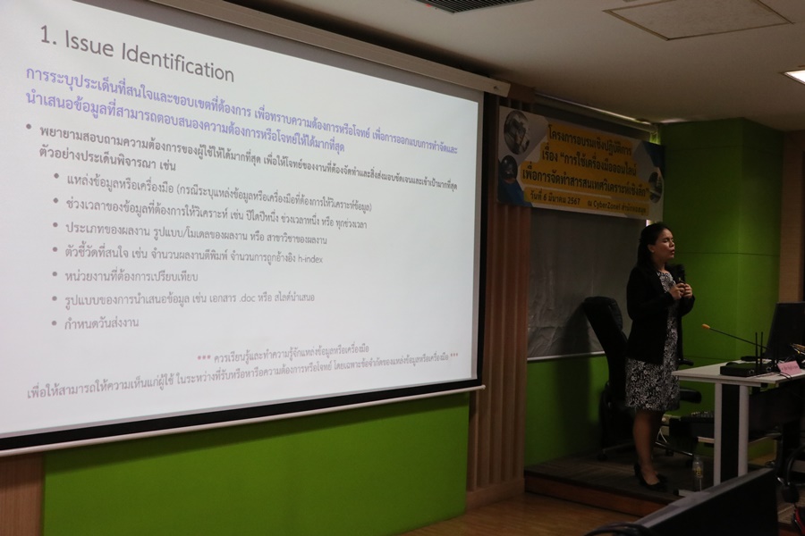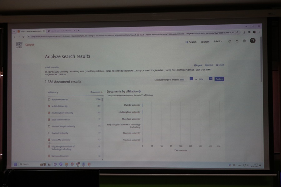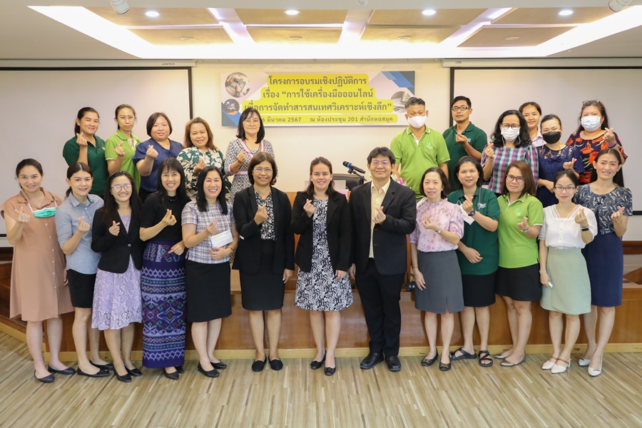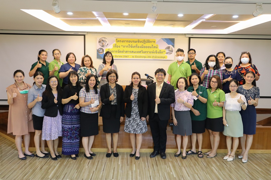 Burapha University Library led by Mr. Hemmarat Wachirahatthapong, the Director of BUU Library opened the speech for the workshop project on “Using Online Tools for Creating In-depth Information Analysis” to develop the information analysis skill of library staff to be able to analyze information systematically and efficiently.