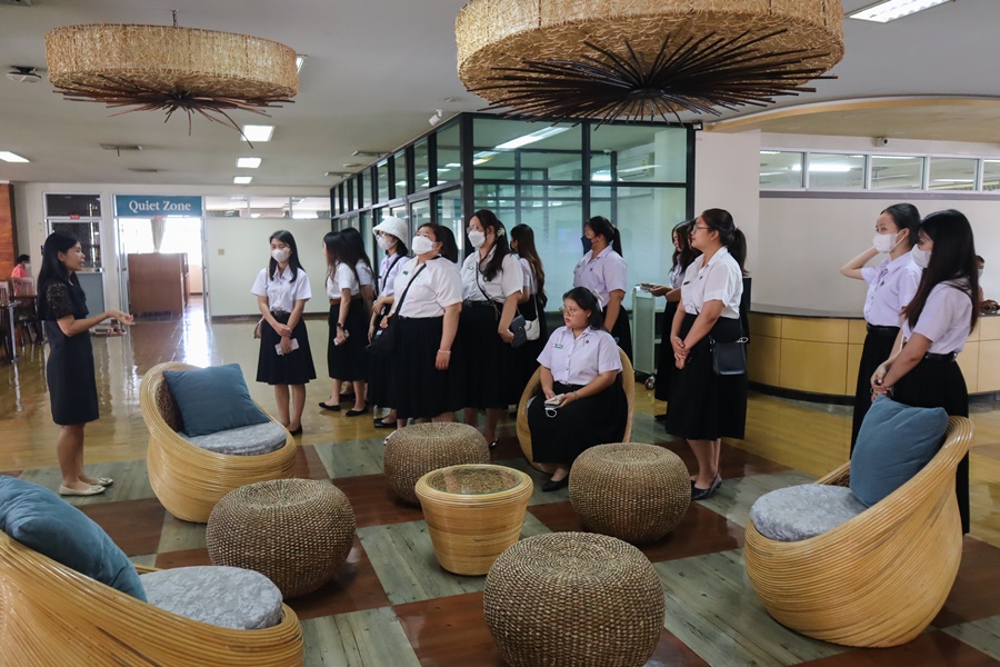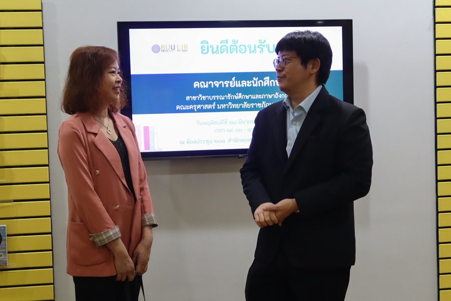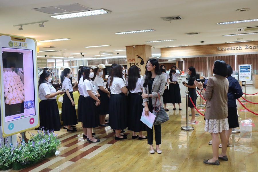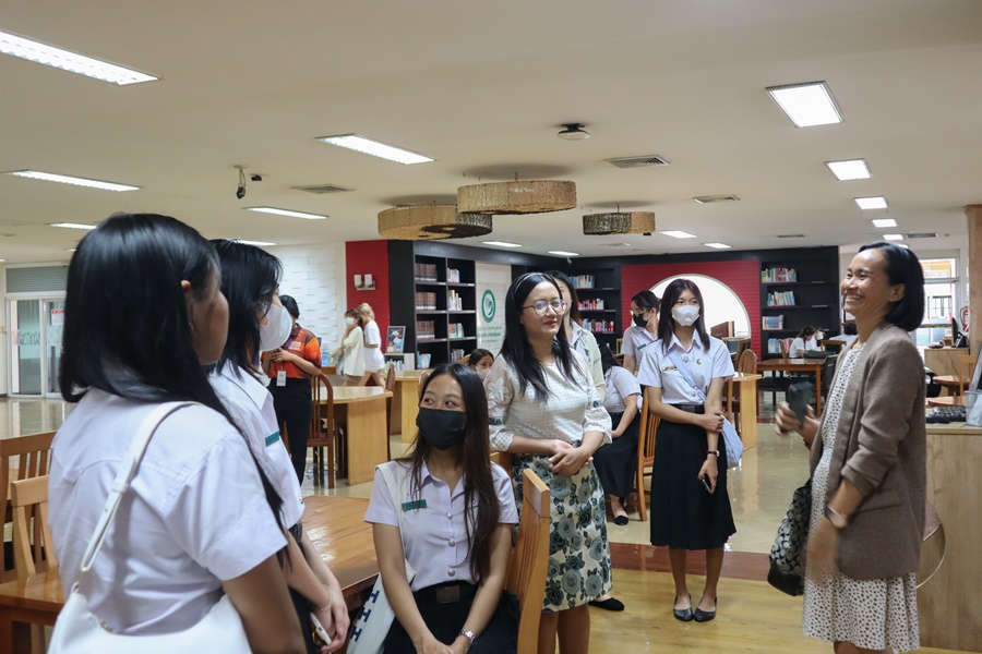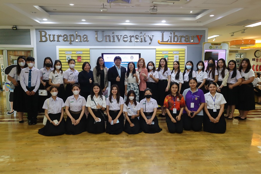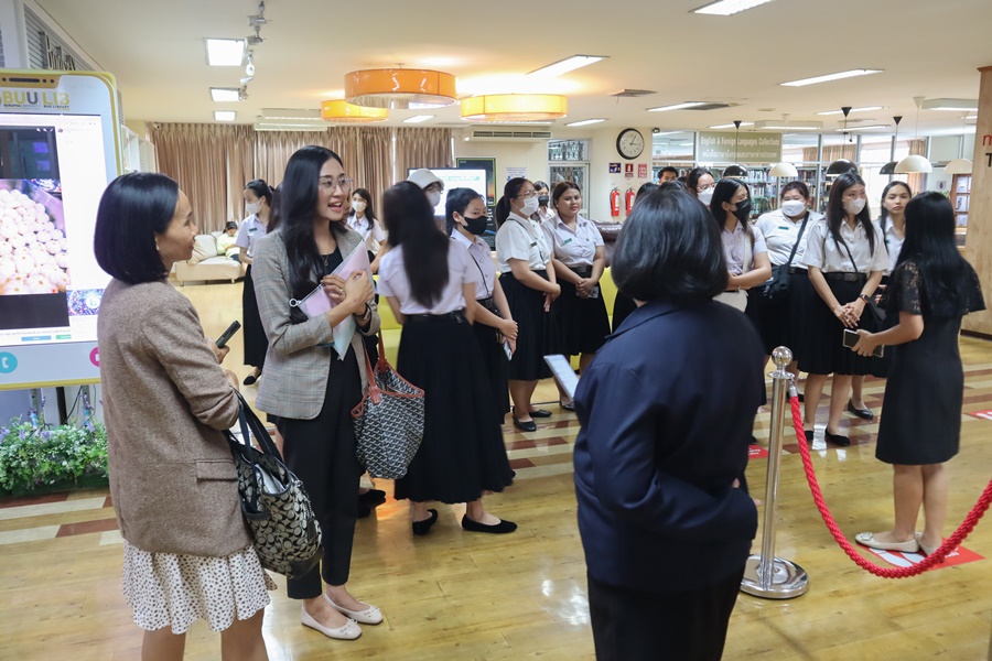 Burapha University Library, led by Mr. Hemmarat Vachirahattapong, the Director of the Library, welcomed 48 faculty members and students from the Faculty of Education, Library Studies and English, from Mahasarakham Rajabhat University. The visit aimed to provide students with direct learning experiences from their study visit, integrating these experiences into their coursework, professional training, and learner-centered education. The Deputy Director for Service Quality Enhancement, librarians, and information officer also participated in welcoming the visitors and guided them through the library on 28 March 2024 from 14:00 to 16:00 P.M.