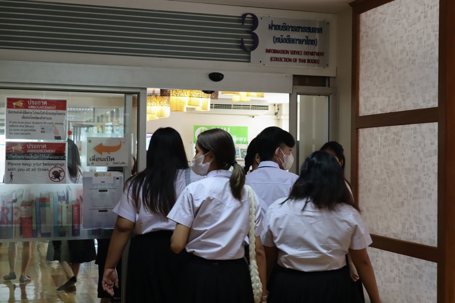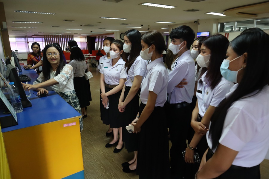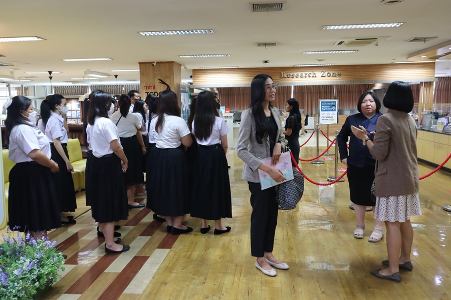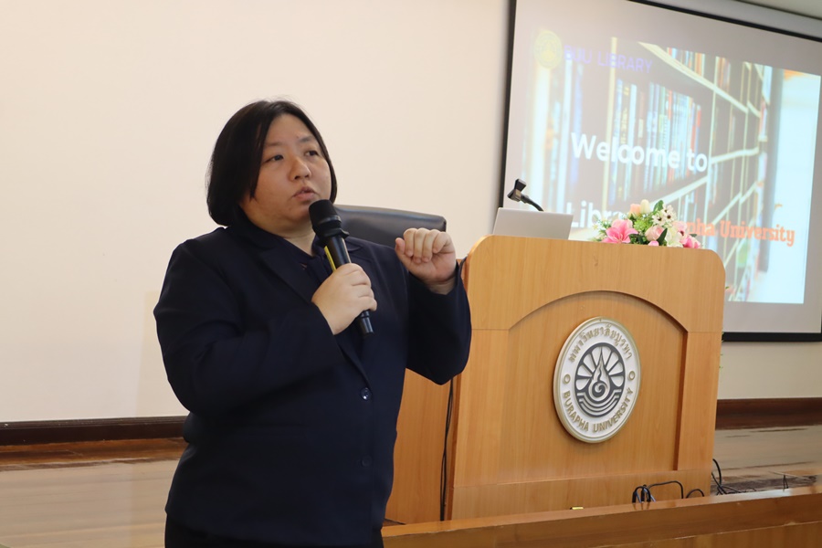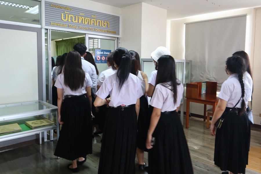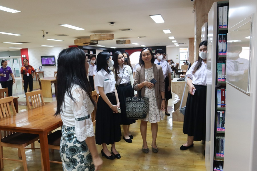 Burapha University Library, led by Mr. Hemmarat Vachirahattapong, the Director of the Library, welcomed 48 faculty members and students from the Faculty of Education, Library Studies and English, from Mahasarakham Rajabhat University. The visit aimed to provide students with direct learning experiences from their study visit, integrating these experiences into their coursework, professional training, and learner-centered education. The Deputy Director for Service Quality Enhancement, librarians, and information officer also participated in welcoming the visitors and guided them through the library on 28 March 2024 from 14:00 to 16:00 P.M.