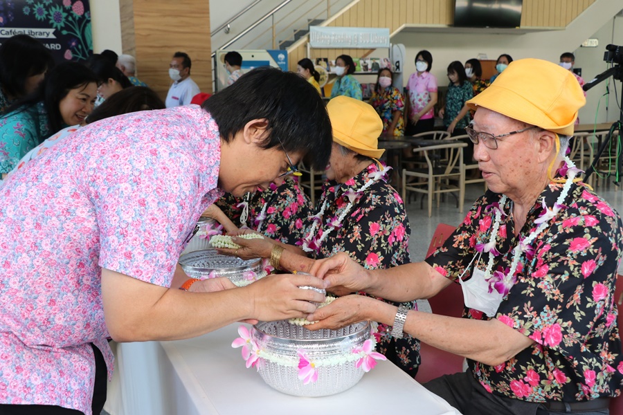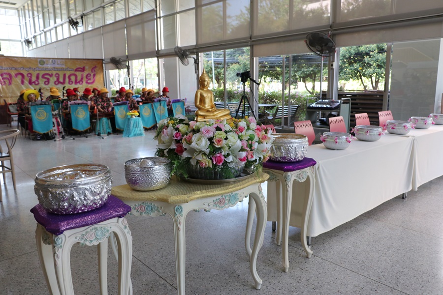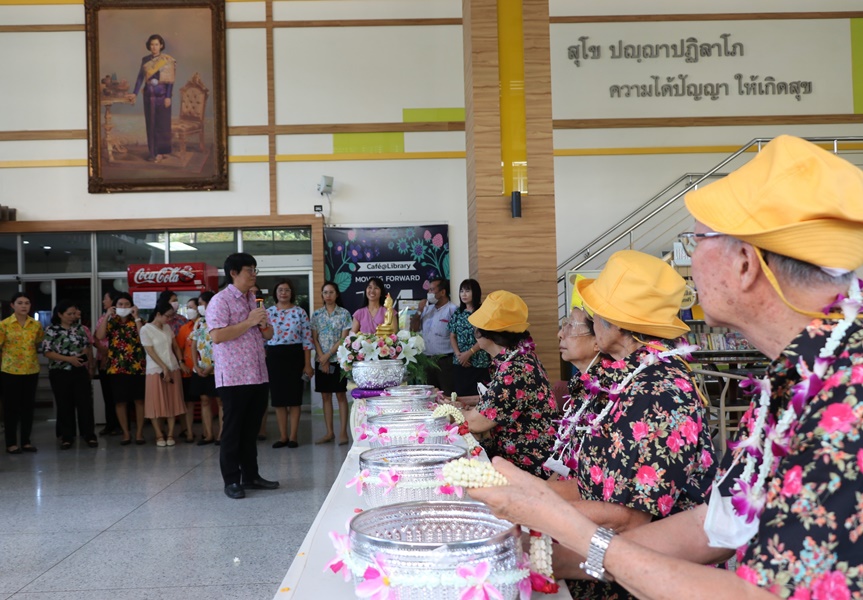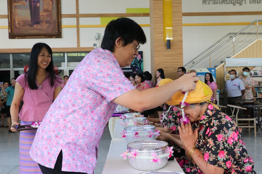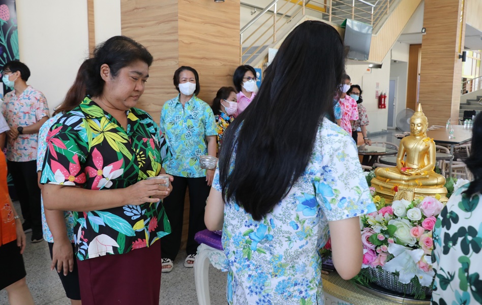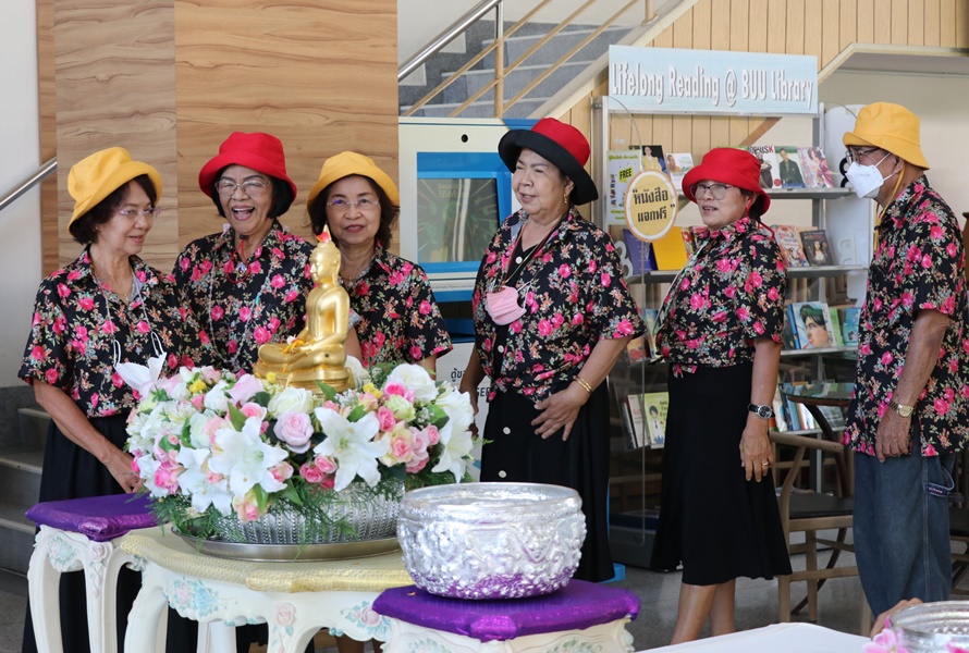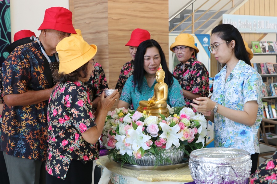 Burapha University Library held the “Joyful Celebration to Preserve Songkran Tradition” Activity. Participants dressed in traditional Thai clothing, performed a water-pouring ceremony for Buddha images, and poured water over the hands of elders. Representatives from Chonburi Retired Civil Servants Club also attended, performing Thai music to bless the attendees. The activity took place on 24 April 2024 at the common learning hall on the 1st floor of the library.