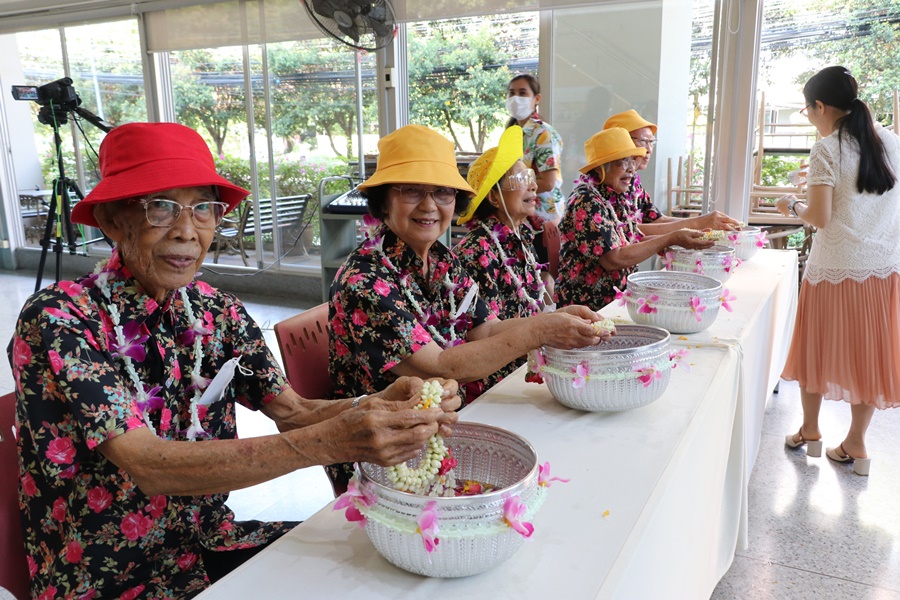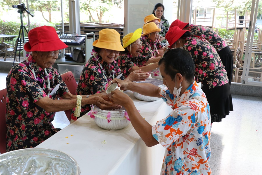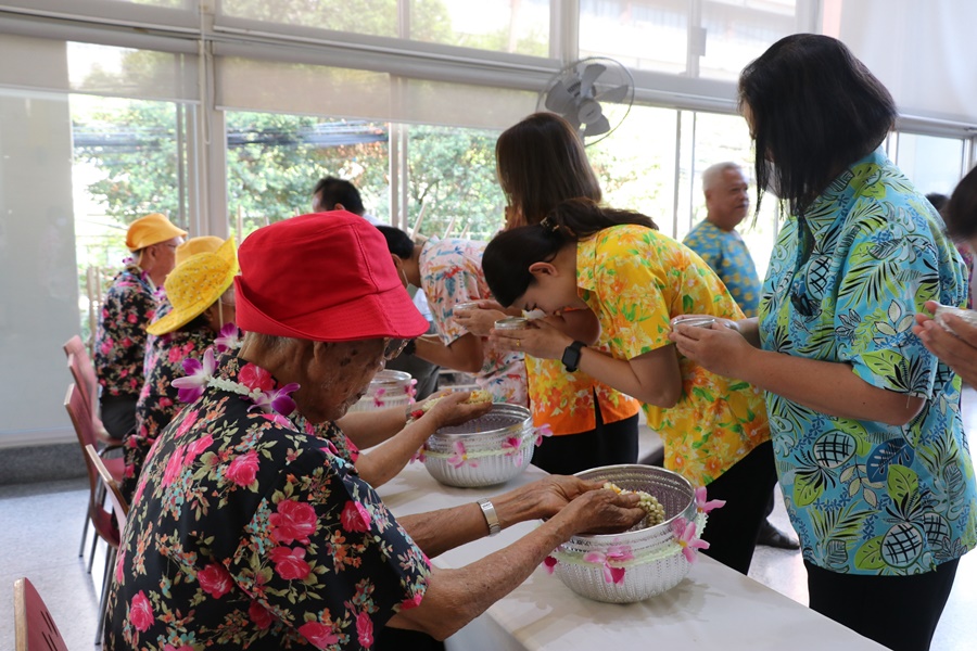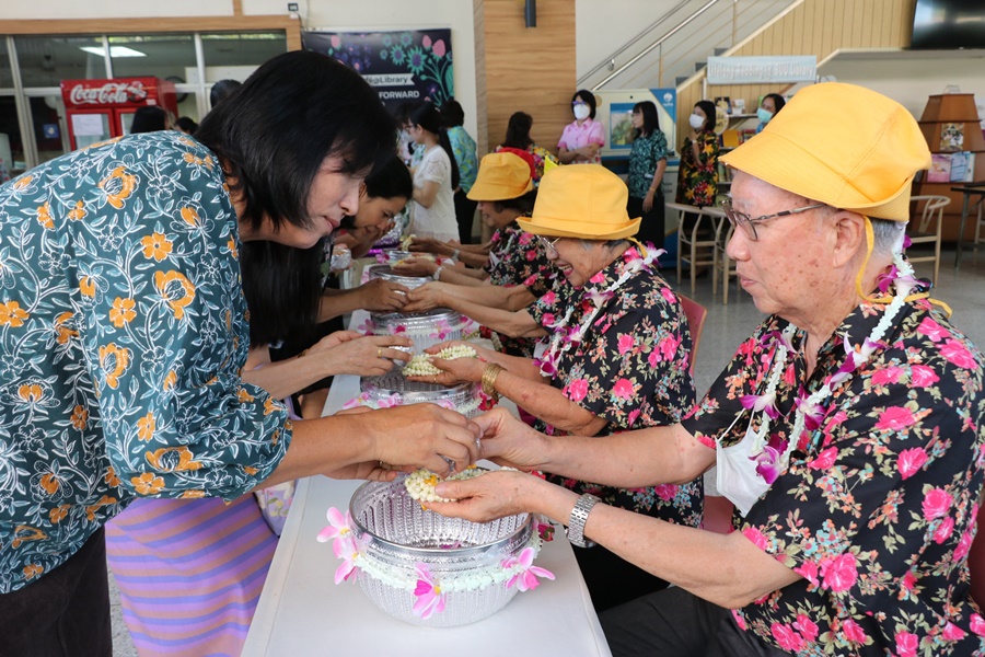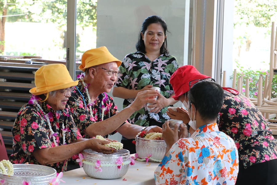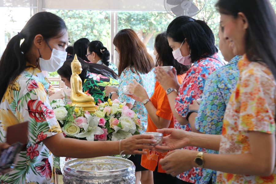 Burapha University Library held the “Joyful Celebration to Preserve Songkran Tradition” Activity. Participants dressed in traditional Thai clothing, performed a water-pouring ceremony for Buddha images, and poured water over the hands of elders. Representatives from Chonburi Retired Civil Servants Club also attended, performing Thai music to bless the attendees. The activity took place on 24 April 2024 at the common learning hall on the 1st floor of the library.