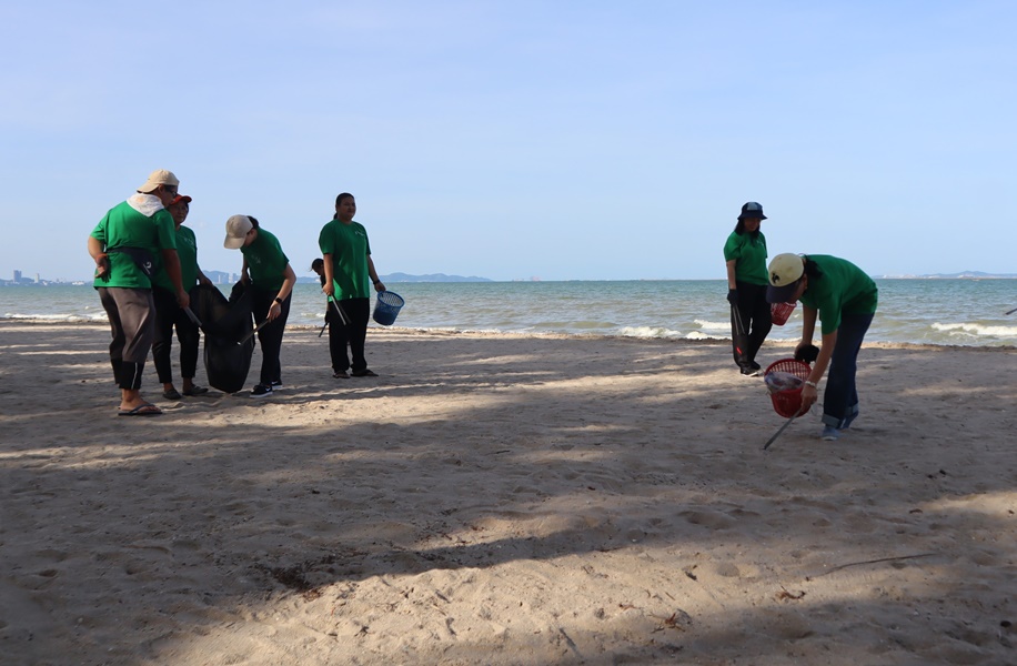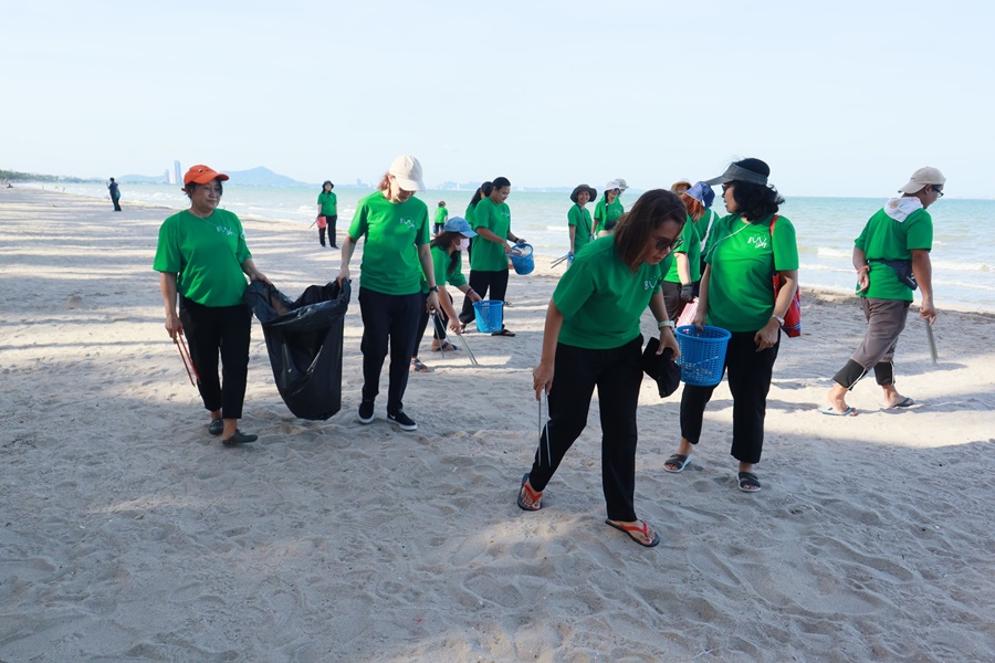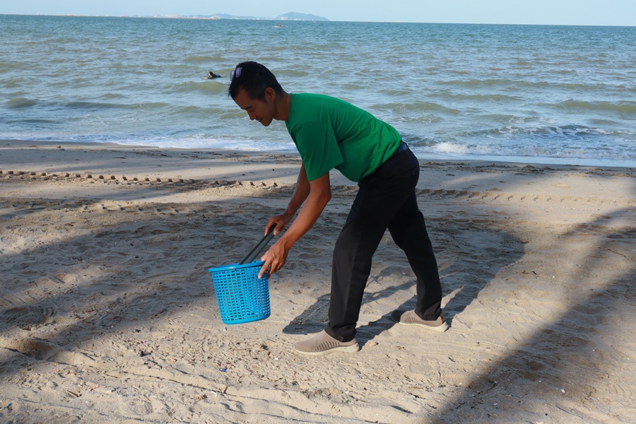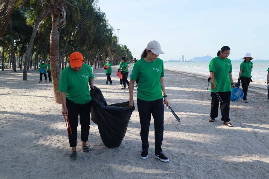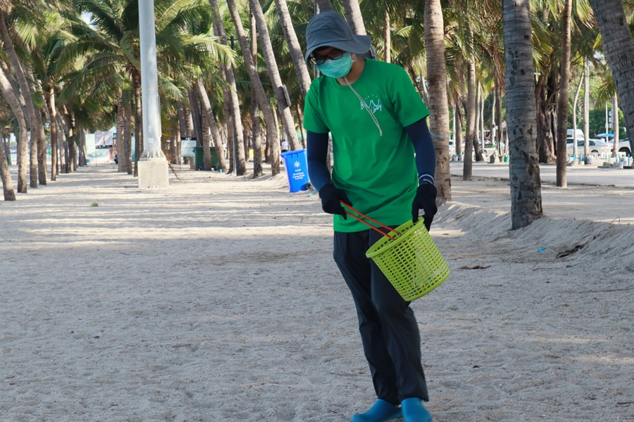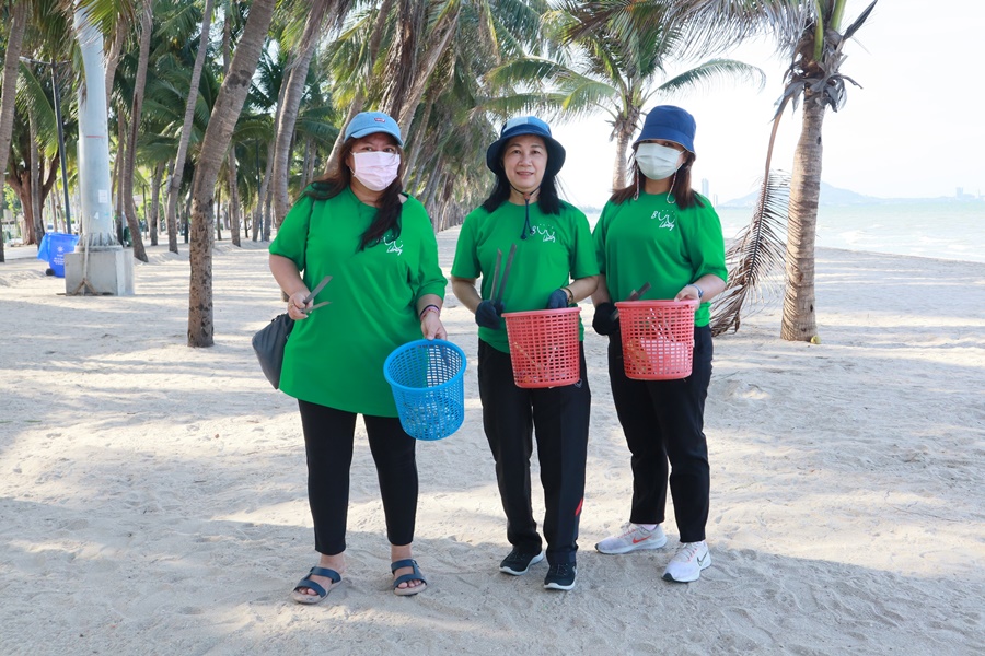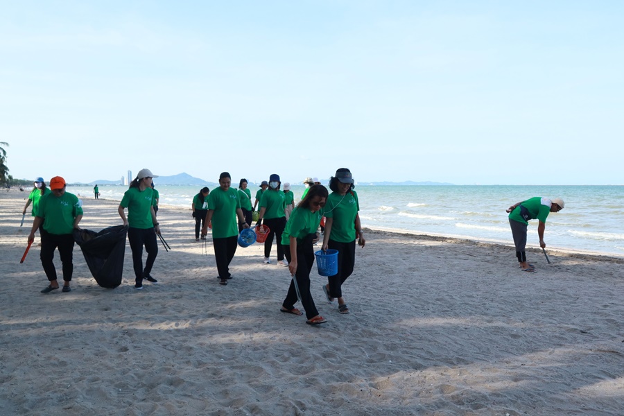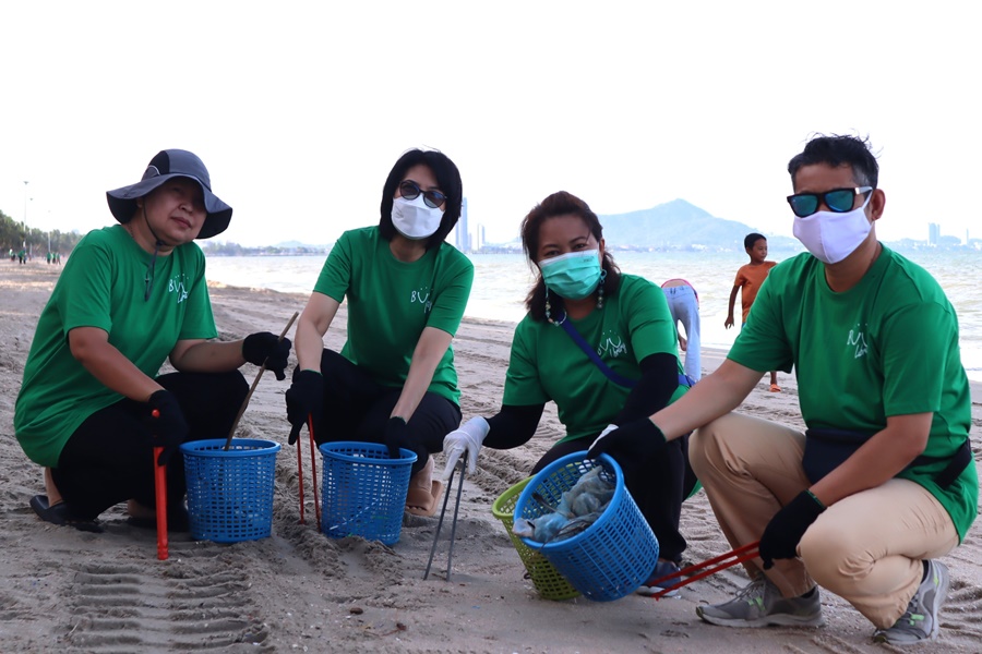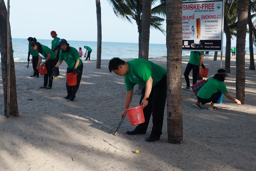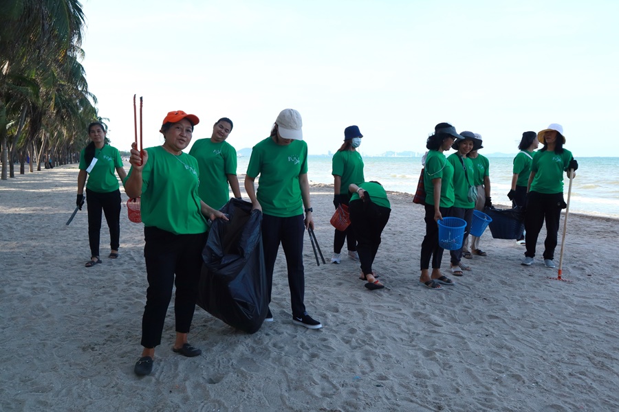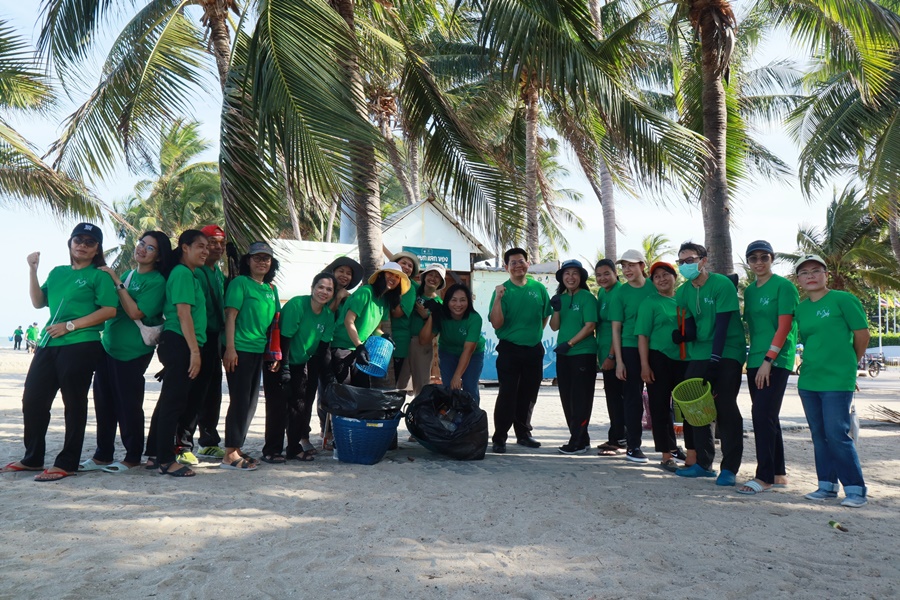 BUU Library Staff Participated in Beach Cleanup at Bangsaen Beach under "Love the Sea, Love Bangsaen" Activity