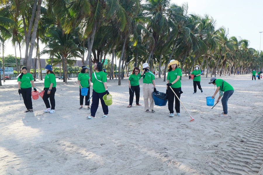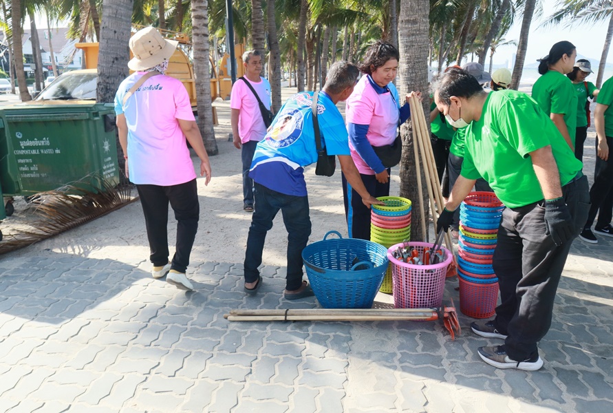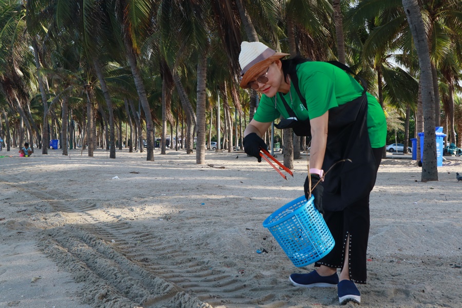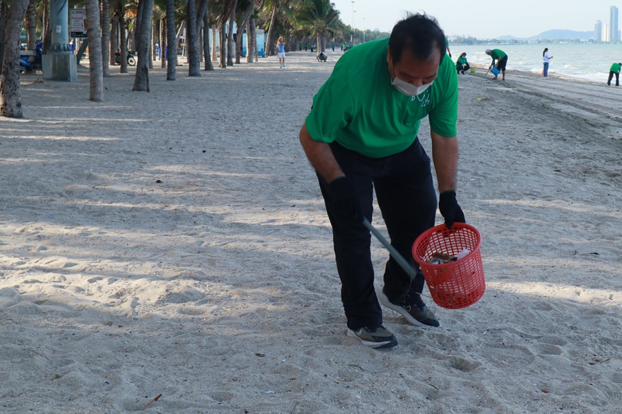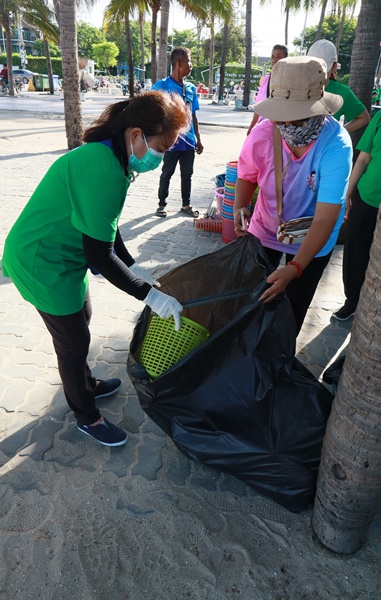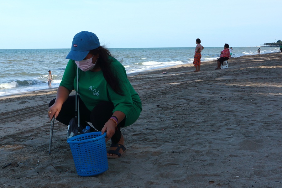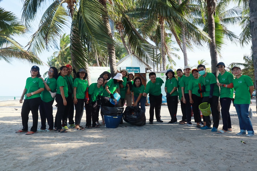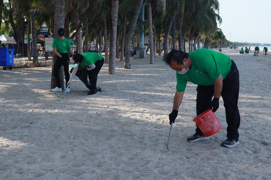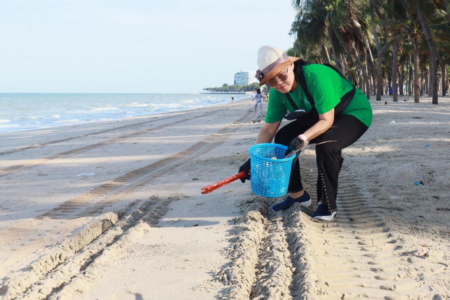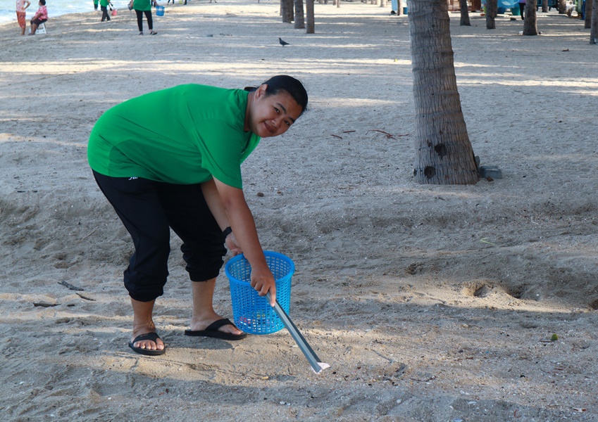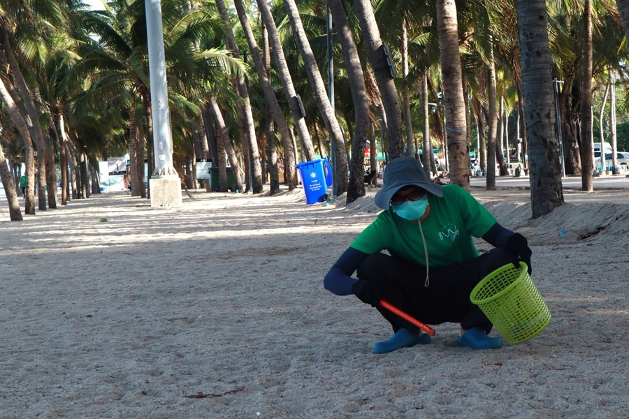 BUU Library Staff Participated in Beach Cleanup at Bangsaen Beach under "Love the Sea, Love Bangsaen" Activity