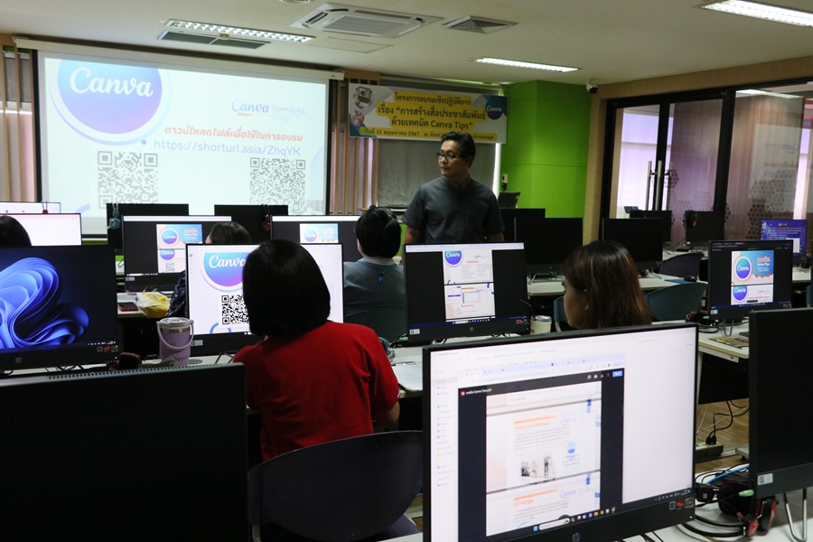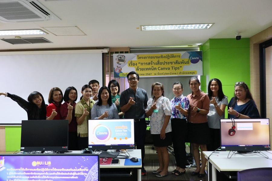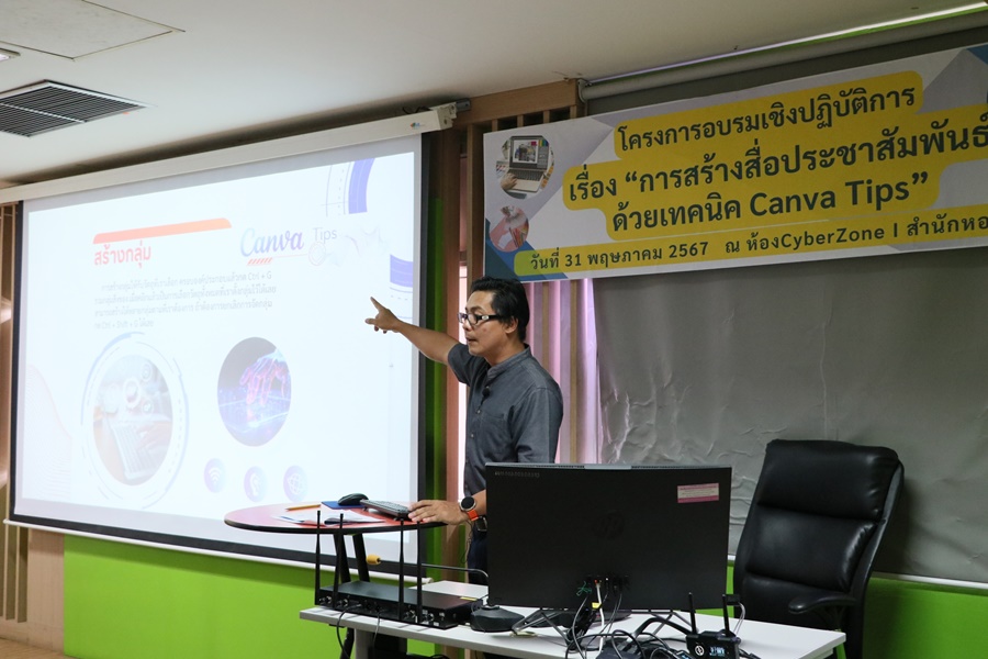 Burapha University Library, led by Mr. Hemmarat Wachirahatthapong, the Director of the library inaugurated a workshop, “Creating Promotional Media Using Canva Tips.” The workshop aimed to equip staff with the knowledge and skills to effectively apply these techniques in their work. The session was conducted by Mr. Jakkrapan Chuenpirom, an audiovisual officer on Friday, 31 May 2024 at Cyber Zone I on the 6th floor of the library.