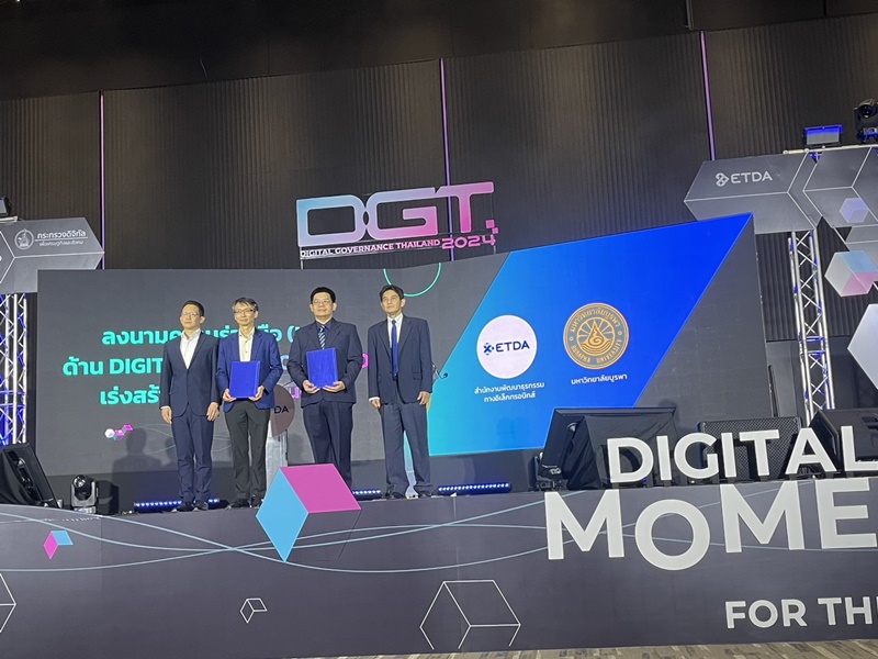 ETDA, represented by Mr. Chaiyanat Mitphan, The Director of ETDA, and Burapha University, represented by Mr. Hemmarat Wachirahatthapong, the Director of the Burapha University Library, signed a Memorandum of Understanding (MOU) on Digital Transformation. The MOU aims to accelerate the development of Thailand’s digital workforce, promoting and supporting electronic transactions in the eastern region, and fostering digital talents who will play a crucial role in driving Thailand’s digital society and economy. The signing ceremony took place on 30 May 2024 at Paragon Hall on the 5th Floor.