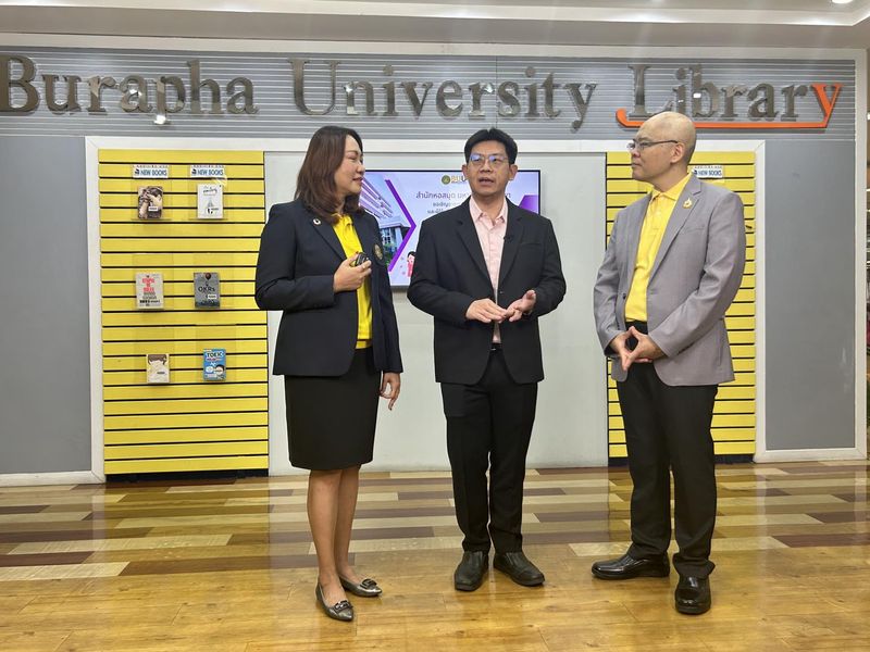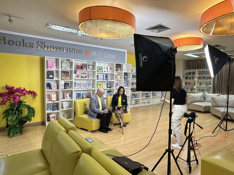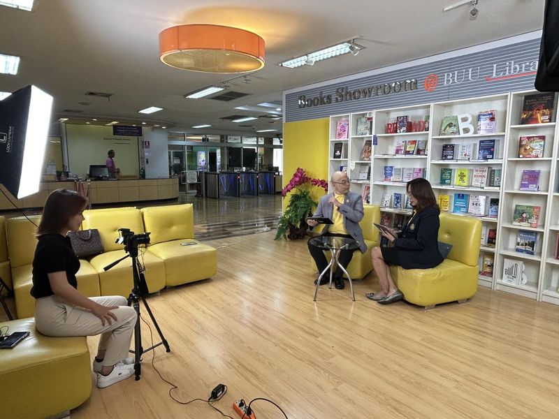 Burapha University Library, represented by the director of the library, participated in the video recording of the summary of the University Council Meeting Resolution No. 10/2024. The recording took place at Books Showroom on the 2nd floor of the library on 22 October 2024.