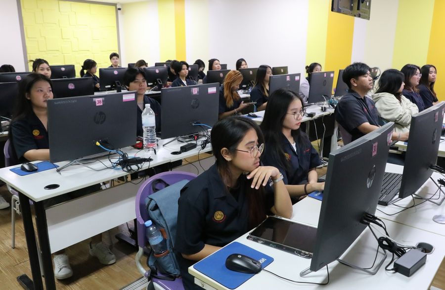 Burapha University Library held an information literacy training session and a tour of various service areas of the library for third-year students from the Faculty of Engineering. The event took place on December 16, 2024, at Cyber Zone I on the 6th floor of the library.