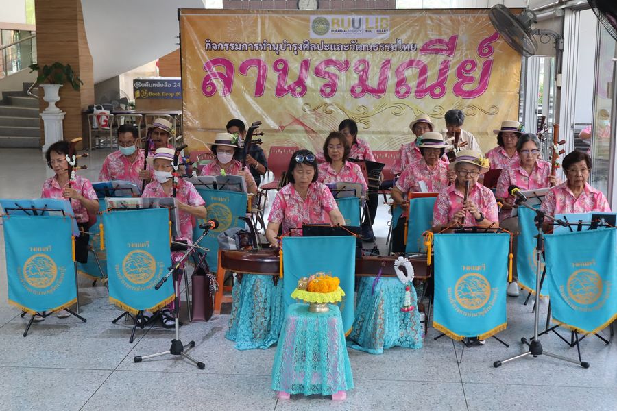 Burapha University Library organized a traditional Thai music performance and vocal recital, as part of the “Larn Rommanee” Thai Arts and Culture Preservation Project (Session 6/2025). The event featured a performance by the Chonburi Provincial Retired Government Officials Club, who shared their knowledge and musical talents. This initiative aims to preserve traditional Thai music, an important part of the nation’s cultural heritage, for future generations.The event took place on 25 March 2025 at the learning common hall on the 1st floor of the library.