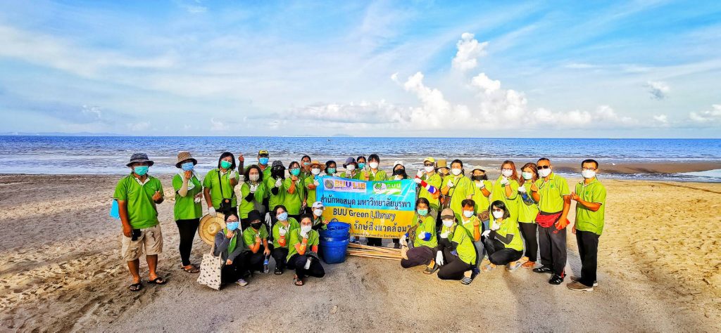 สำนักหอสมุด มหาวิทยาลัยบูรพา จัดโครงการ BUU Green Library “รักษ์ทะเล รักษ์สิ่งแวดล้อม” นำโดยผู้บริหาร และบุคลากรสำนักหอสมุด ร่วมเก็บขยะบริเวณชายหาดและรณรงค์การคัดแยก ขยะ บริเวณศาลเจ้าพ่อแสน จนถึงวงเวียนปลาโลมา ชายหาดบางแสน เพื่อรักษาความสะอาดของชายหาดบางแสนและรักษาสิ่งแวดล้อมชุมชน สร้างการมีส่วนร่วมและจิตสำนึกในการช่วยกันอนุรักษ์ทรัพยากรทางทะเลและชายฝั่ง รวมถึงสร้างความสัมพันธ์อันดีระหว่างสำนักหอสมุดกับชุมชนเมืองแสนสุข เมื่อวันที่ 14 มิถุนายน 2565