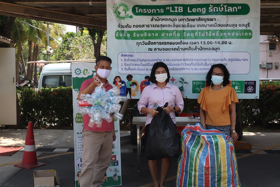 สำนักหอสมุด มหาวิทยาลัยบูรพา ร่วมกับกองสาธารณสุขและสิ่งแวดล้อม เทศบาลเมืองแสนสุข ชลบุรี จัดโครงการ “Lib Leng รักษ์โลก” โดยนำรถมารับซื้อขยะรีไซเคิลประเภทต่าง ๆ รับบริจาคเครื่องใช้ไฟฟ้าเก่า เฟอร์นิเจอร์เก่า วัสดุที่ไม่ใช้แล้ว และรับฝากทิ้งขยะอันตราย ขยะอิเล็กทรอนิกส์ประเภทต่าง ๆ ทุกประเภท โดยจัดกิจกรรมทุกวันอังคารแรกของเดือน เวลา 13.00-14.00 น. ณ ลานจอดรถด้านหลังสำนักหอสมุด