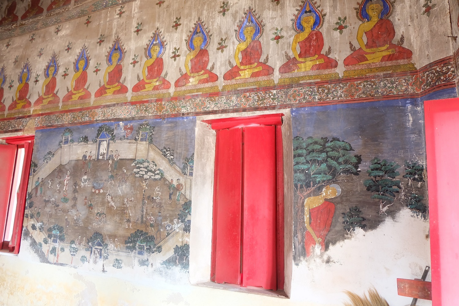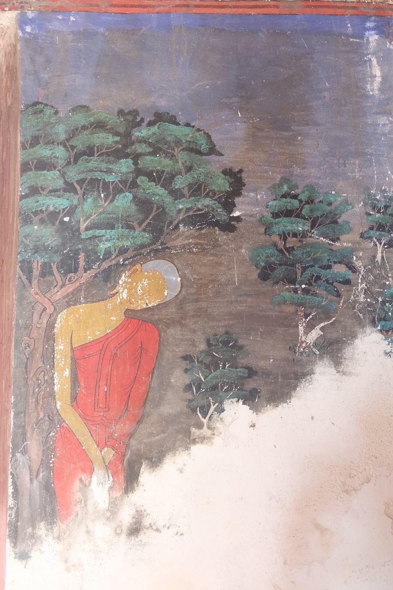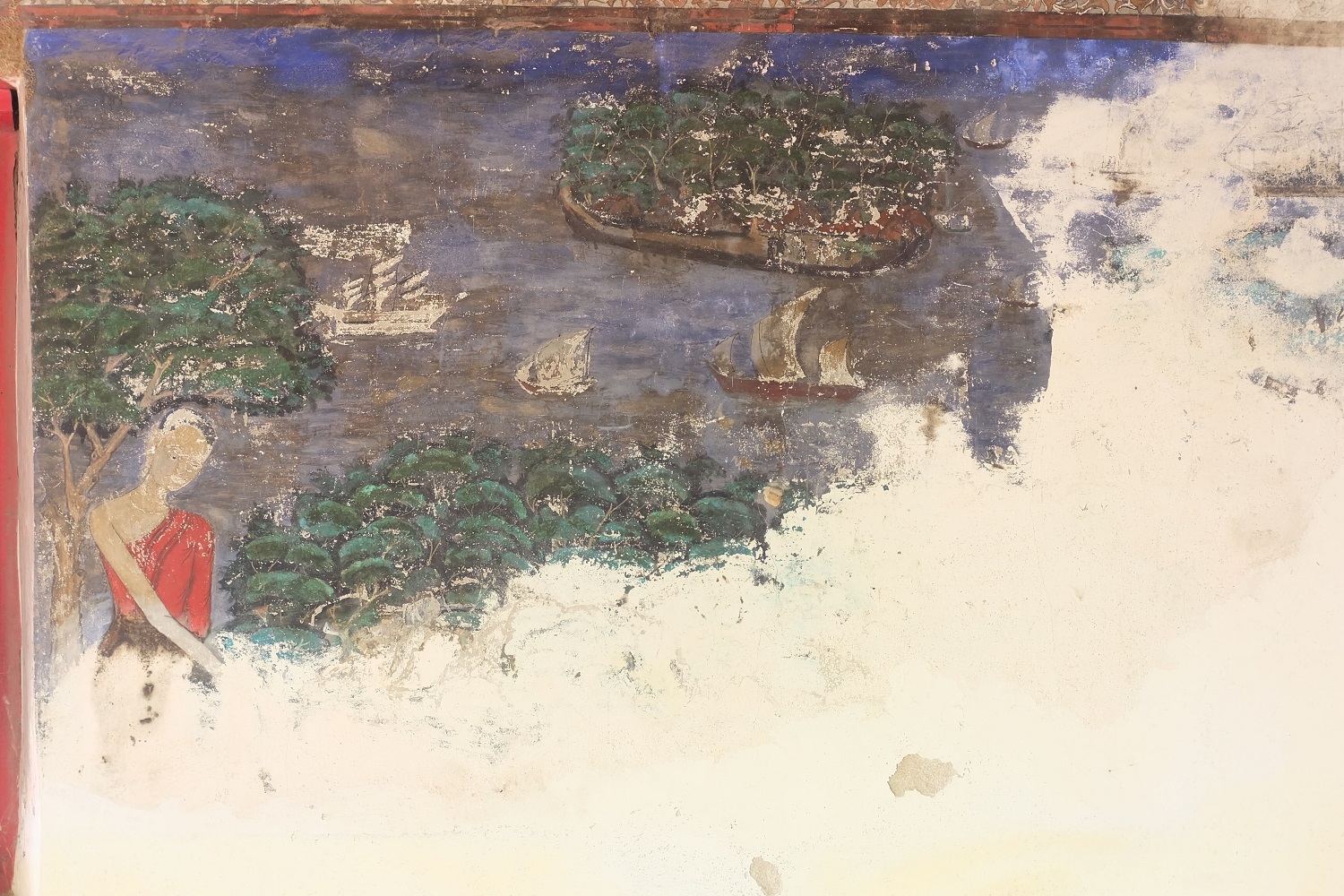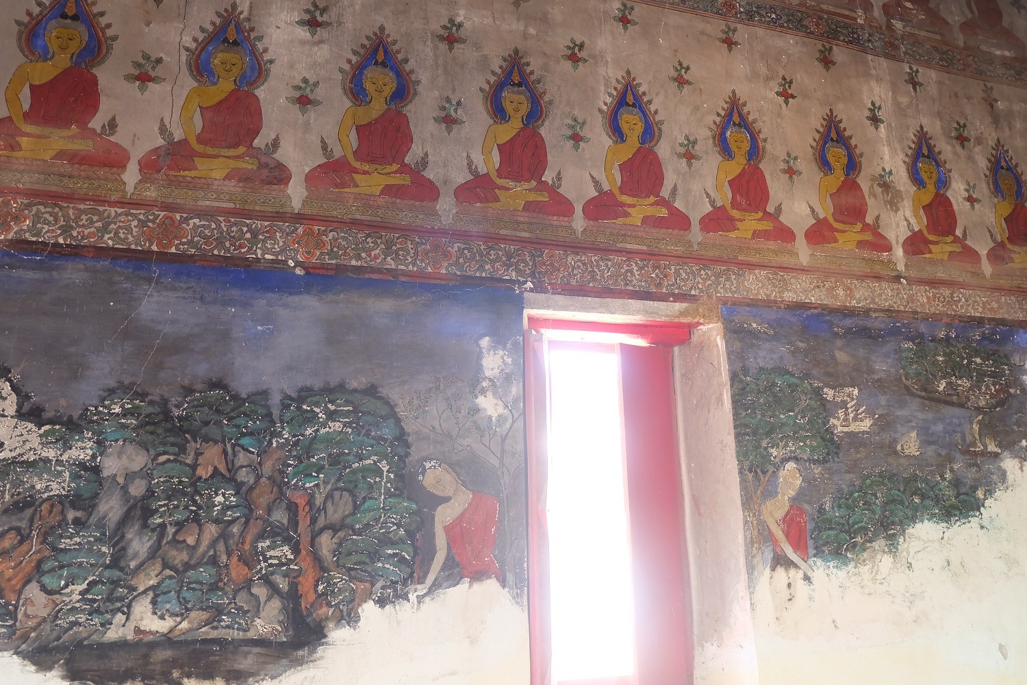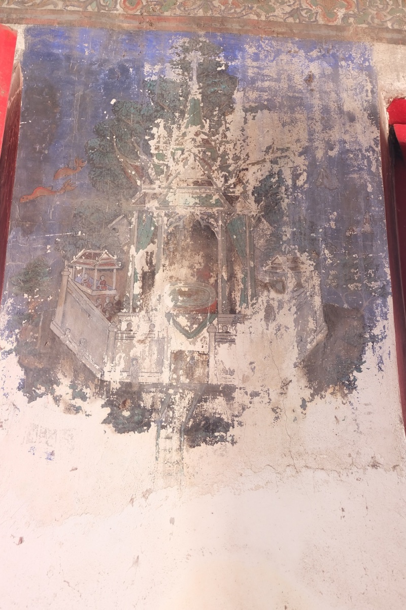 ภายในพระอุโบสถประดิษฐานพระพุทธรูปปูนปั้นลงรักปิดทอง ปางมารวิชัยบนฐานชุกชีก่ออิฐถือปูนเป็นฐานปัทม์สูง ด้านข้างทั้งสองด้านมีพระอัครสาวกปูนปั้น ลงรักปิดทอง ประทับยืนพนมมือ เพดานไม้มีลายดวงดาราปิดทองล่องชาด ที่ผนังพระอุโบสถมีภาพจิตรกรรมฝาผนังทุกด้านลักษณะของภาพแบ่งออกเป็น ๔ แถว ตั้งแต่เหนือกรอบหน้าต่างขึ้นไปจนจรดเพดานเป็นภาพพระอดีตพุทธประทับนั่งขัดสมาธิราบ แสดงปางสมาธิ ต่อเนื่องกันเป็นแถวมีลายดอกไม้ร่วงประดับ จำนวน ๓ แถวซ้อนกัน โดยมีแถบลายประจำยามเถาก้ามขดคั่นในแต่ละแถว ห้องภาพระหว่างช่องหน้าต่างถึงพื้นเป็นภาพอสุภกรรมฐาน พระภิกษุชักผ้าบังสกุล ภาพพระมาลัยและทิวทัศน์ สัตว์ ต้นไม้ โขดหิน และธรรมชาติอย่างอื่นประกอบ จากลักษณะทางศิลปกรรมพระอุโบสถหลังนี้น่าจะสร้างขึ้นในสมัยรัชกาลที่ ๓-๔ แห่งกรุงรัตนโกสินทร์