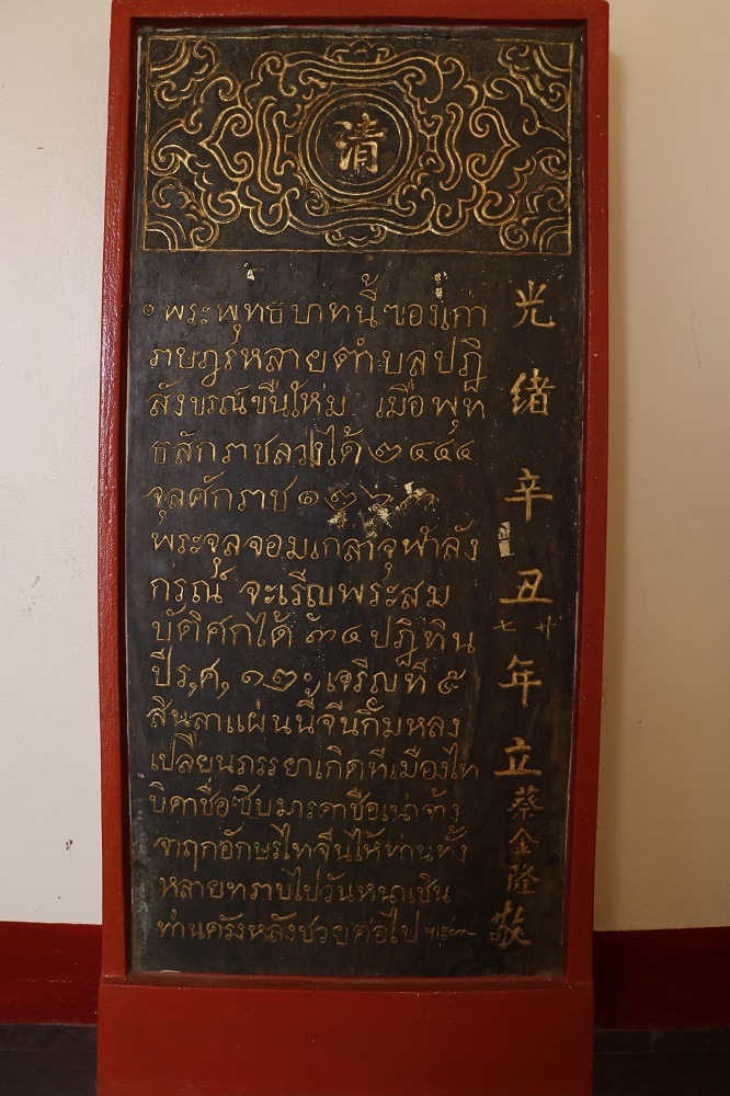 พ.ศ. ๒๔๔๔ ดังปรากฏในศิลาของชาวจีนในสมัยนั้น ซึ่งมีทั้งอักษรไทยโบราณและอักษรจีน ปัจจุบันได้ก่อถือปูนสร้างครอบหลังใหม่