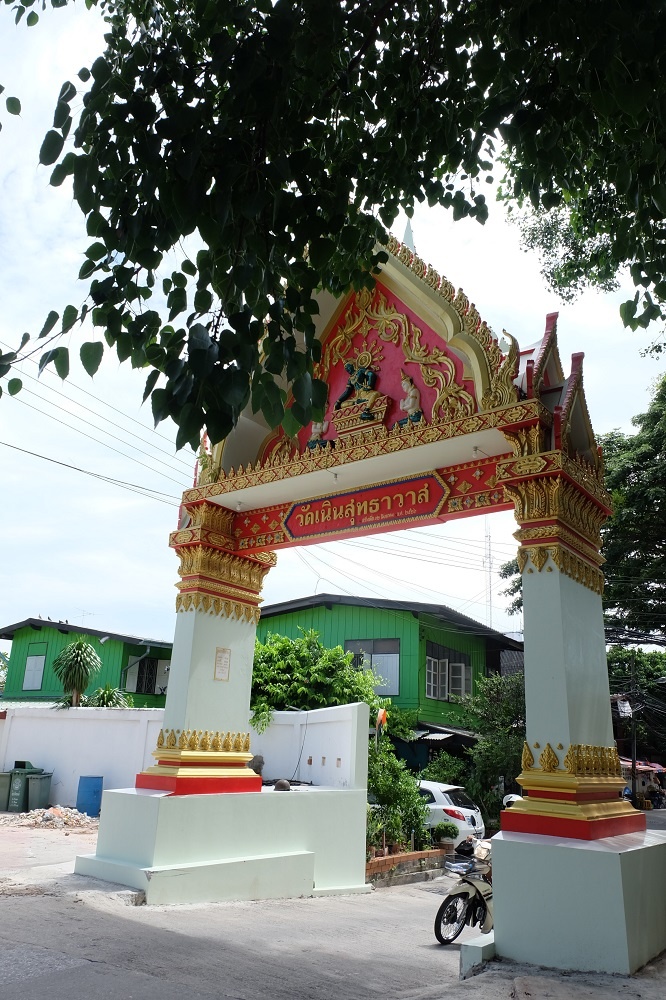 จากการบอกเล่า หลวงพ่อทองได้เดินธุดงค์มาจากอยุธยาในสมัยกรุงศรีอยุธยาตอนปลาย ได้มาเห็นทำเลวัดที่ดีจึงปักกลดและสร้างวัด ณ ที่นี่ และที่เรียกว่าวัดเนินเพราะอยู่บนเนินที่สูงกว่าที่อื่นโดยรอบ วัดนี้เริ่มสร้างเมื่อปลายสมัยกรุงศรีอยุธยา ไม่ปรากฏนามผู้สร้างและวันเดือนปีที่อนุญาตให้สร้างวัด ได้รับพระราชทานวิสุงคามสีมาเมื่อ ๑๐ กุมภาพันธ์ พ.ศ. ๒๔๓๖ ปัจจุบันวัดมีเนื้อที่ทั้งหมด ๑๑ ไร่ มีที่ธรณีสงฆ์ ๔๔ ไร่ ๙ ตารางวา เป็นที่ดินมีโฉนด