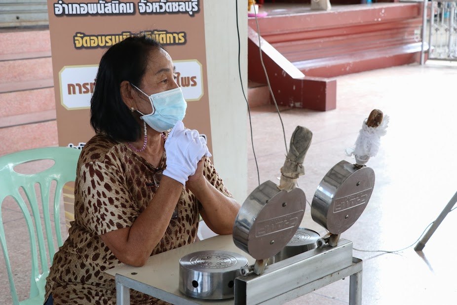 ขนมทองม้วนสมุนไพร ตำบลวัดหลวง อำเภอพนัสนิคม เป็นขนมโบราณที่ หอม กรอบ อร่อยกินเพลิน และมีประโยชน์จากสมุนไพร