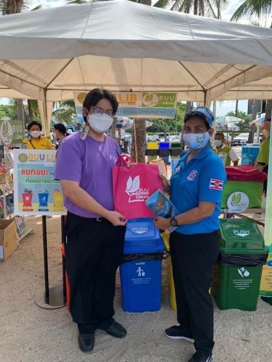 อาจารย์เหมรัศมิ์ วชิรหัตถพงศ์ ผู้อำนวยการสำนักหอสมุด และบุคลากร เข้าร่วมกิจกรรมการเผยแพร่ความรู้ และผลงานเกี่ยวกับการจัดการสิ่งแวดล้อมและทรัพยากรธรรมชาติ เพื่อสร้างความตระหนักรู้และกระตุ้นจิตสำนึกในการร่วมอนุรักษ์ทรัพยากรธรรมชาติ โดยจัดกิจกรรมแนะนำหนังสือและหนังสืออิเล็กทรอนิกส์เกี่ยวกับสิ่งแวดล้อม กิจกรรมขยะแลกต้นไม้ และเกมคัดแยกขยะกันเถอะ ในโครงการ “รักษ์โลก….รักทะเล” ณ ชายหาดบางแสน ซึ่งจัดโดยเทศบาลเมืองแสนสุข และบริษัท บรรจุภัณฑ์เพื่อสิ่งแวดล้อม จำกัด (มหาชน)