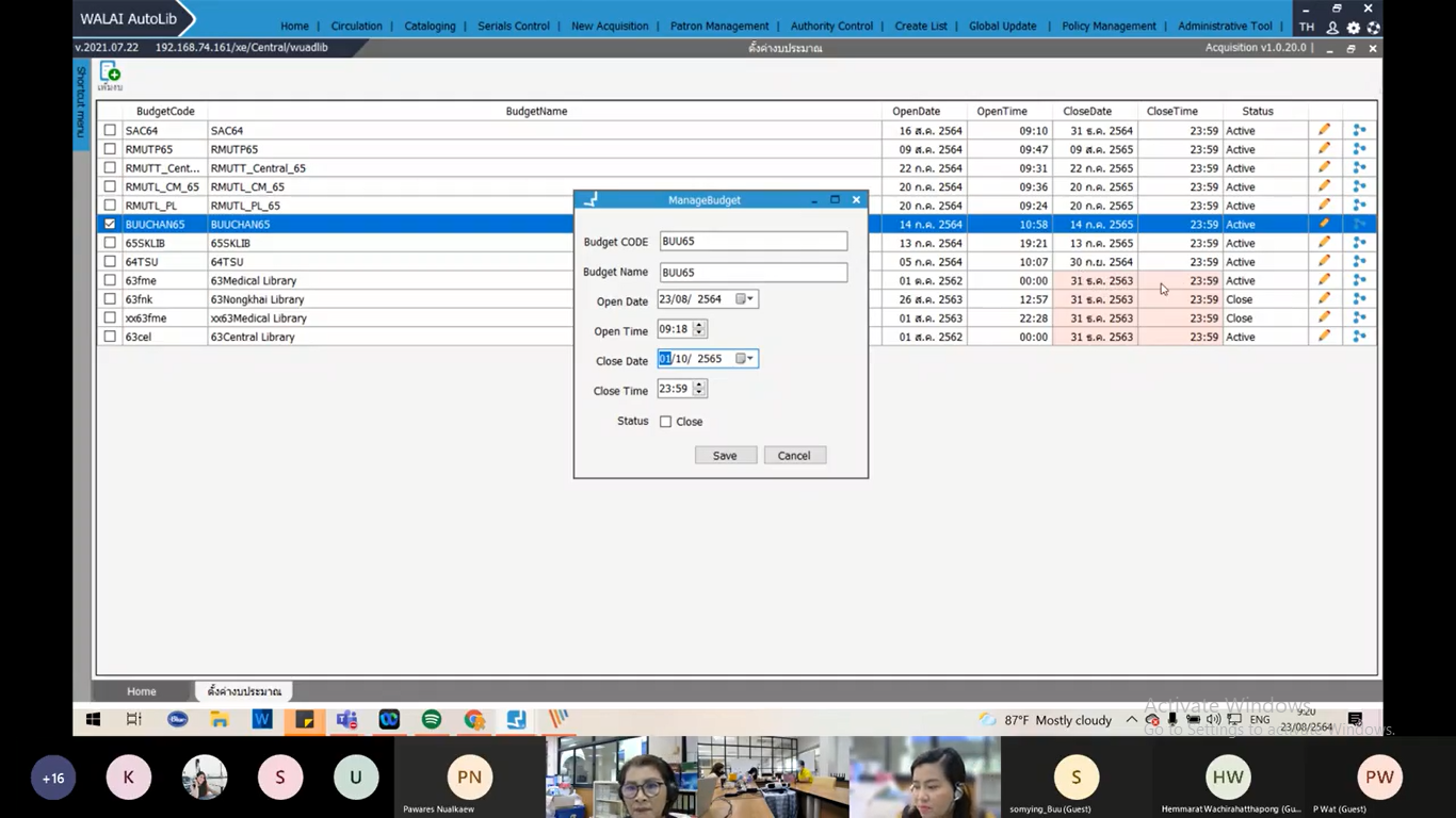 - ตรวจสอบ แนะนำ และแก้ไขการใช้งานระบบ ทุกส่วนงานในระบบห้องสมุดอัตโนมัติ WALAI AutoLib Ultimate