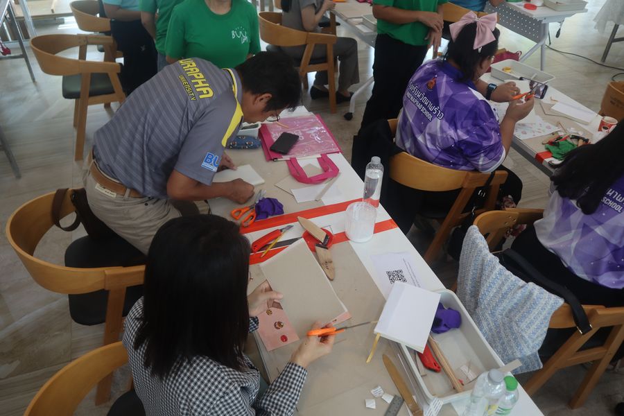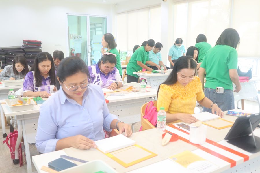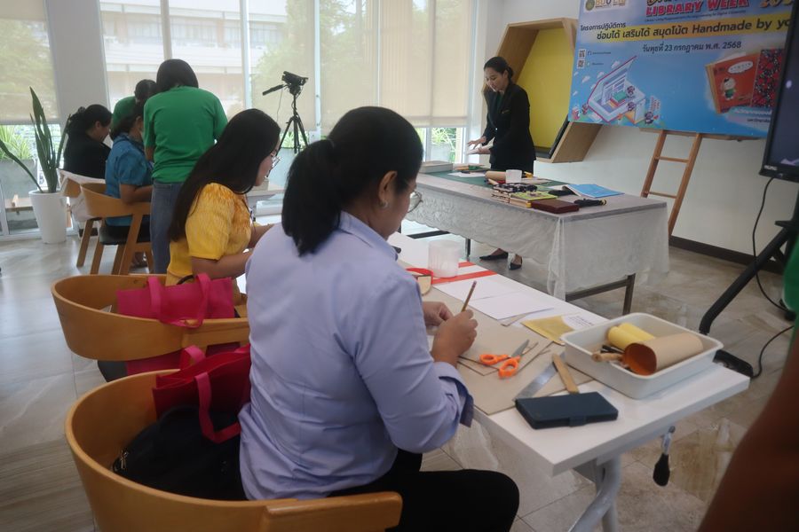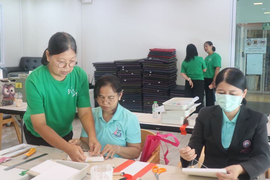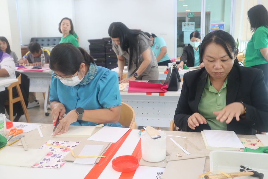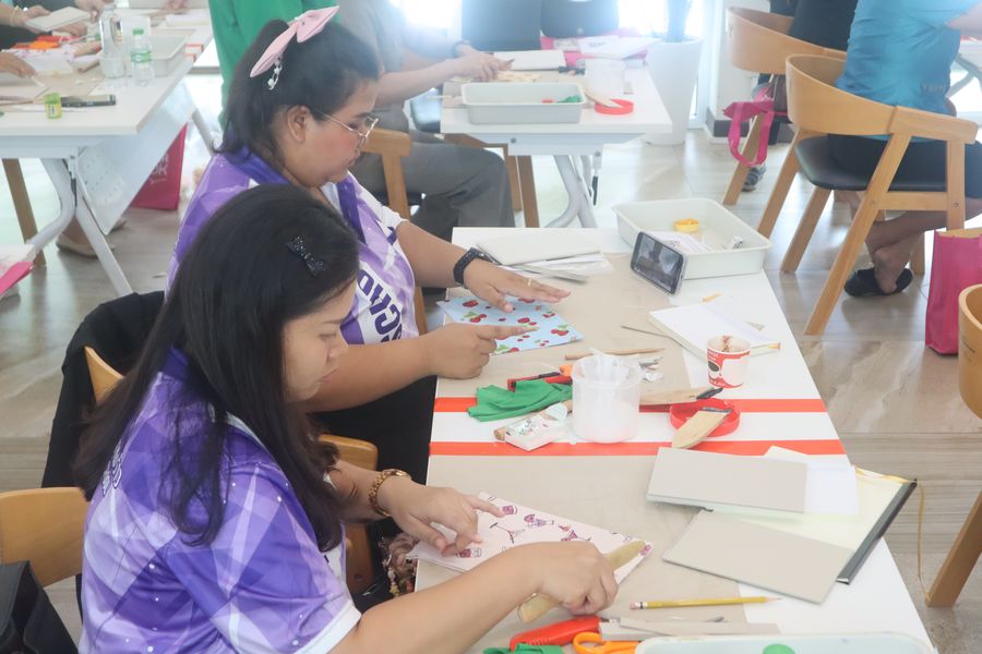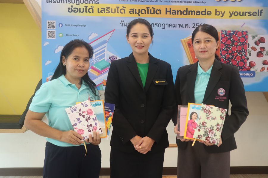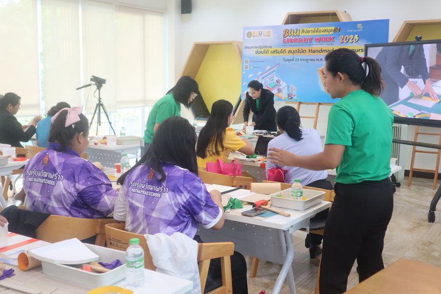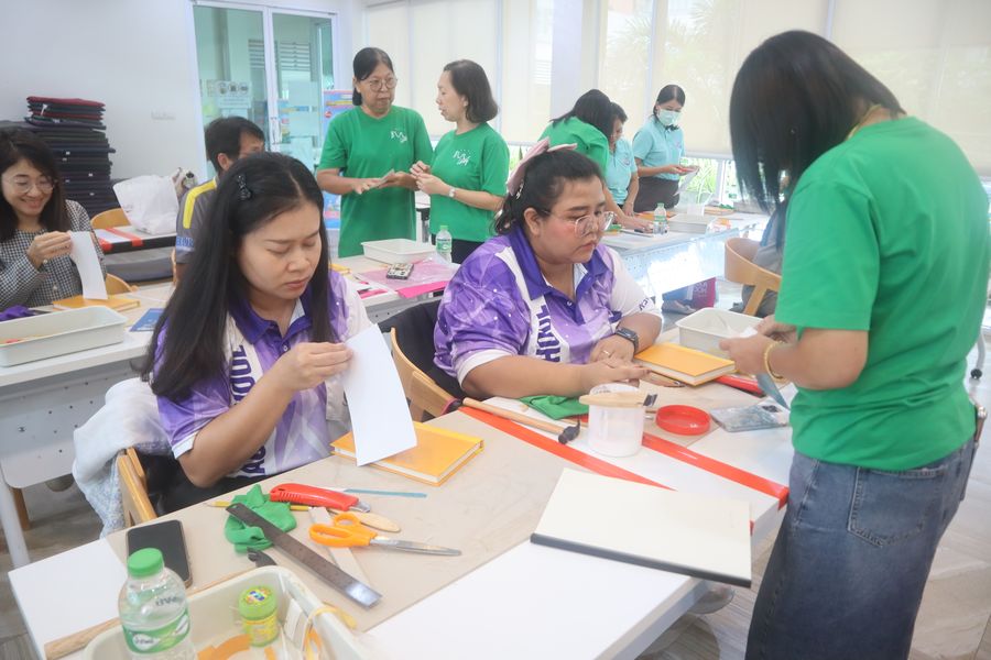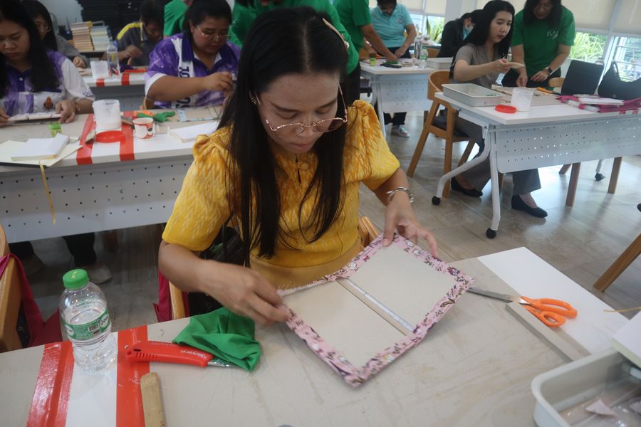 Burapha University Library, led by Mr. Hemmarat Wachirahattapong, the Director of the BUU Library, presided over the opening of the Workshop on “Repairable, Extendable: Handmade Notebook by Yourself.” The workshop was conducted by the library’s expert team from Burapha University. The event took place on July 23, 2025, at Khao Lam Game Zone on the 2nd floor at Lan Rommanee Building of the library.