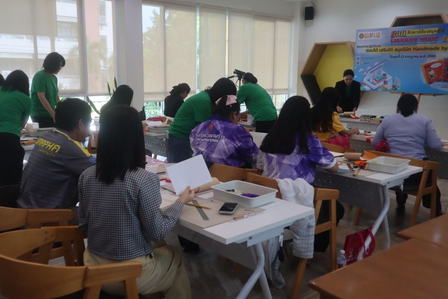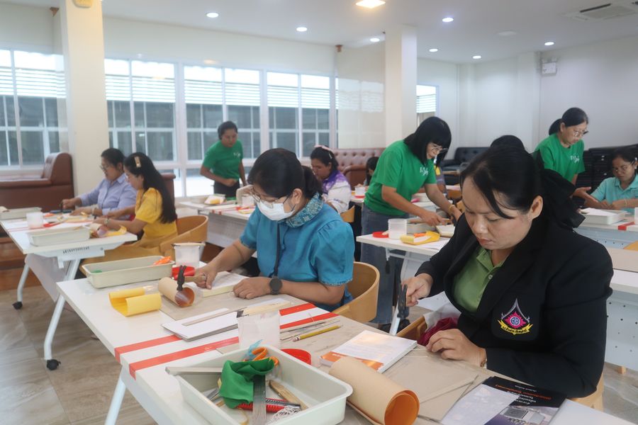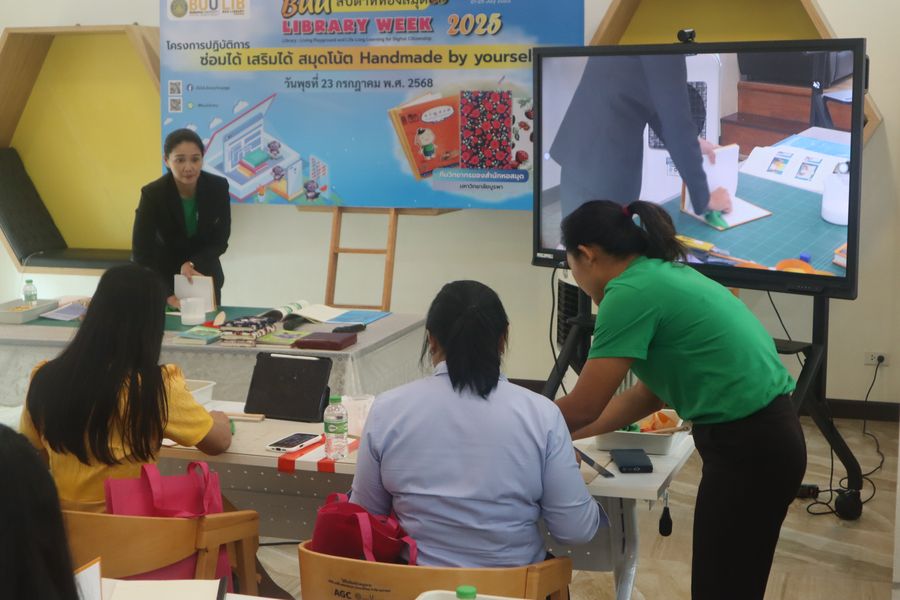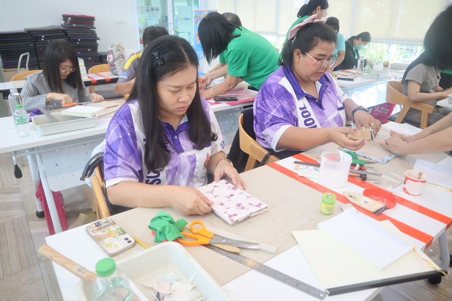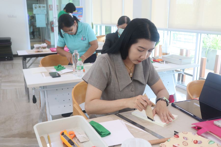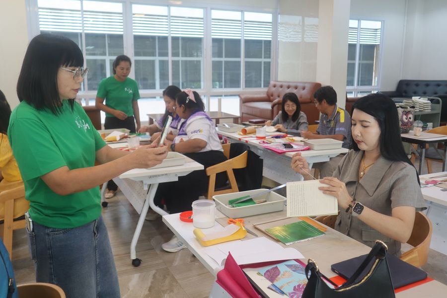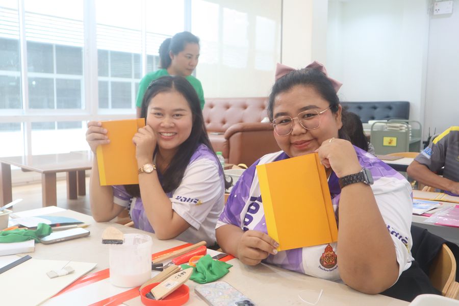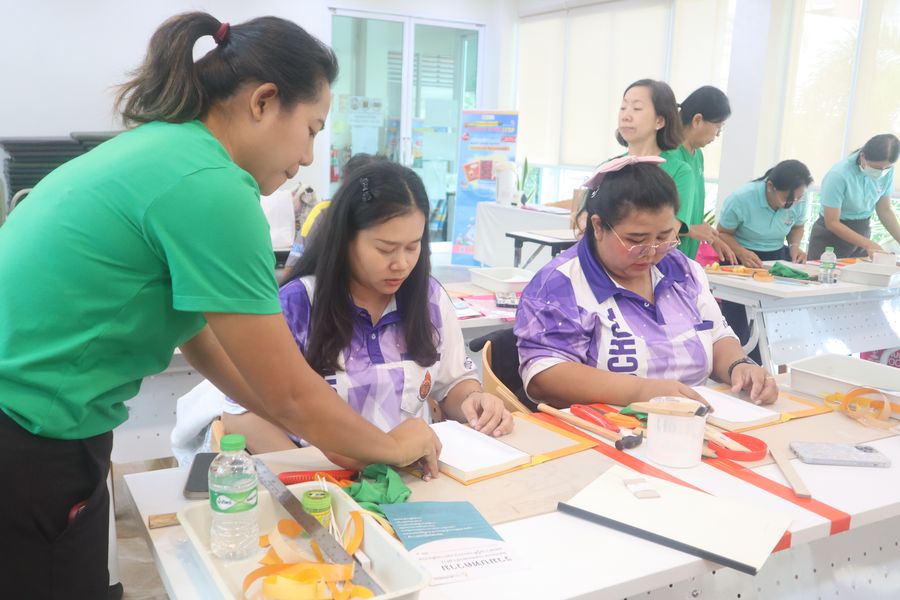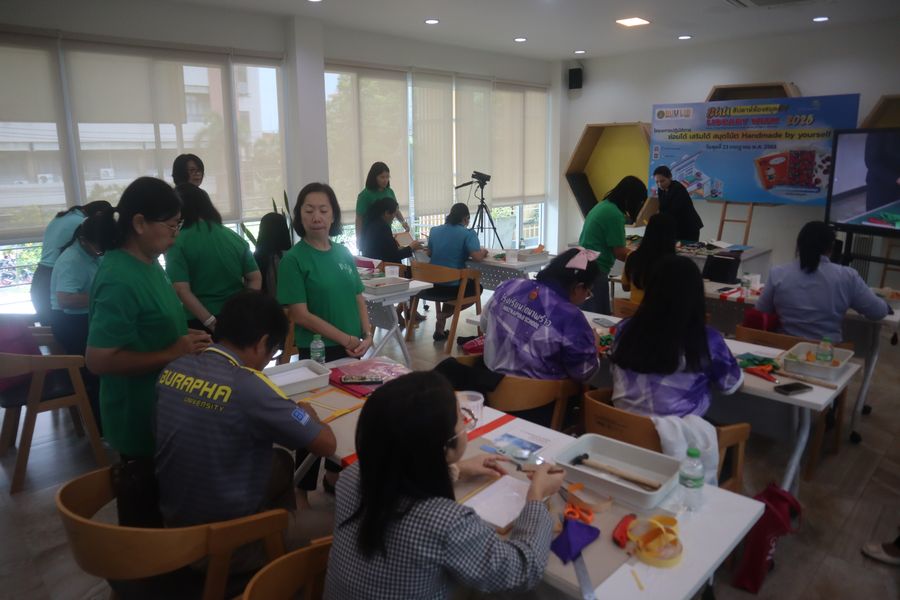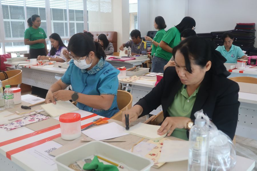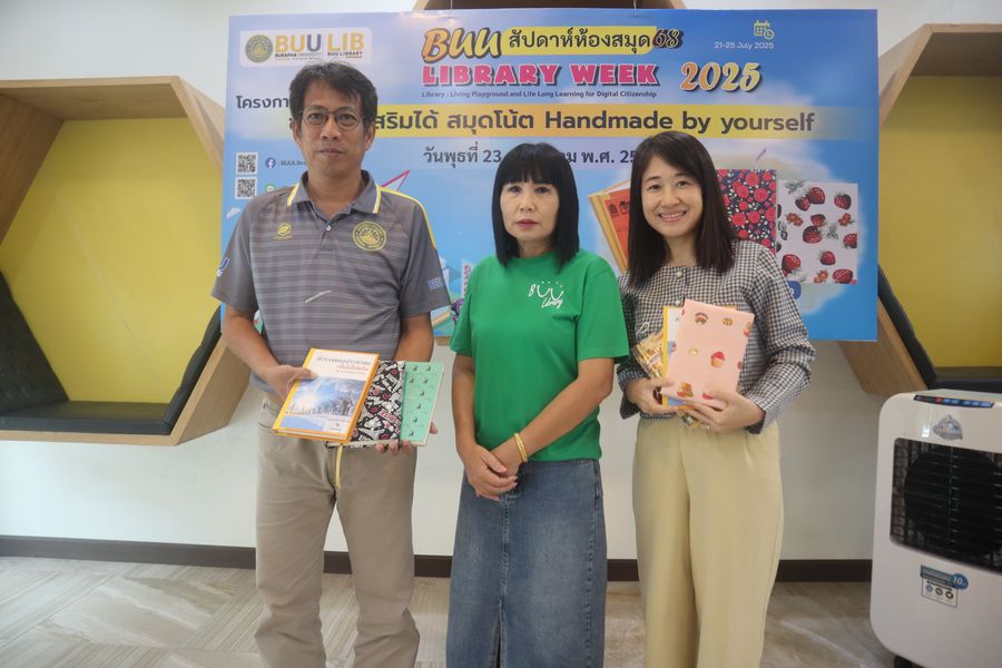Burapha University Library, led by Mr. Hemmarat Wachirahattapong, the Director of the BUU Library, presided over the opening of the Workshop on “Repairable, Extendable: Handmade Notebook by Yourself.” The workshop was conducted by the library’s expert team from Burapha University. The event took place on July 23, 2025, at Khao Lam Game Zone on the 2nd floor at Lan Rommanee Building of the library.