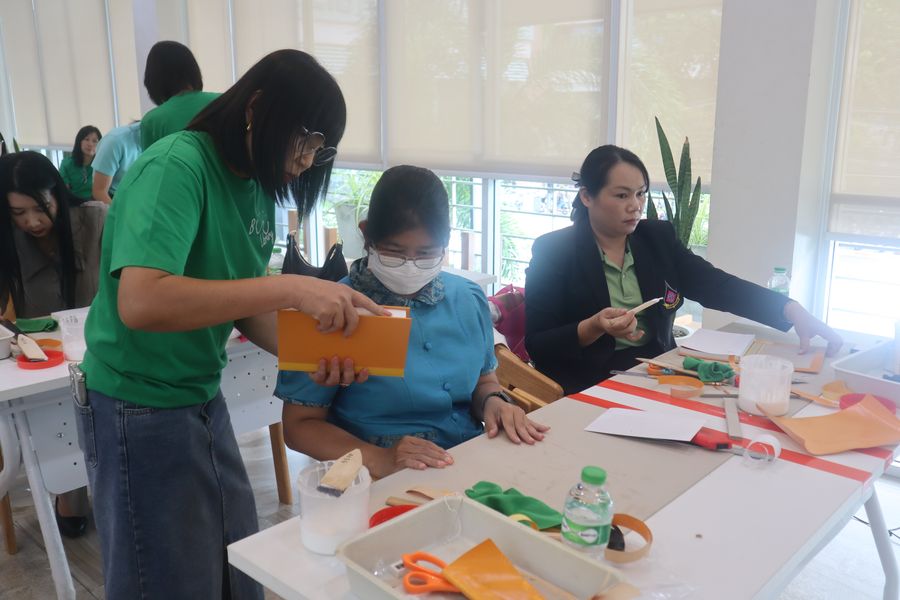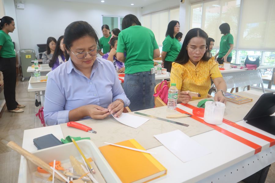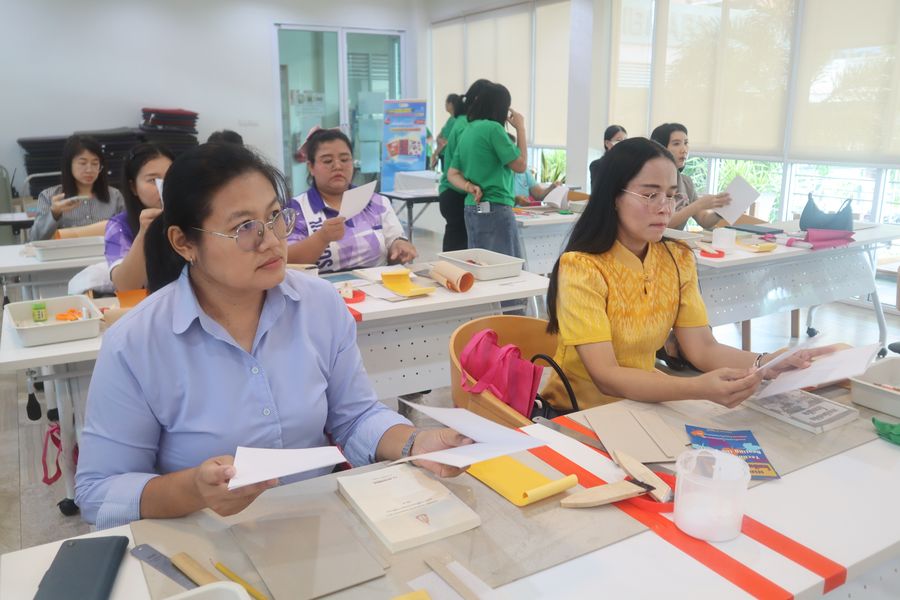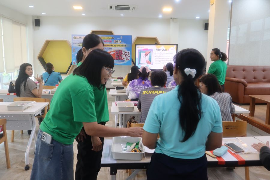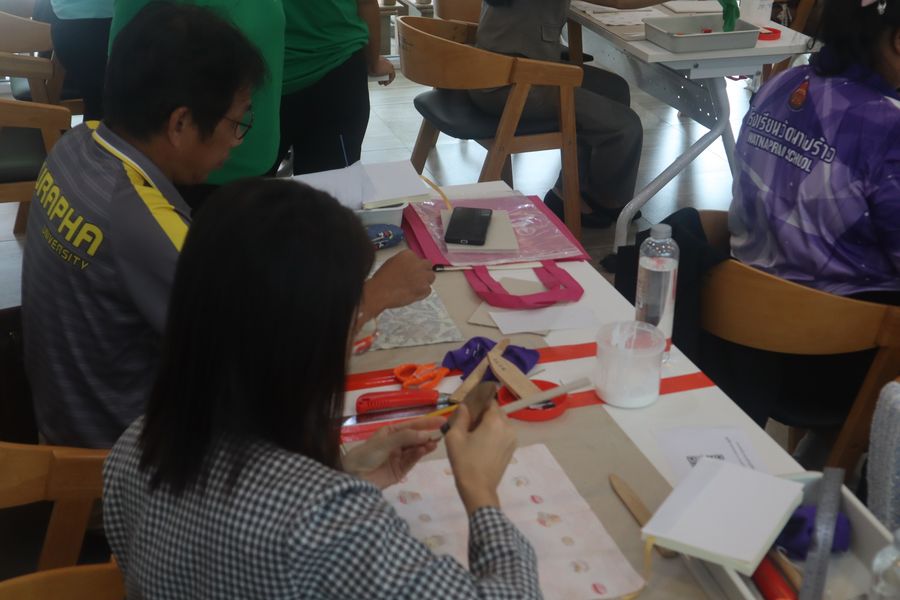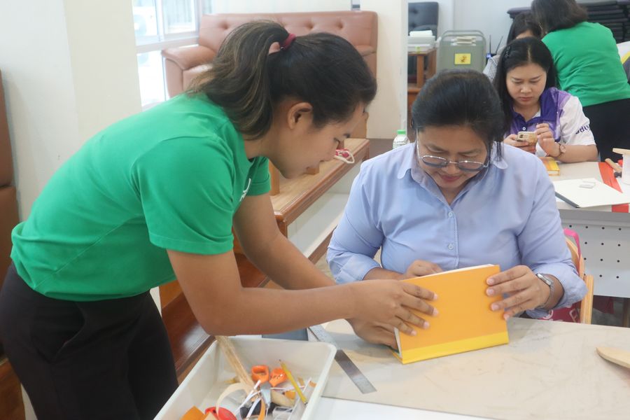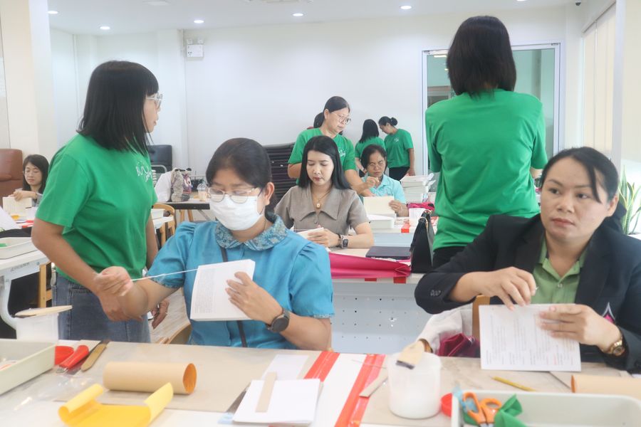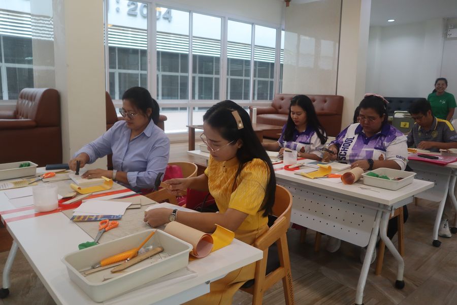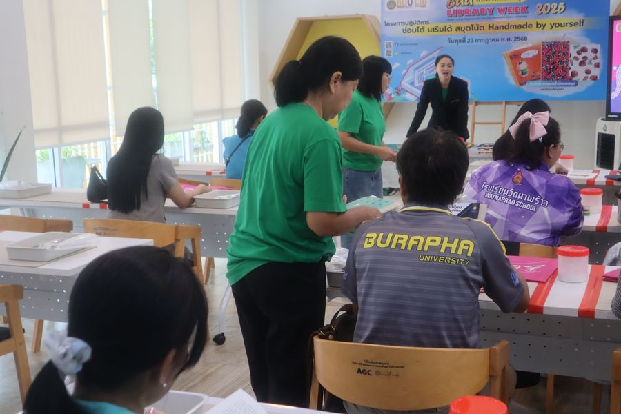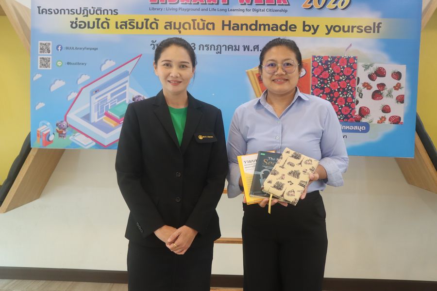 Burapha University Library, led by Mr. Hemmarat Wachirahattapong, the Director of the BUU Library, presided over the opening of the Workshop on “Repairable, Extendable: Handmade Notebook by Yourself.” The workshop was conducted by the library’s expert team from Burapha University. The event took place on July 23, 2025, at Khao Lam Game Zone on the 2nd floor at Lan Rommanee Building of the library.