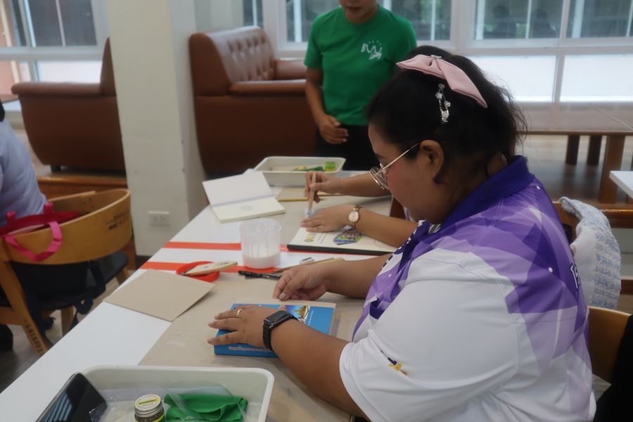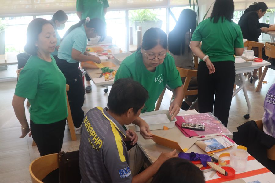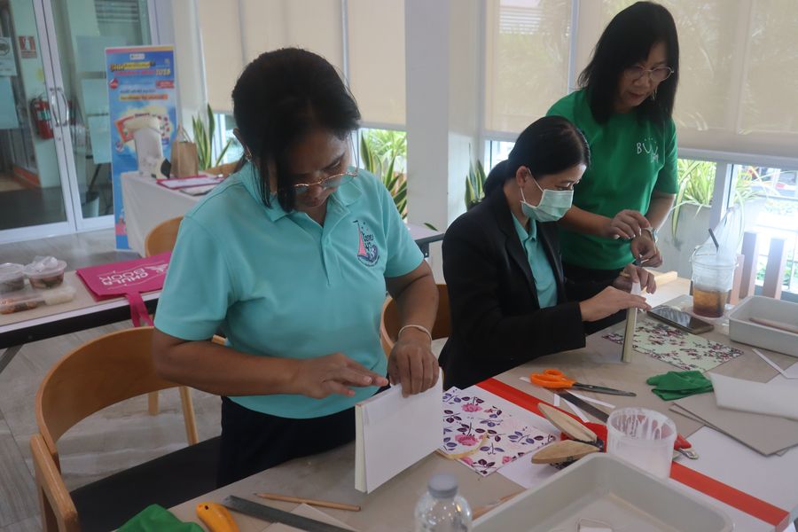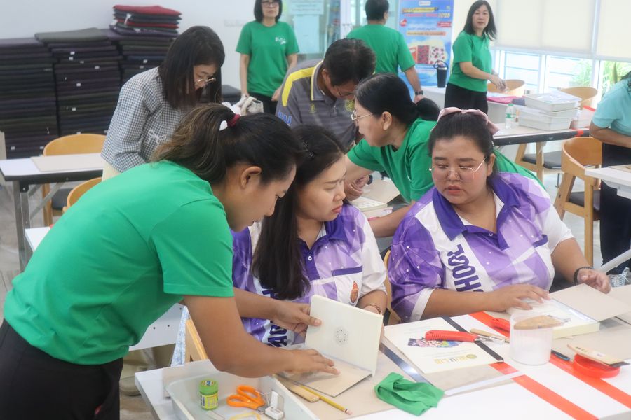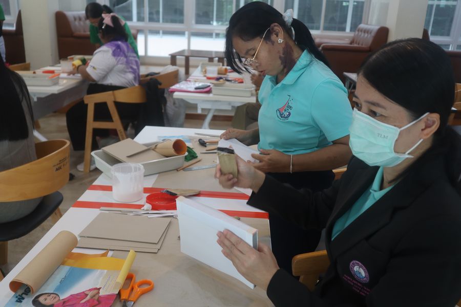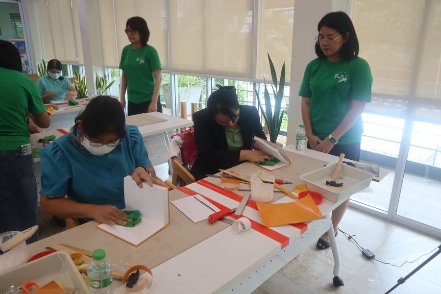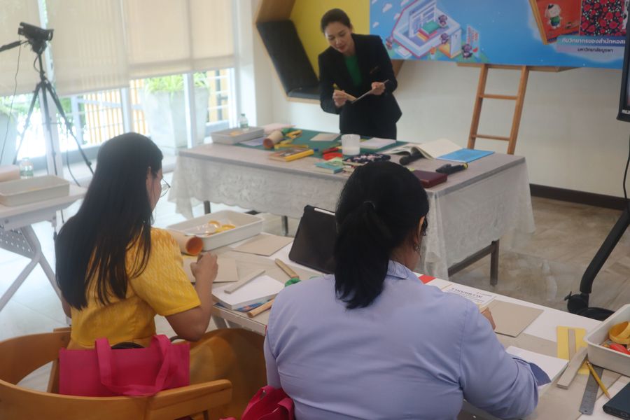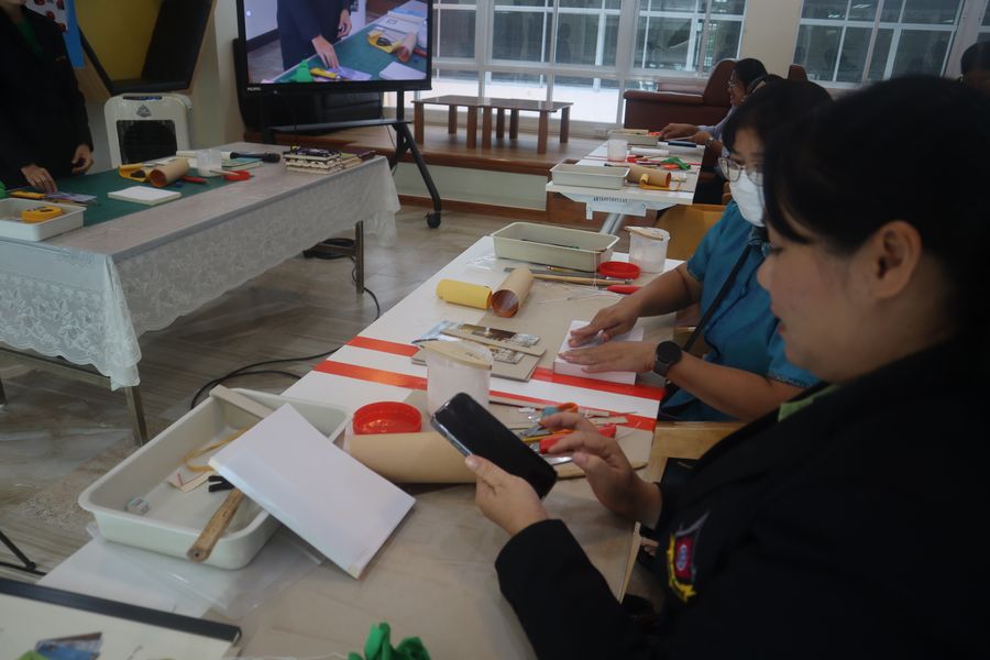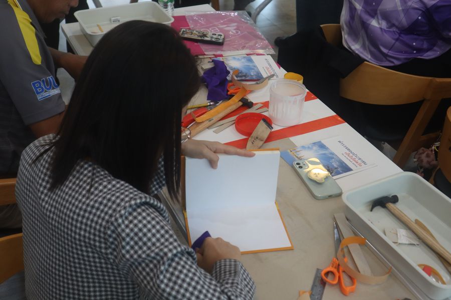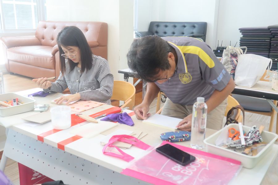 Burapha University Library, led by Mr. Hemmarat Wachirahattapong, the Director of the BUU Library, presided over the opening of the Workshop on “Repairable, Extendable: Handmade Notebook by Yourself.” The workshop was conducted by the library’s expert team from Burapha University. The event took place on July 23, 2025, at Khao Lam Game Zone on the 2nd floor at Lan Rommanee Building of the library.